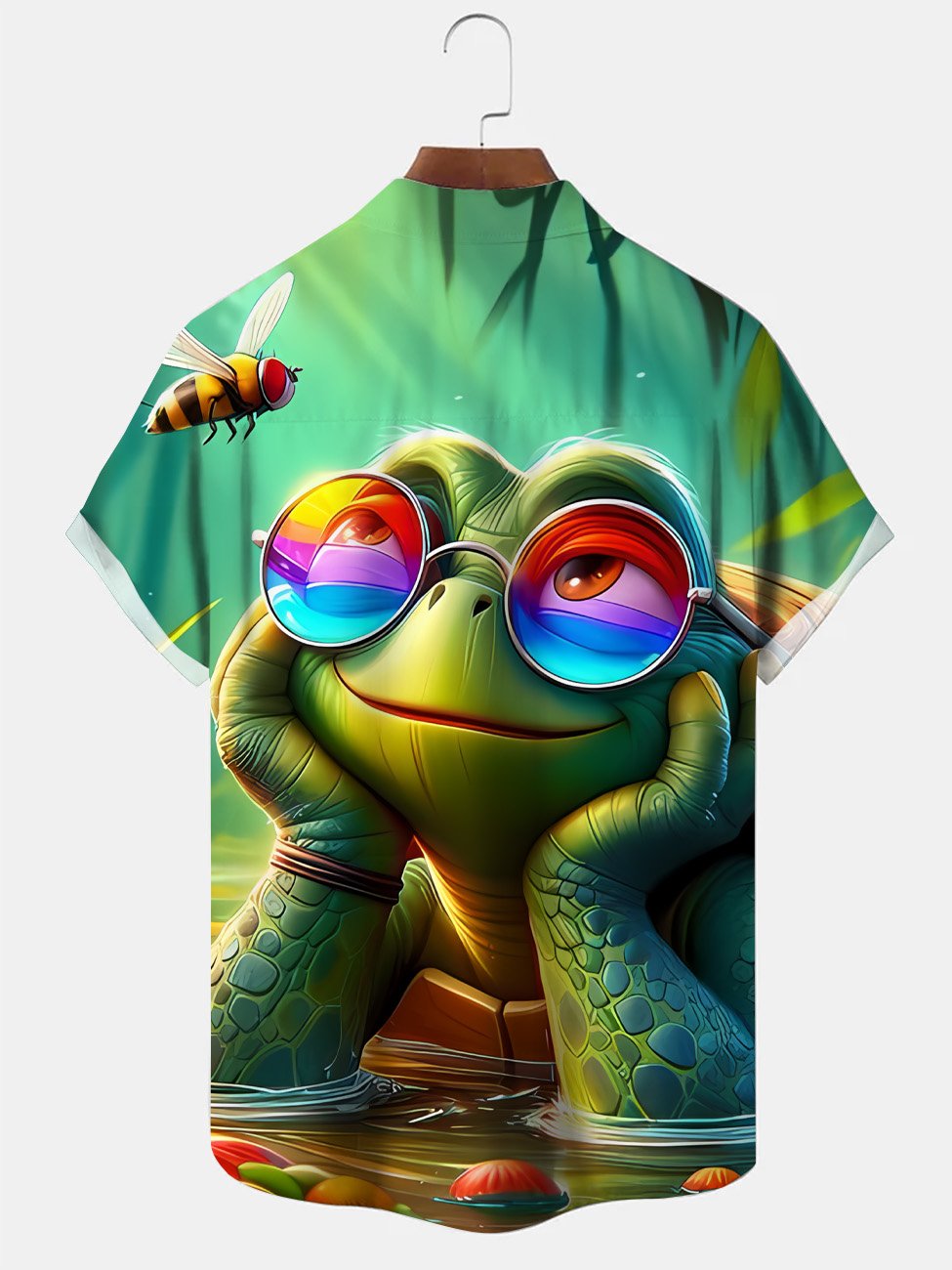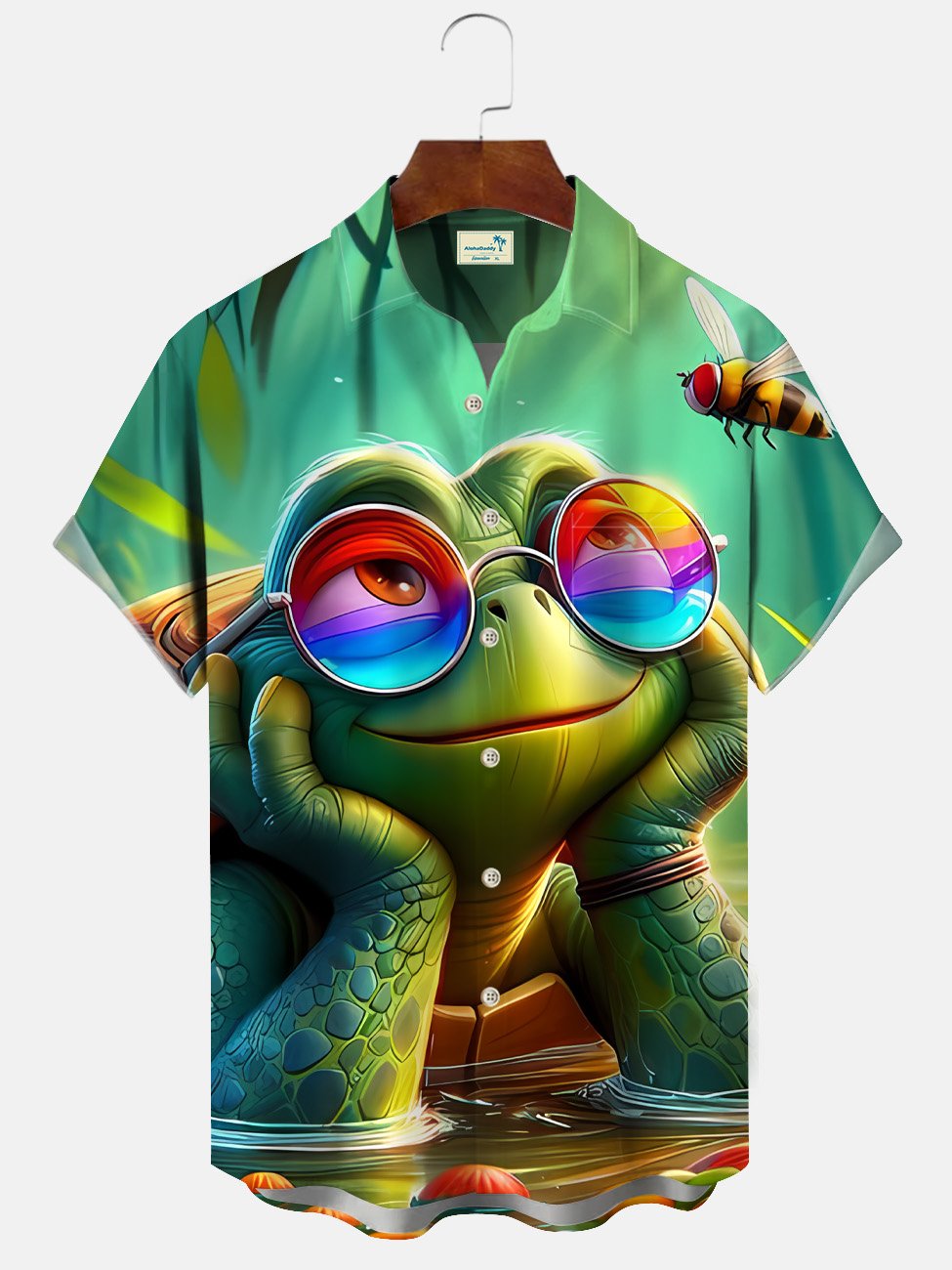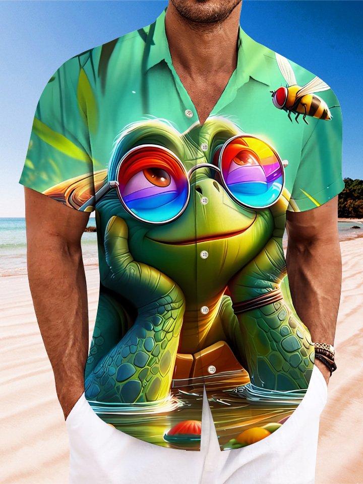Alohadaddy Summer Ocean Animal Turtle Cute Men Button Pocket Casual Vacation Short Sleeve Shirt
