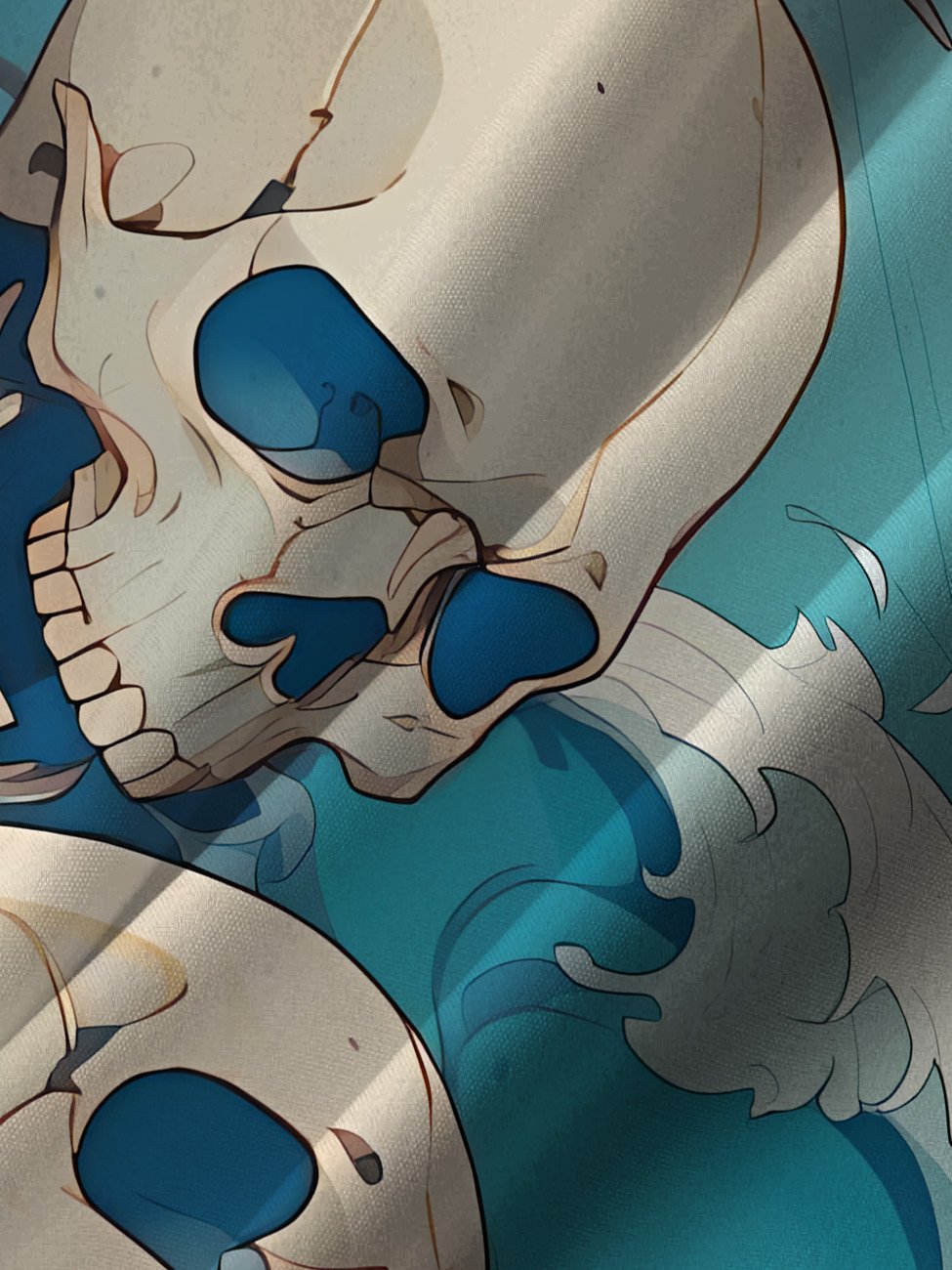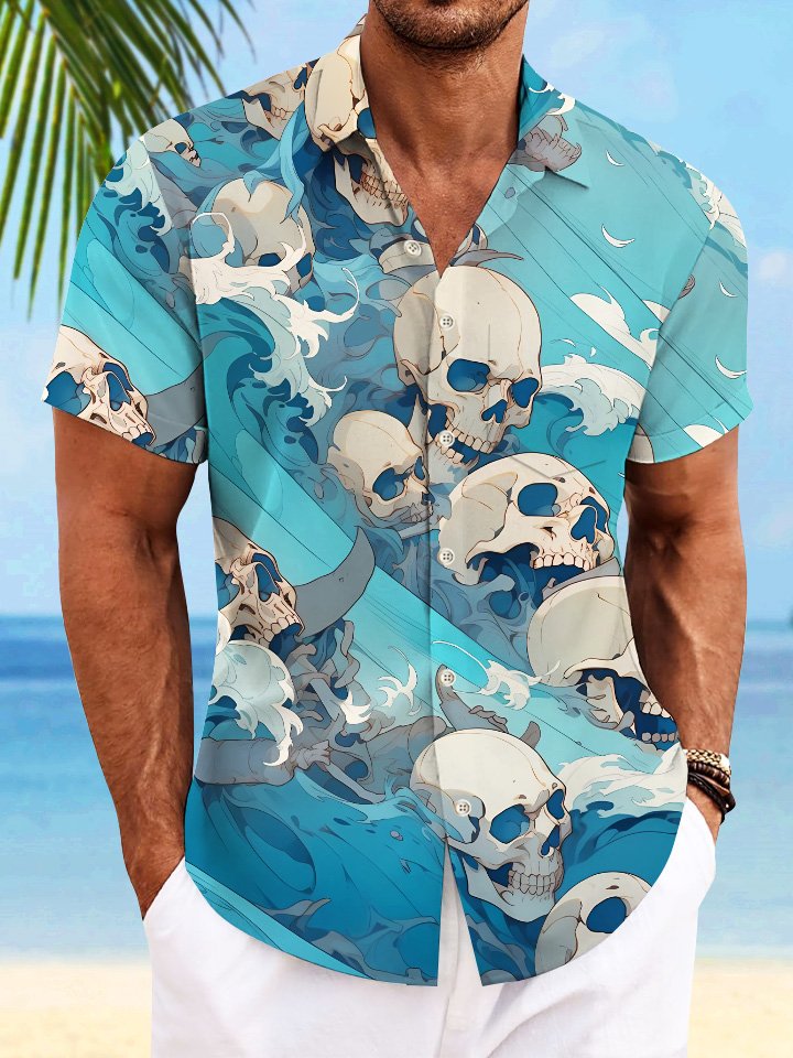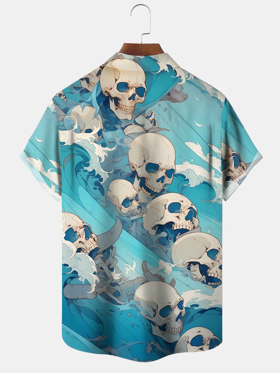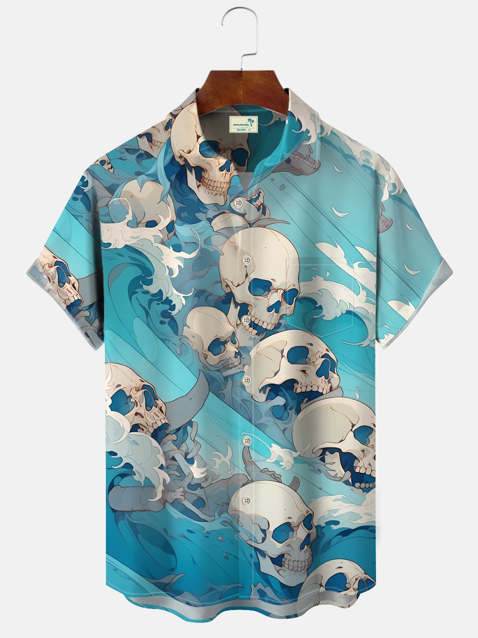 Alohadaddy Wave Skull Button Pocket Casual Short Sleeve Shirt