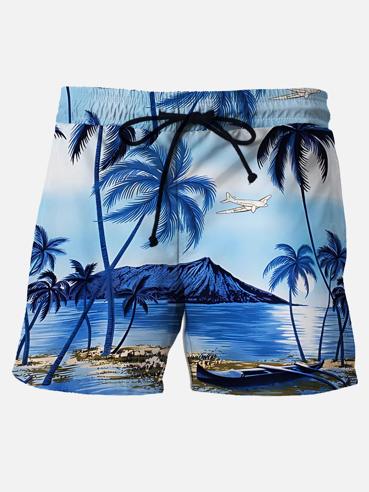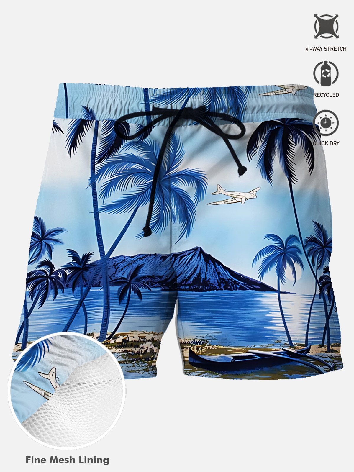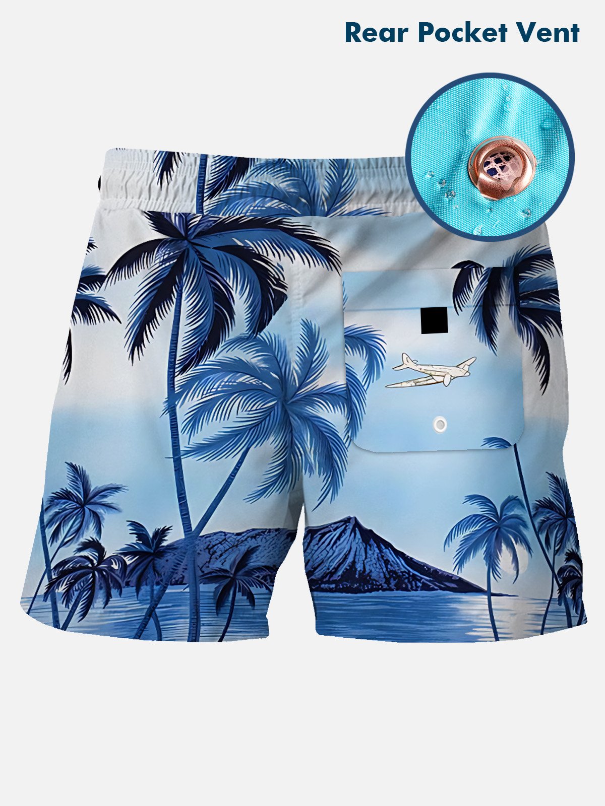 Alohadaddy Beach Vacation Coconut Tree Men's Hawaiian Beach Shorts Stretch Quick Dry Swimming Trunks Big Tall