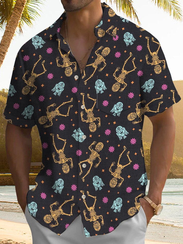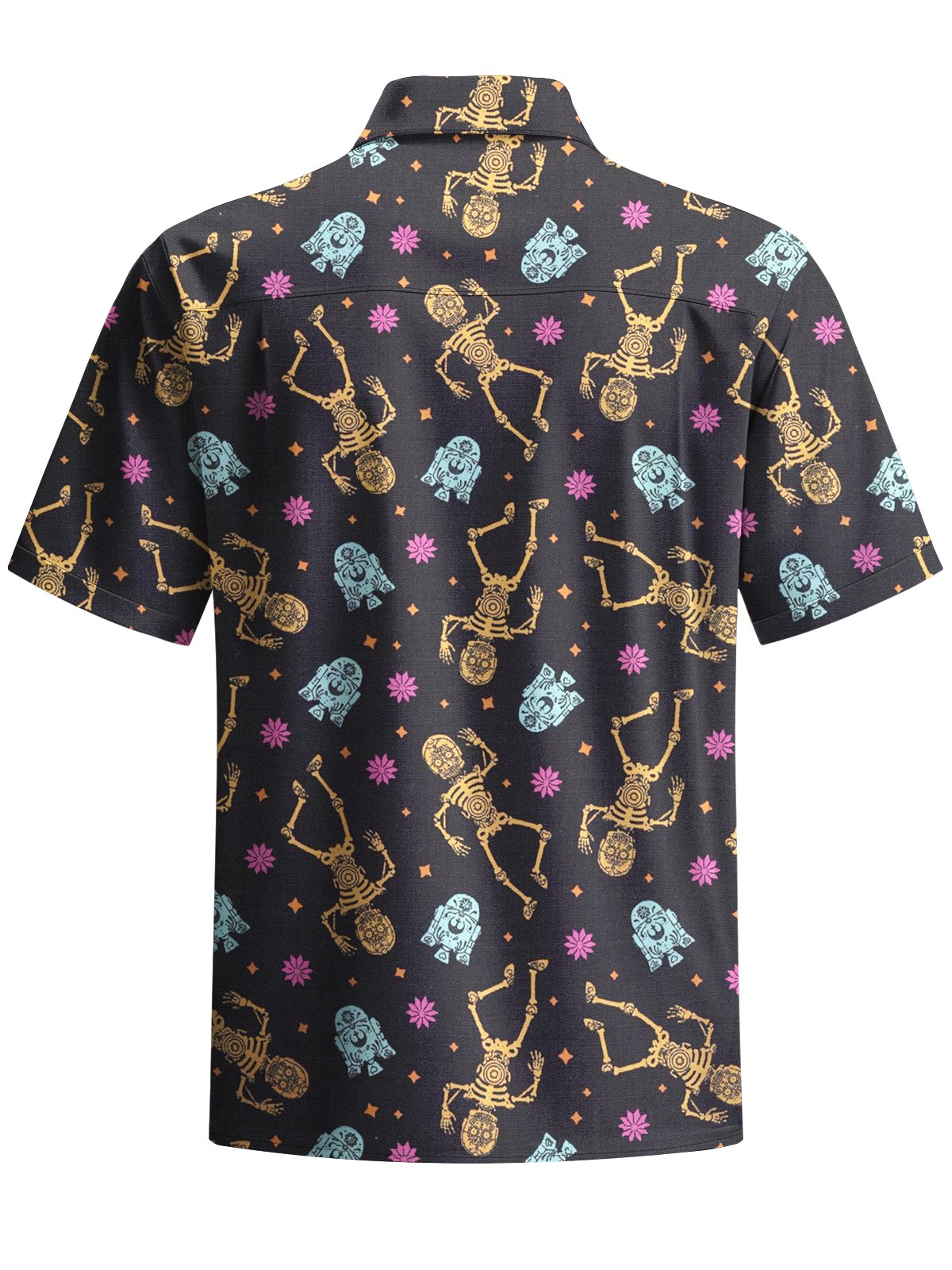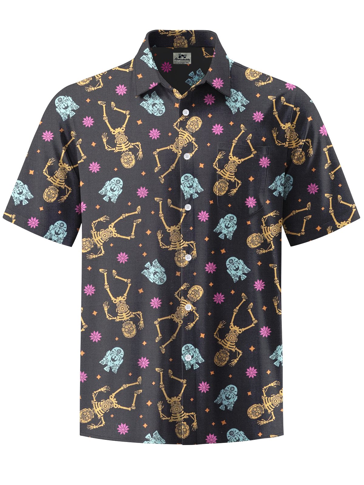 Alohadaddy® Halloween Skull Art Print Chest Pocket Stretch Men's Short Sleeve Shirt Big & Tall