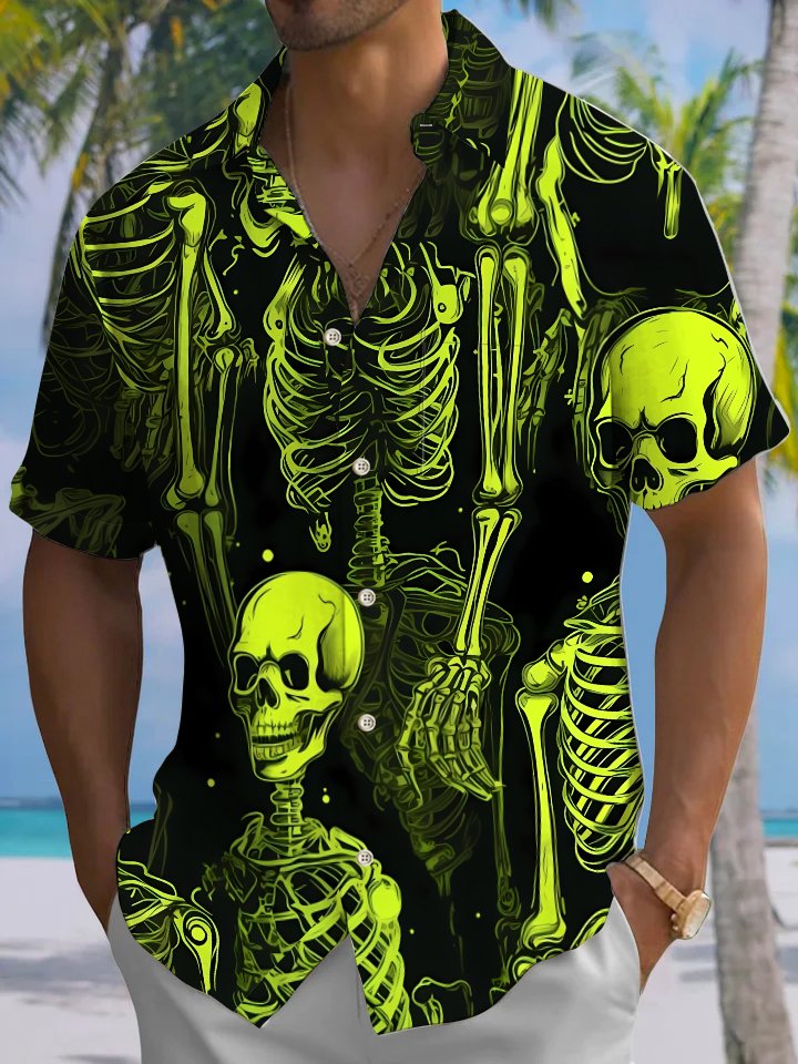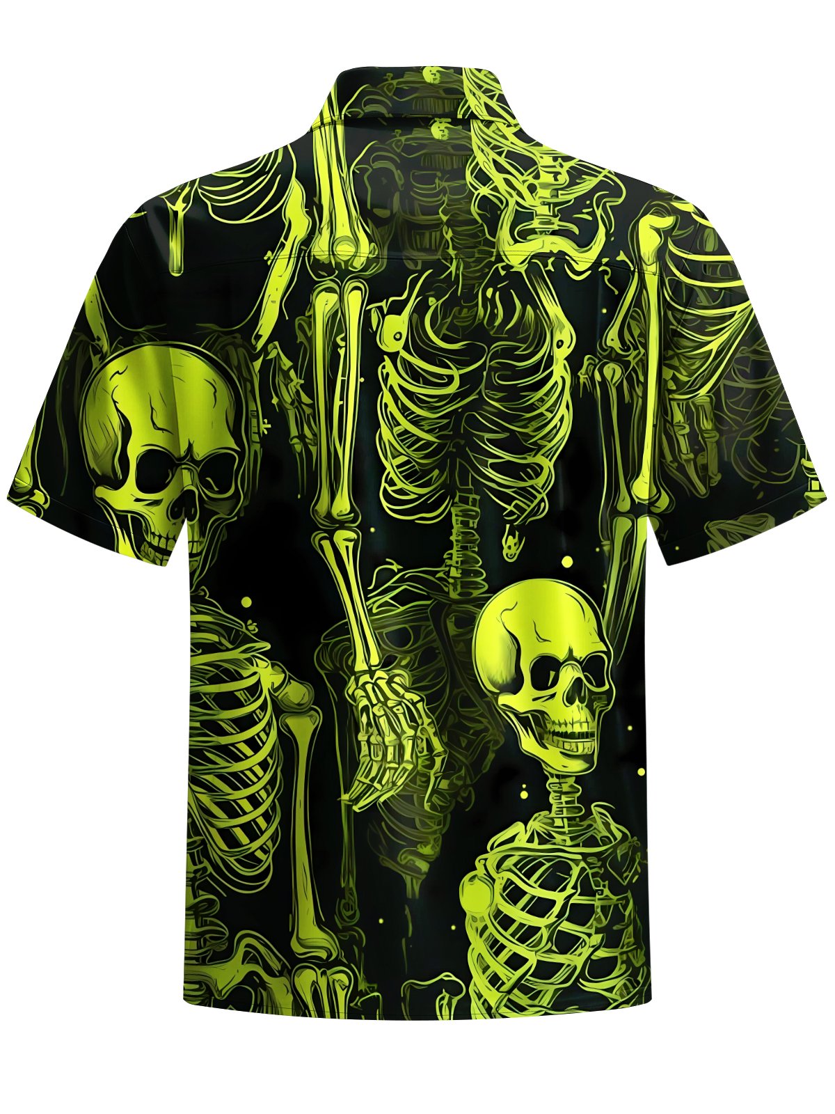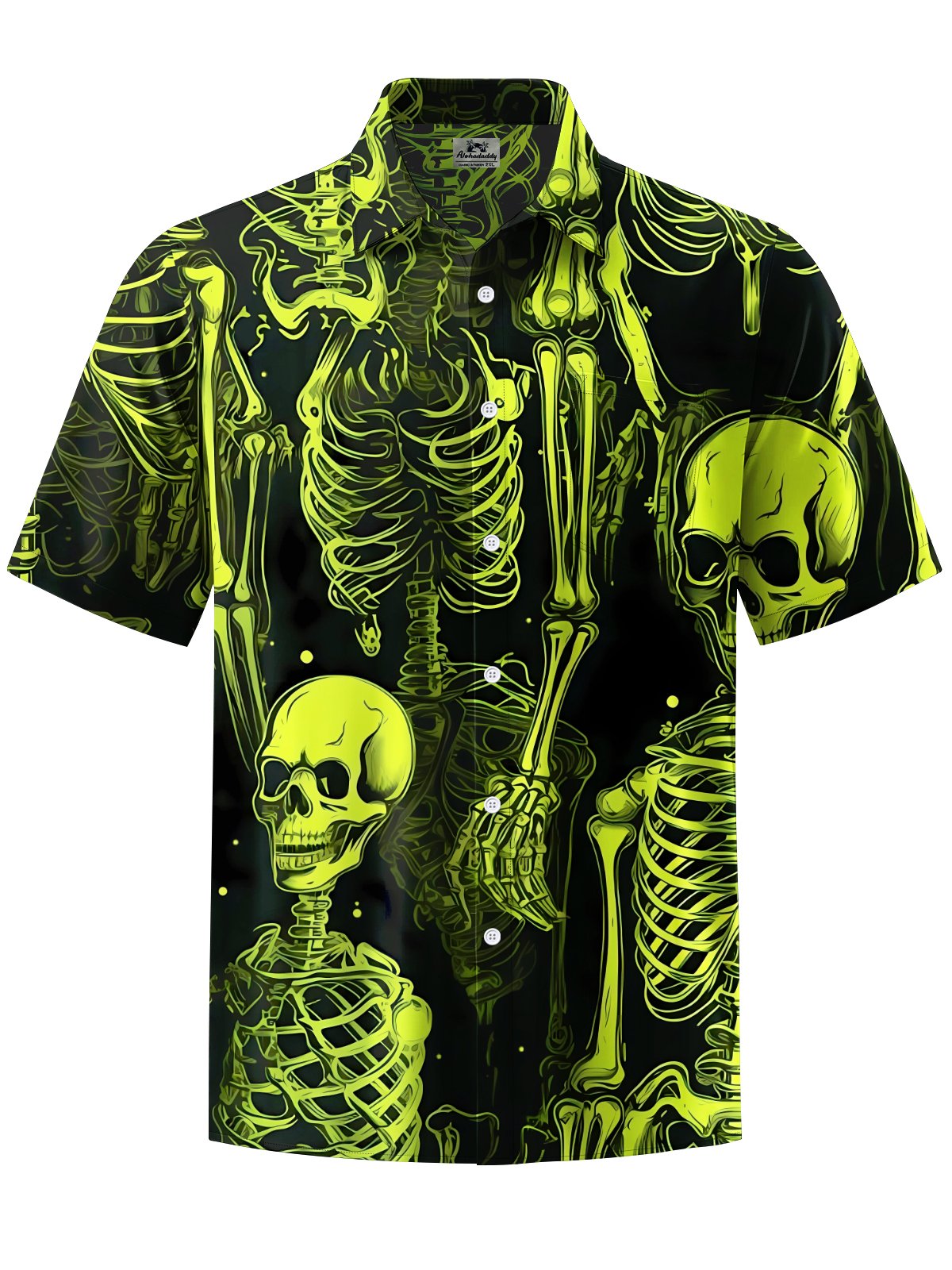 Alohadaddy® Retro Party Skull Art Print Chest Pocket Men's Stretch Short Sleeve Shirt Big & Tall