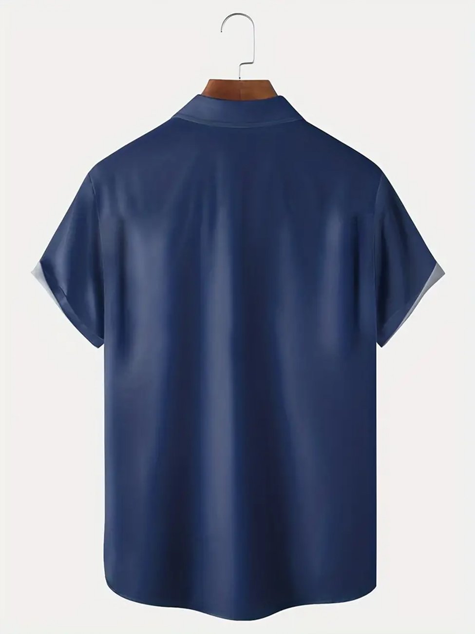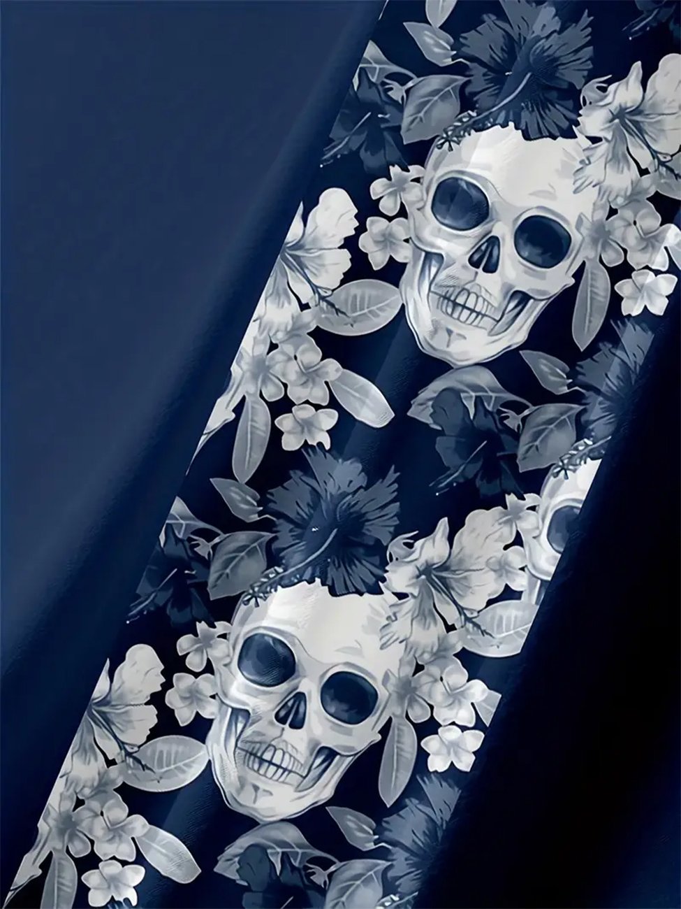 Alohadaddy Deep Blue Skull Pattren Casual Cotton-Blend Bowling Plus Size Shirts