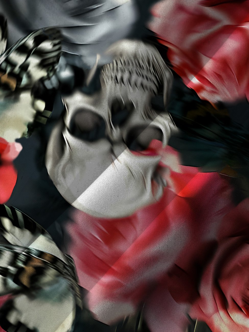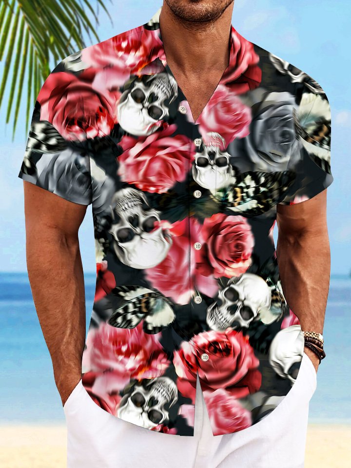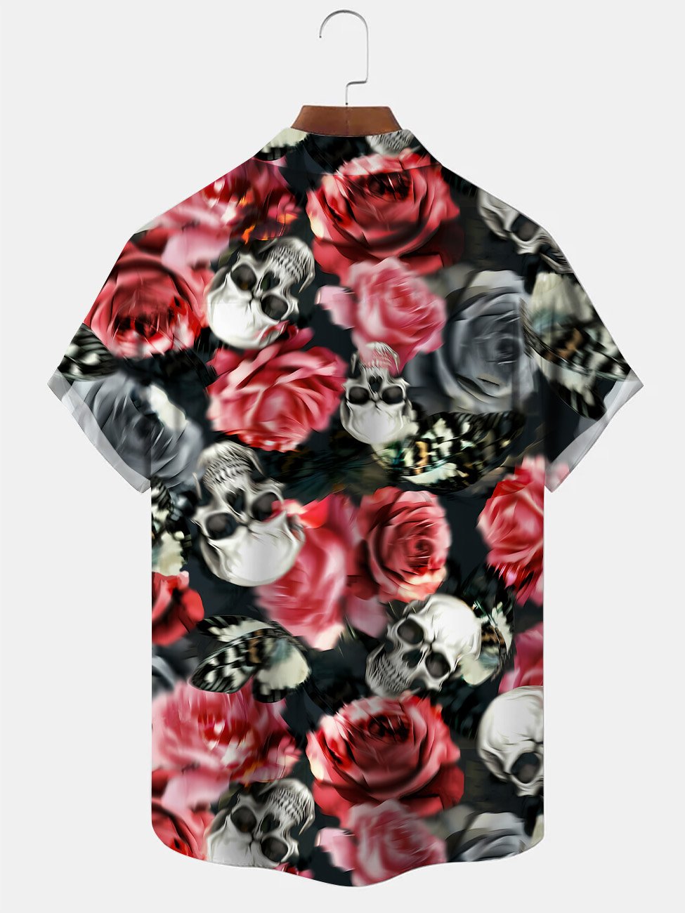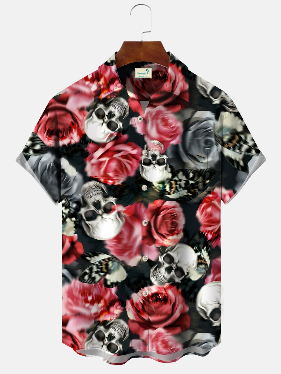 Alohadaddy Retro Plant Flower Skull Button Pocket Casual Short Sleeve Shirt