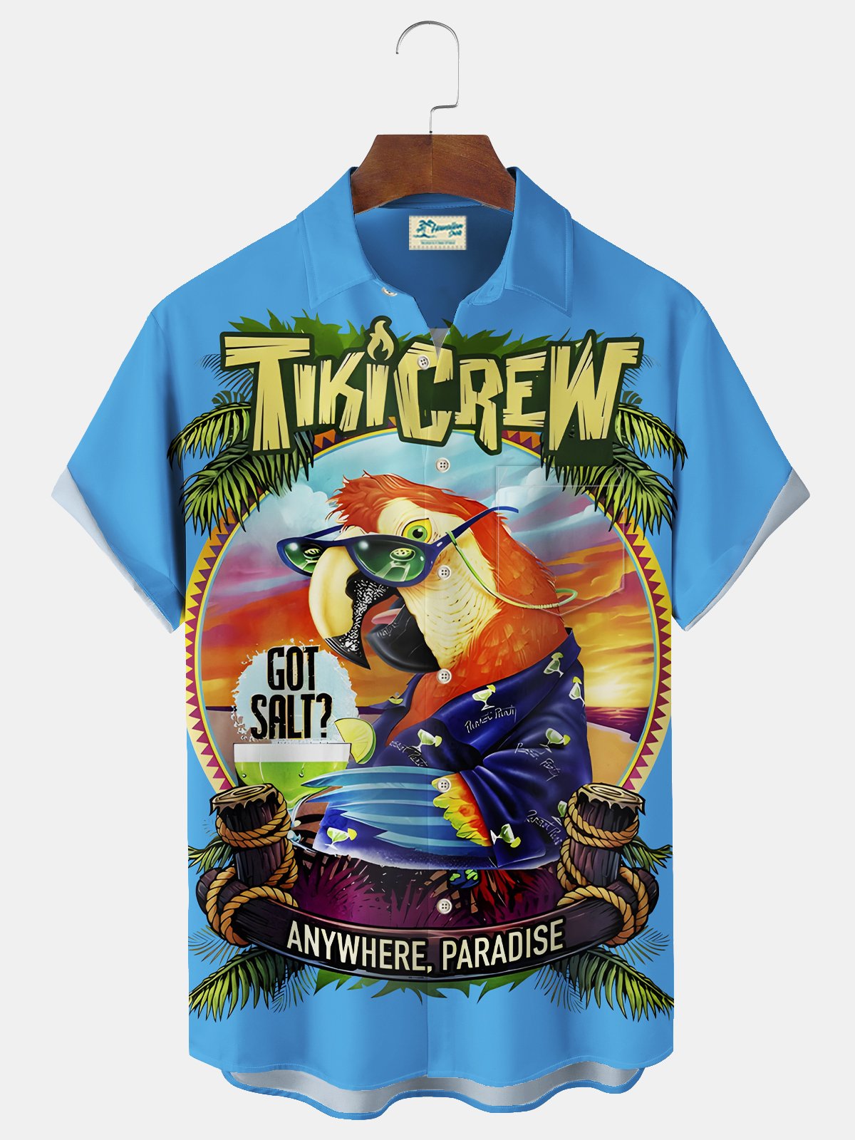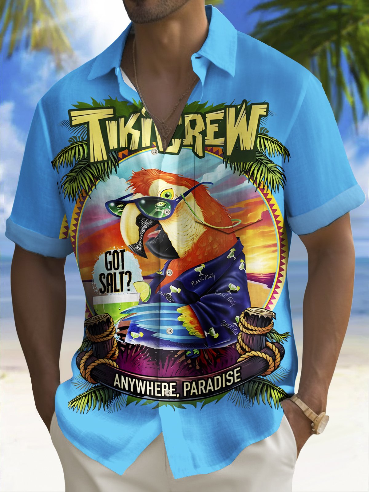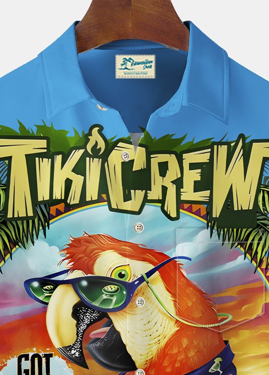 Alohadaddy Beach Vacation Men's Hawaiian Shirt Parrot Print Pocket Camping Shirt Big Tall