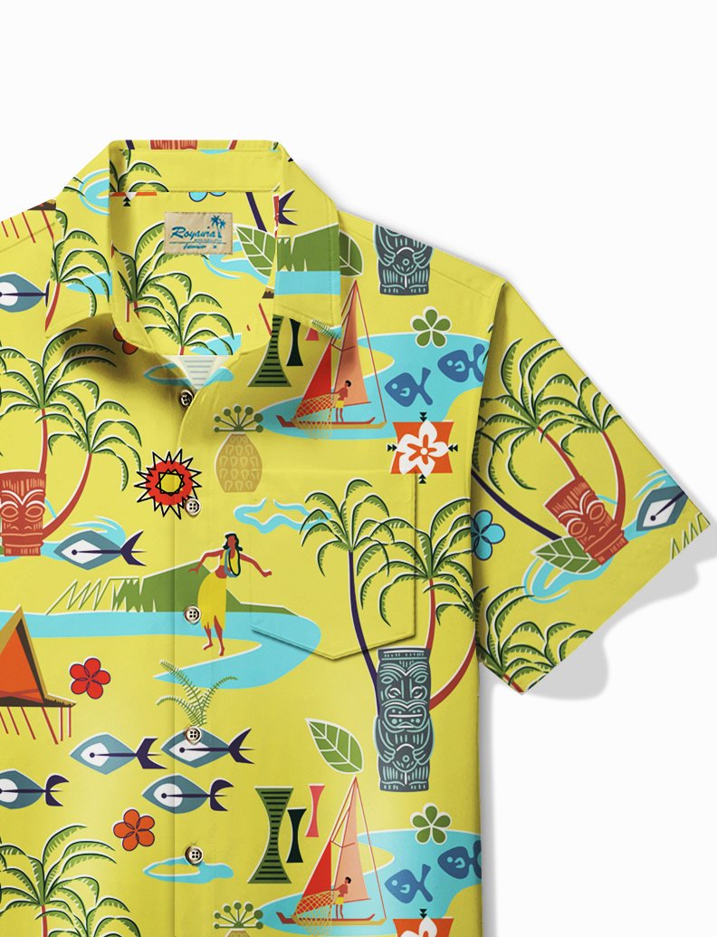 Alohadaddy Hawaiian Shirt Coconut Tree Geometric Tiki & Tops
