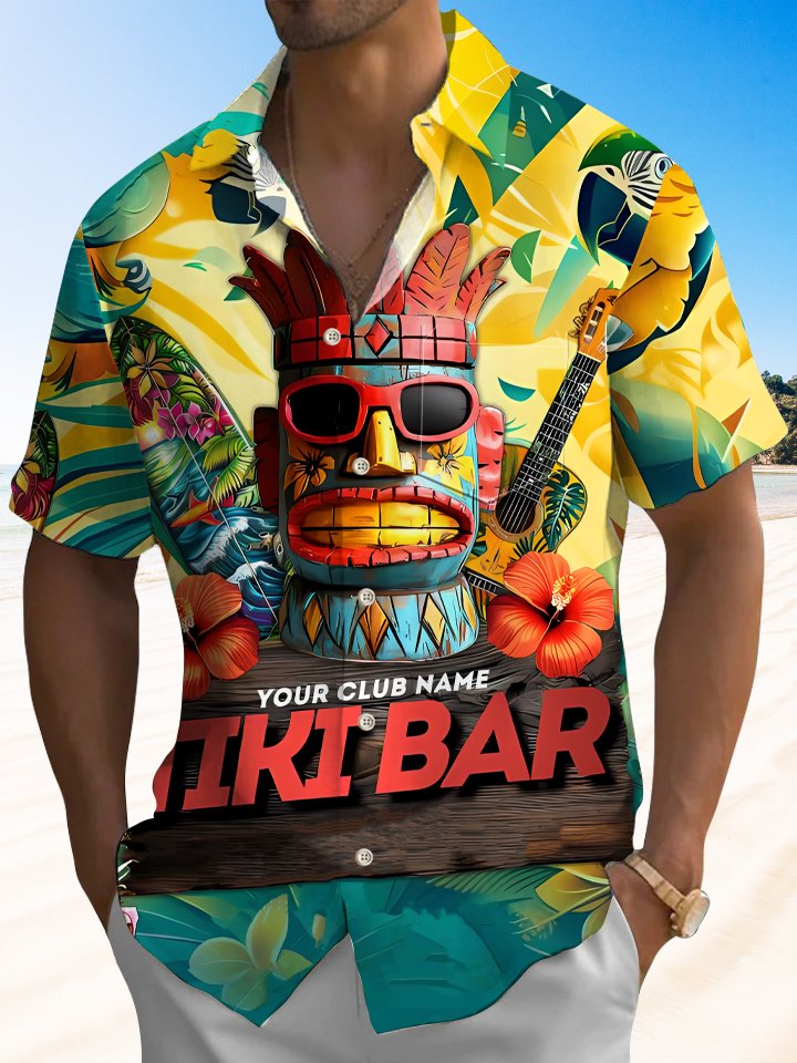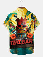Alohadaddy Tiki Coconut Tree Button Pocket Casual Short Sleeve Shirt