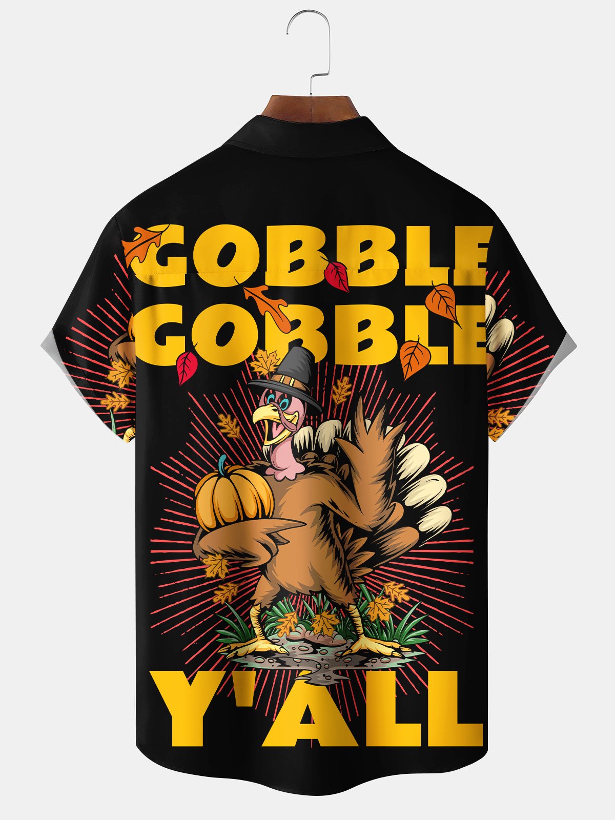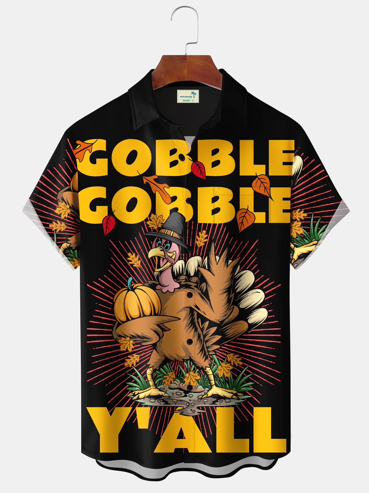 Alohadaddy Thanksgiving Turkey Breast Pocket Short Sleeve Holiday Shirt