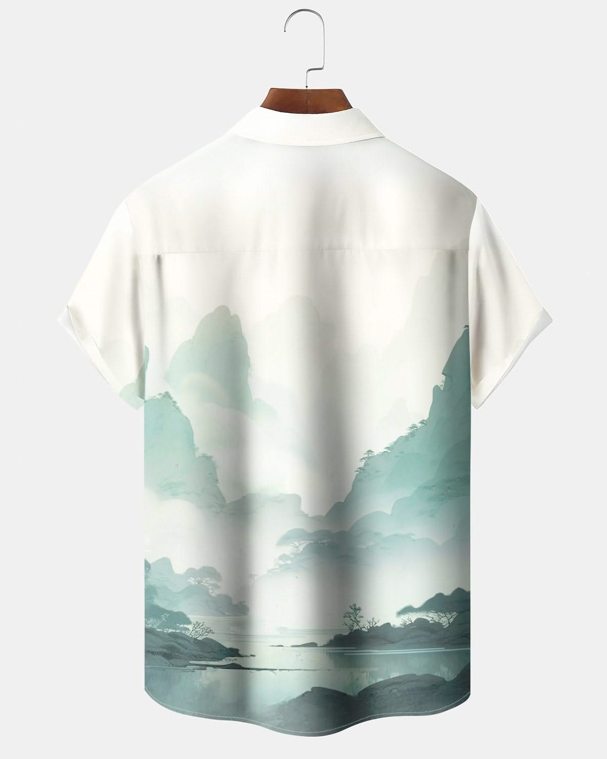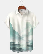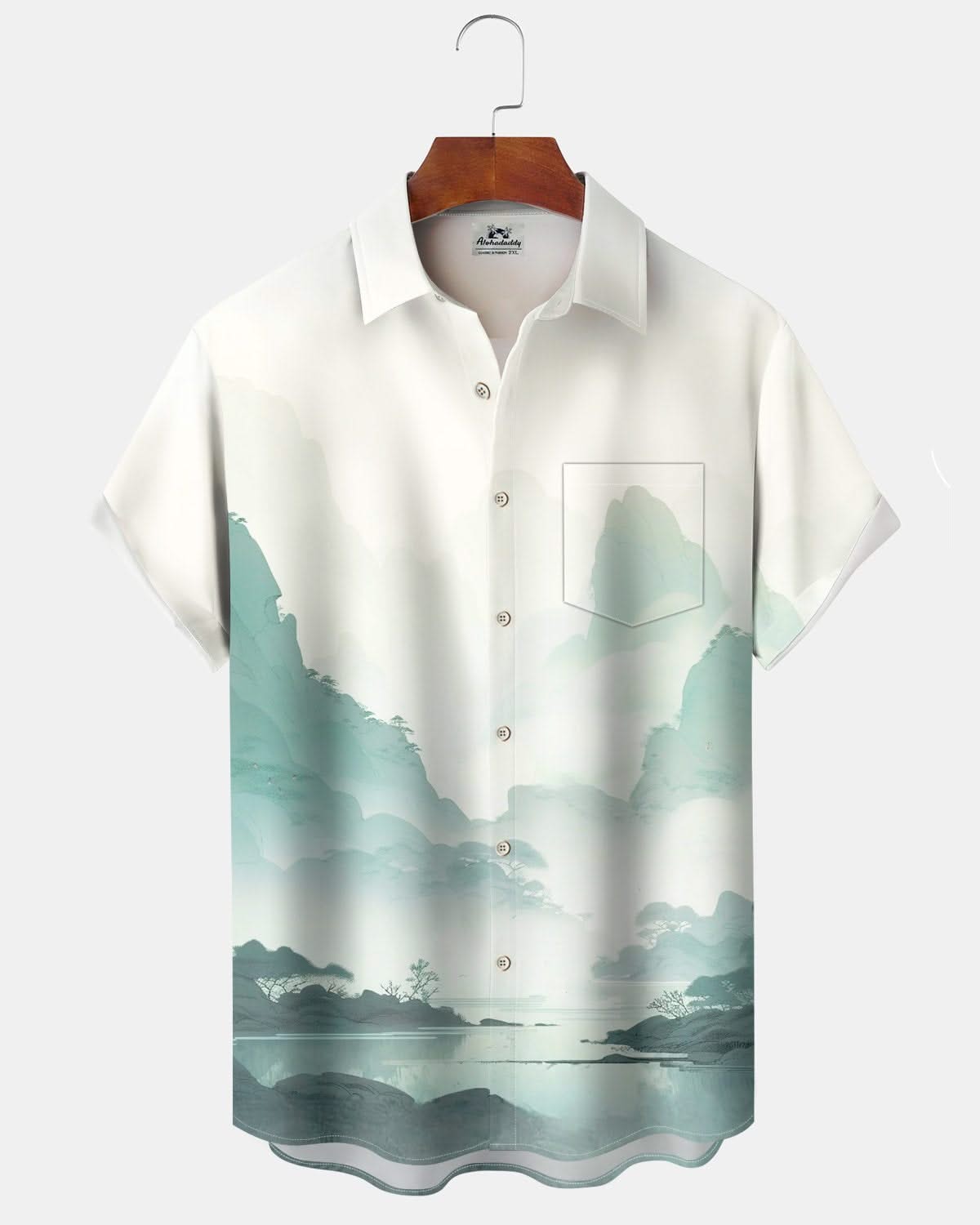 Alohadaddy® Casual Ink Painting Art Print Pocket Elastic Button Men's Short Sleeve Shirt Big & Tall