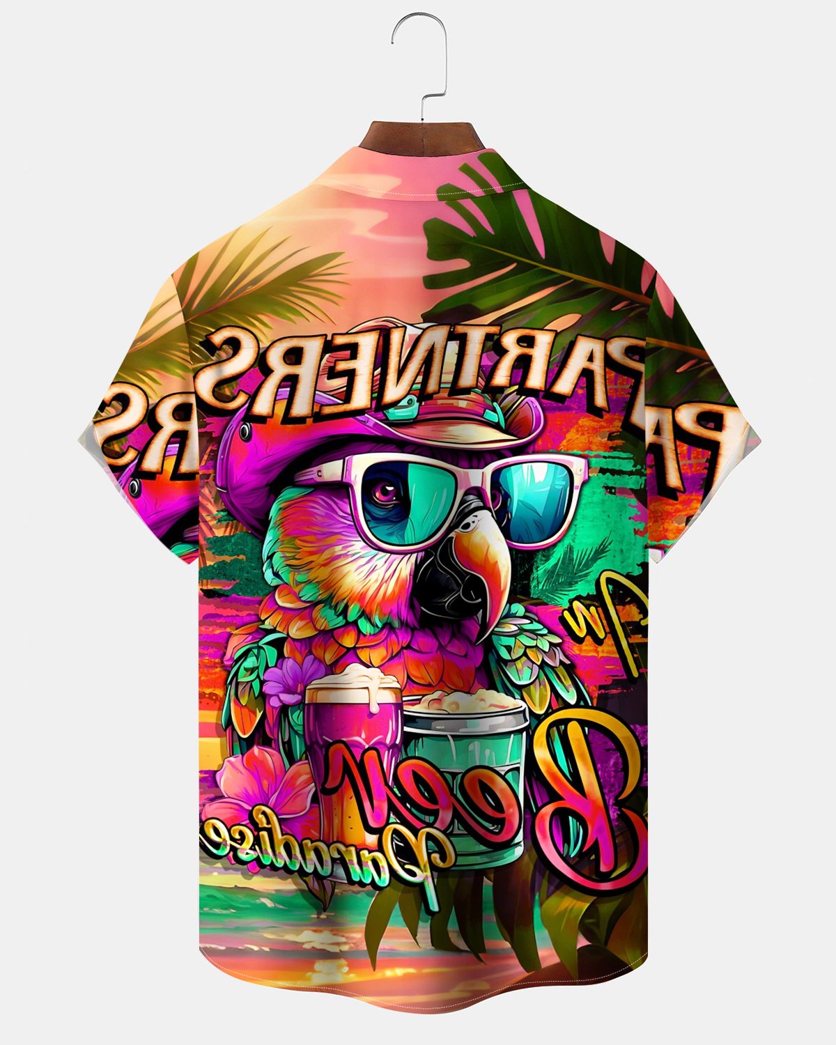 Alohadaddy® Christmas Tree Print Elastic Button Men's Short Sleeve Polo Shirt Big & Tall