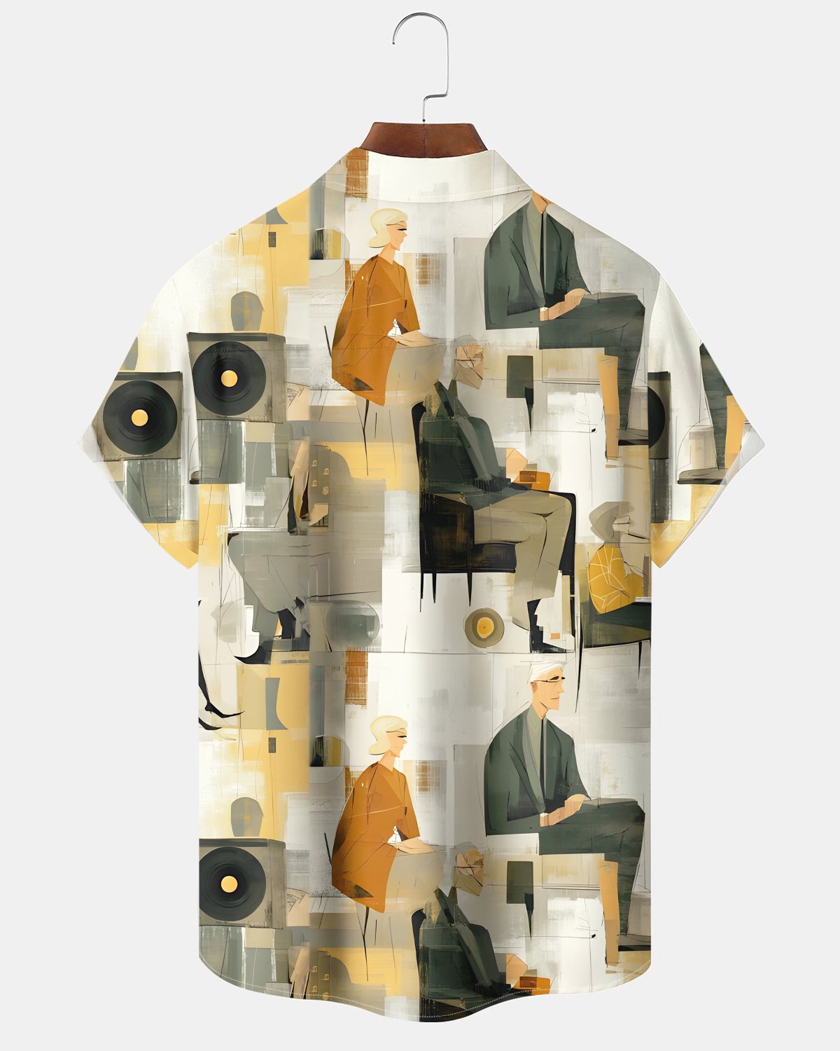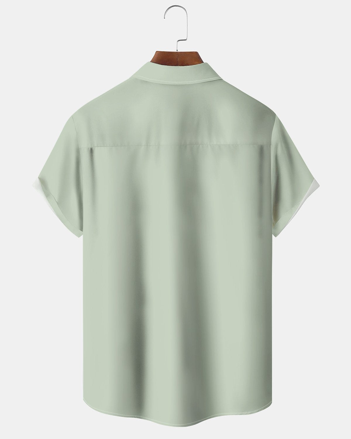 Alohadaddy® Palm Leaf Art Print Pockets Elastic Hawaiian Men's Short Sleeve Shirt Big & Tall