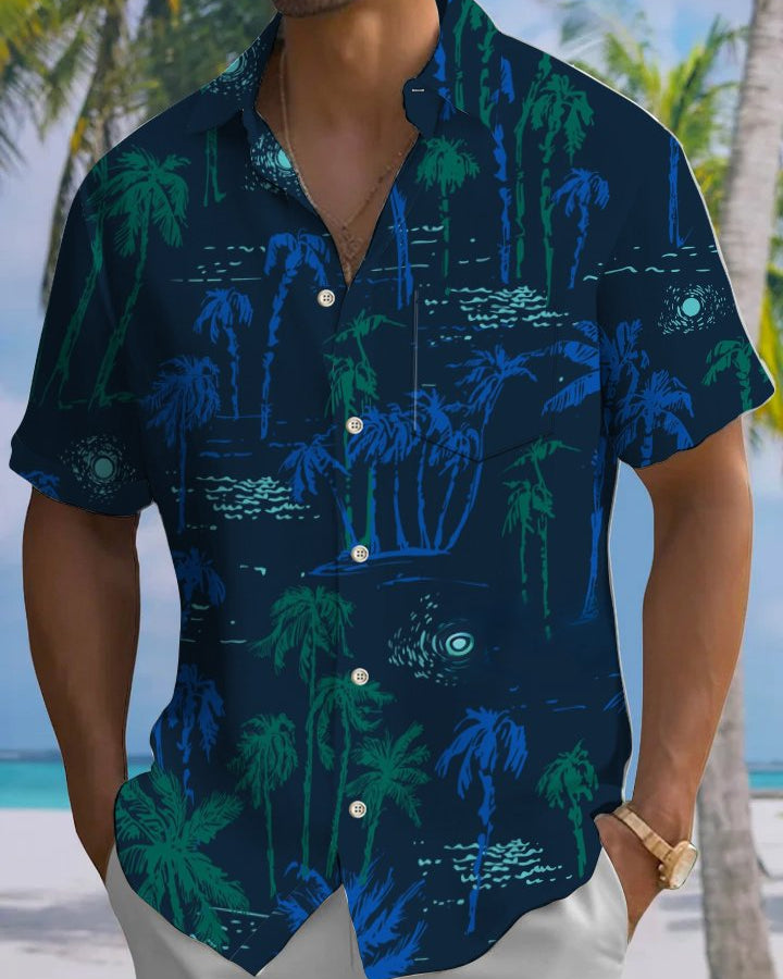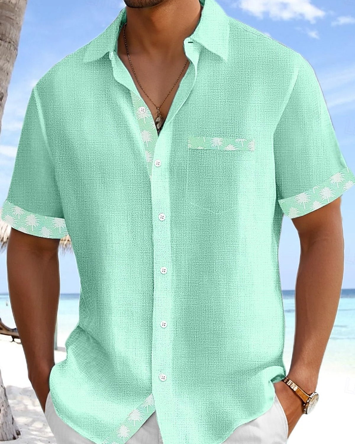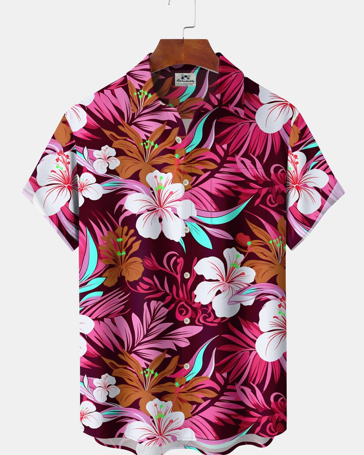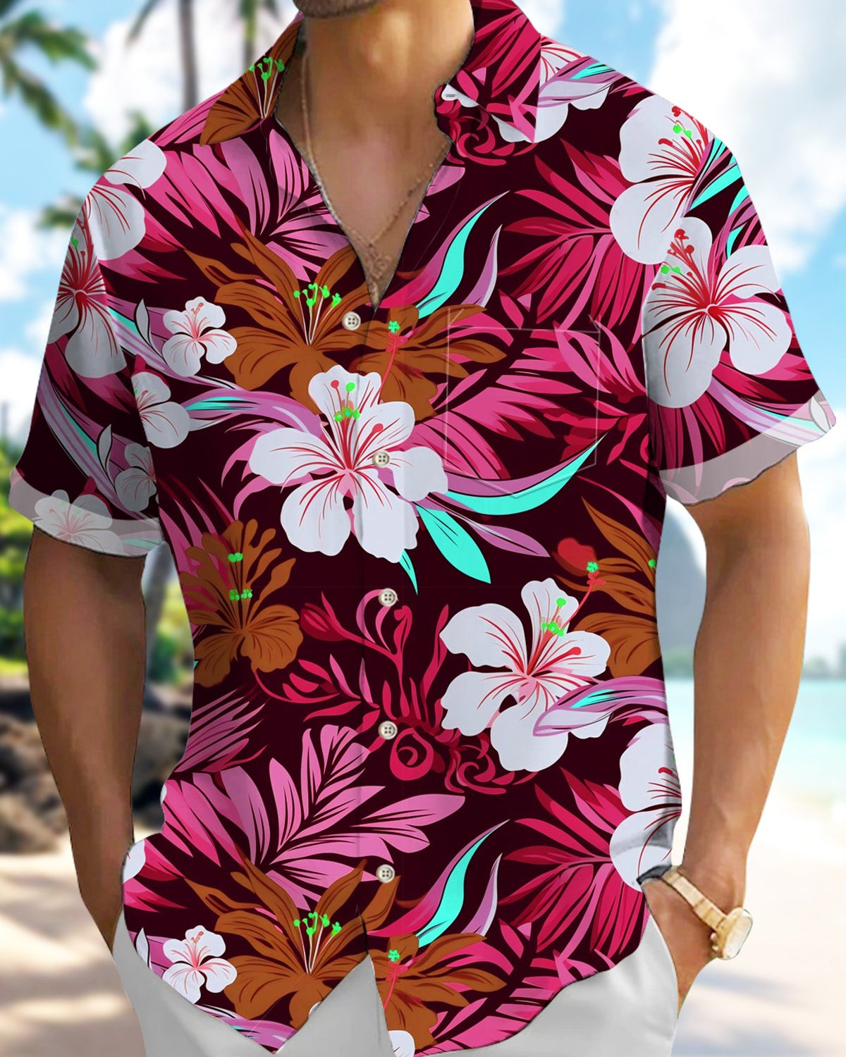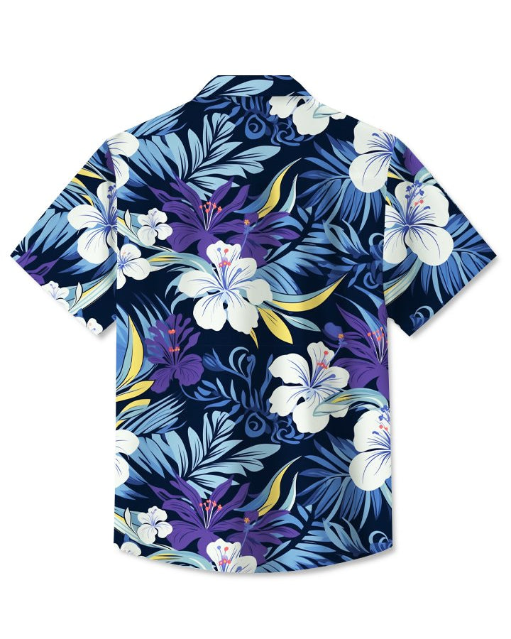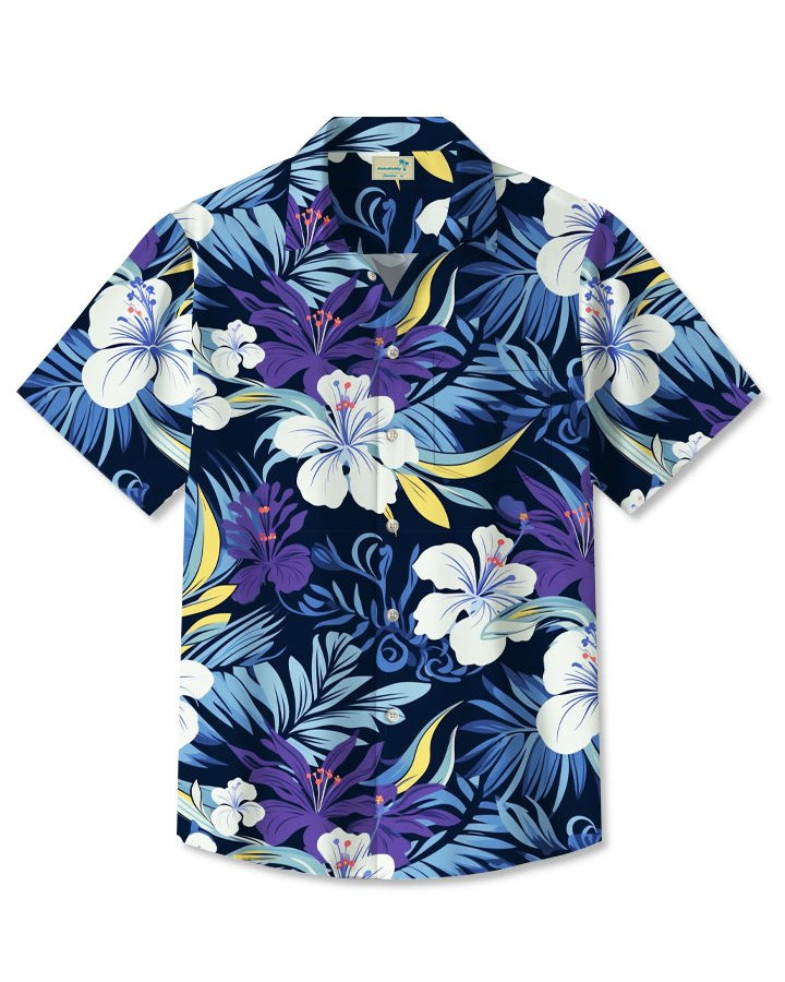 Alohadaddy® Hawaiian Leaves Contrast Art Print Chest Pocket Mens Short Sleeve Shirts Big & Tall