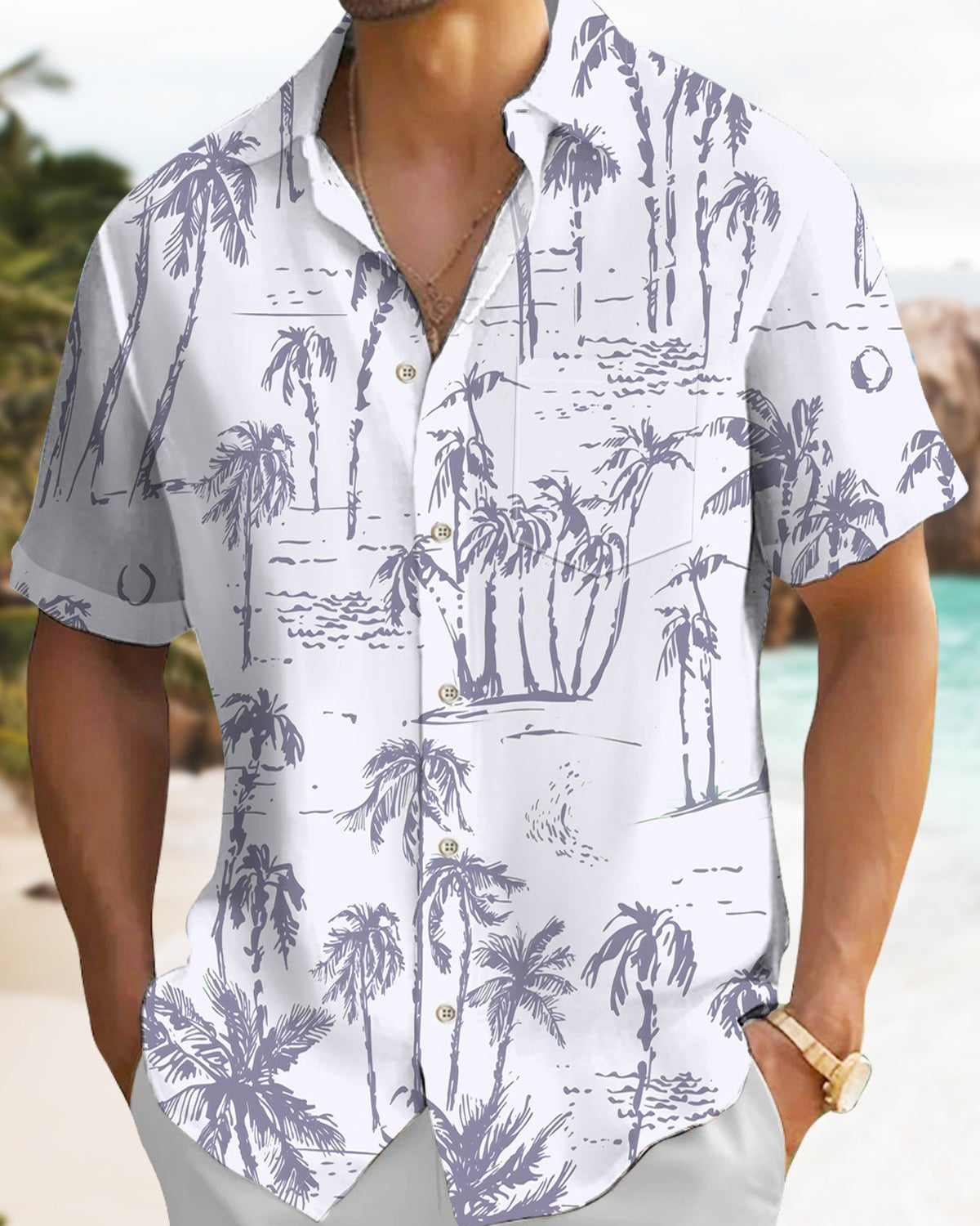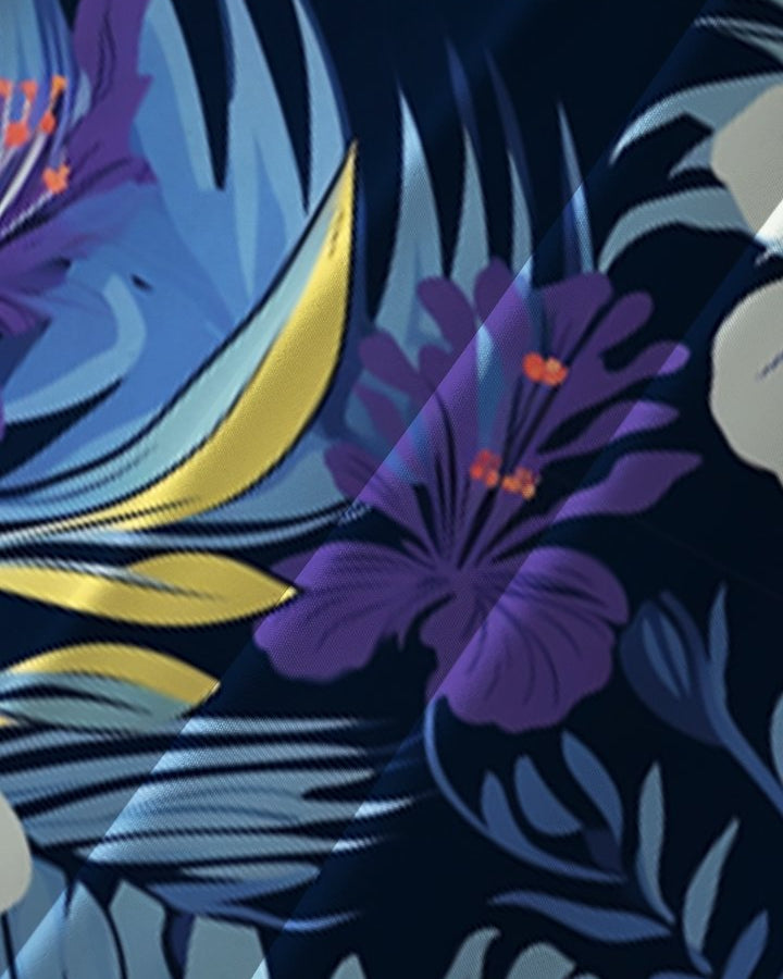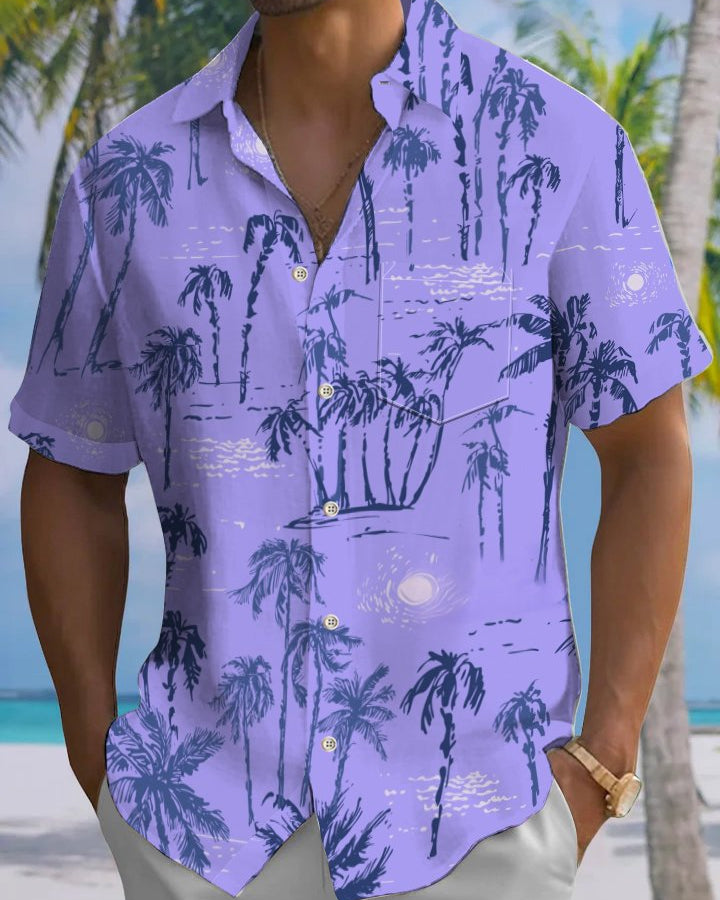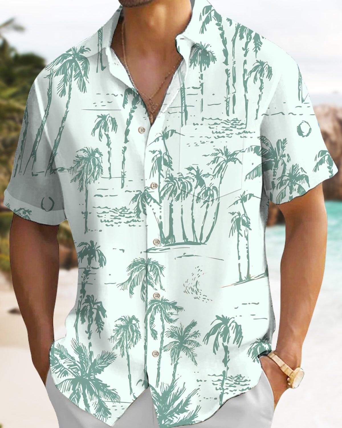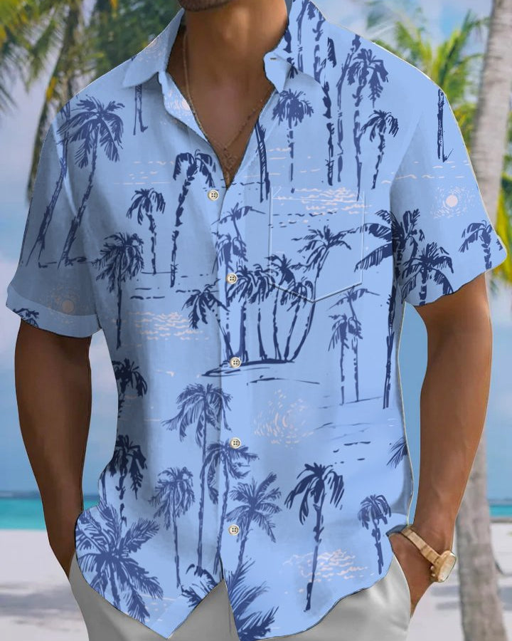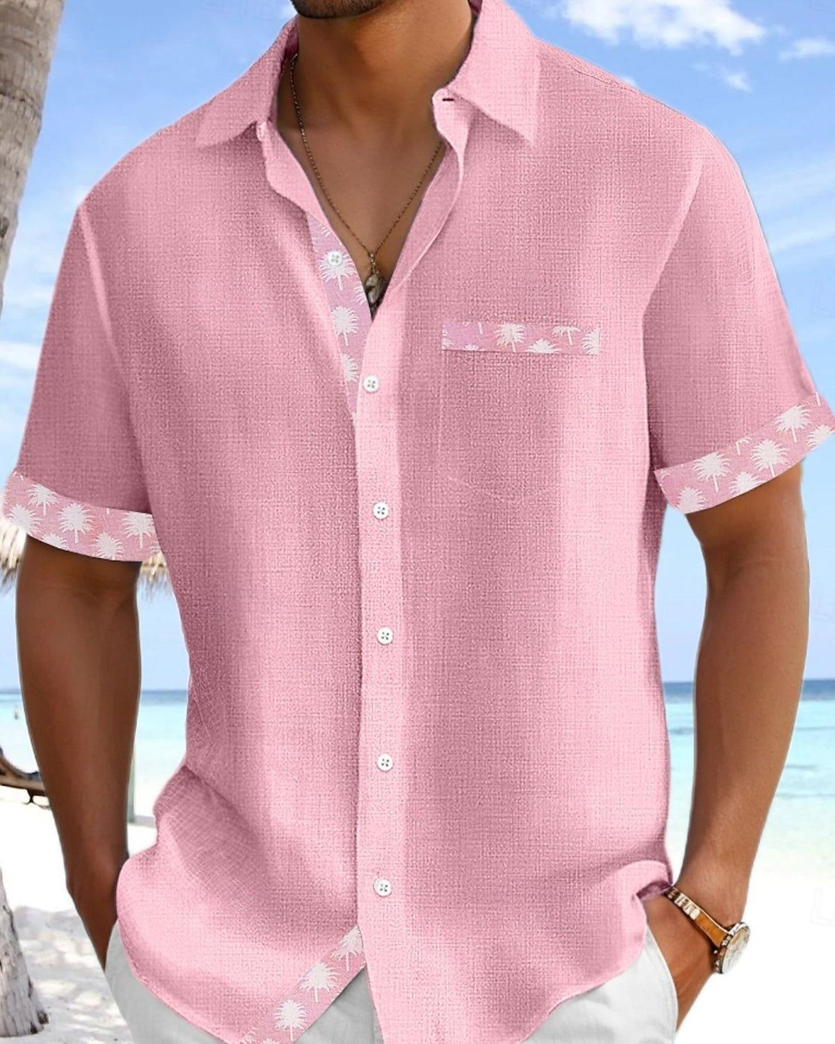 Alohadaddy® Hawaiian Leaves Contrast Art Print Chest Pocket Mens Short Sleeve Shirts Big & Tall