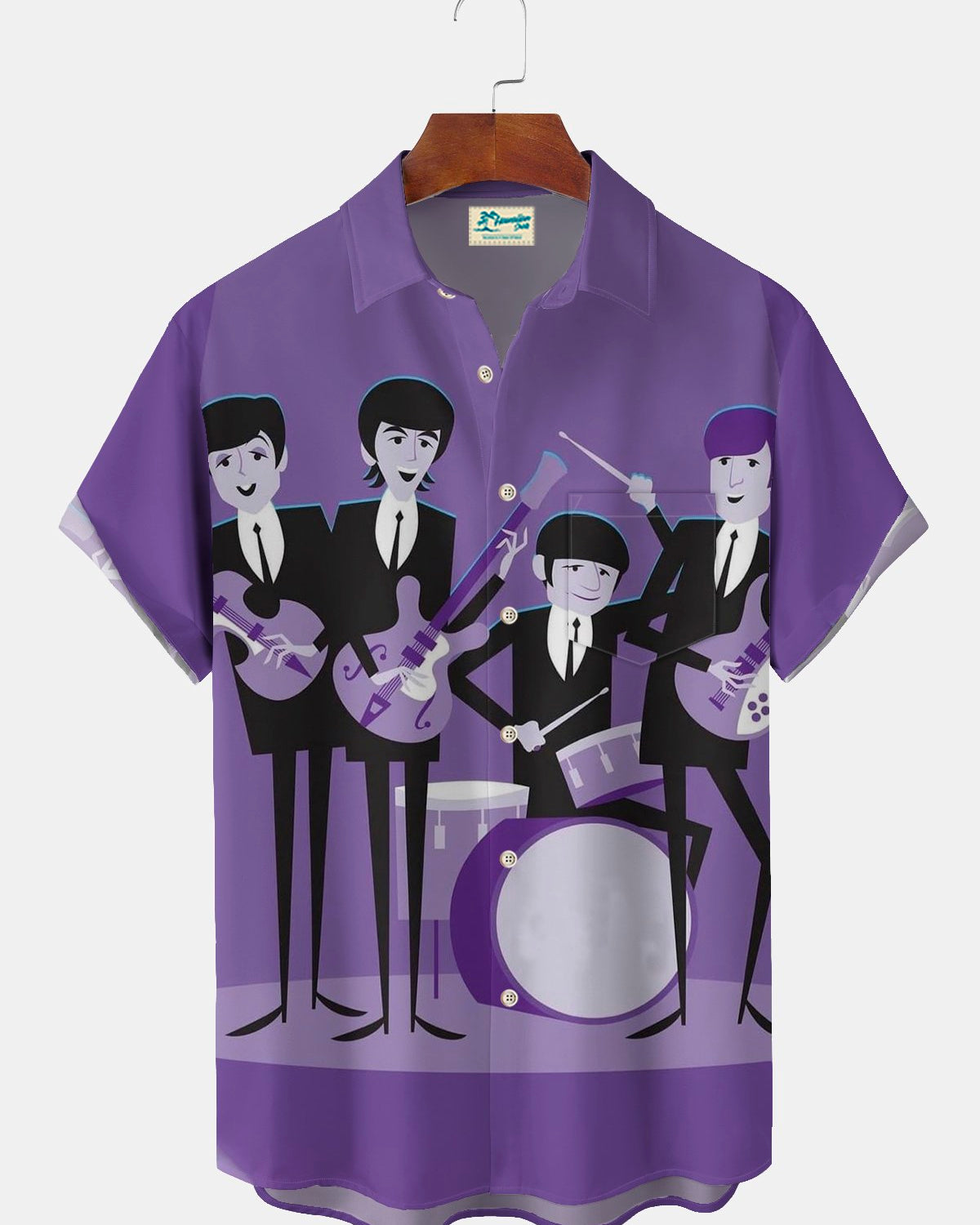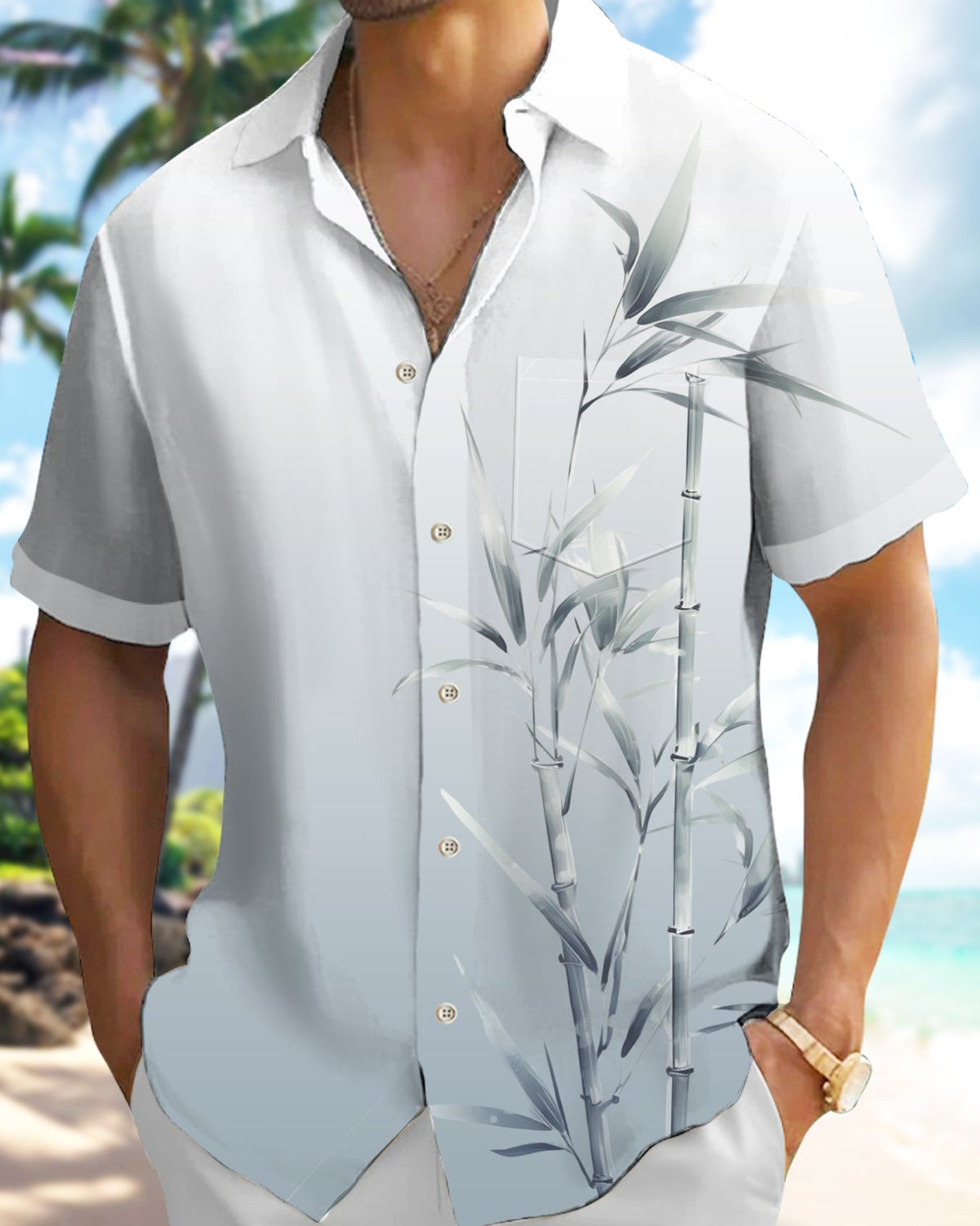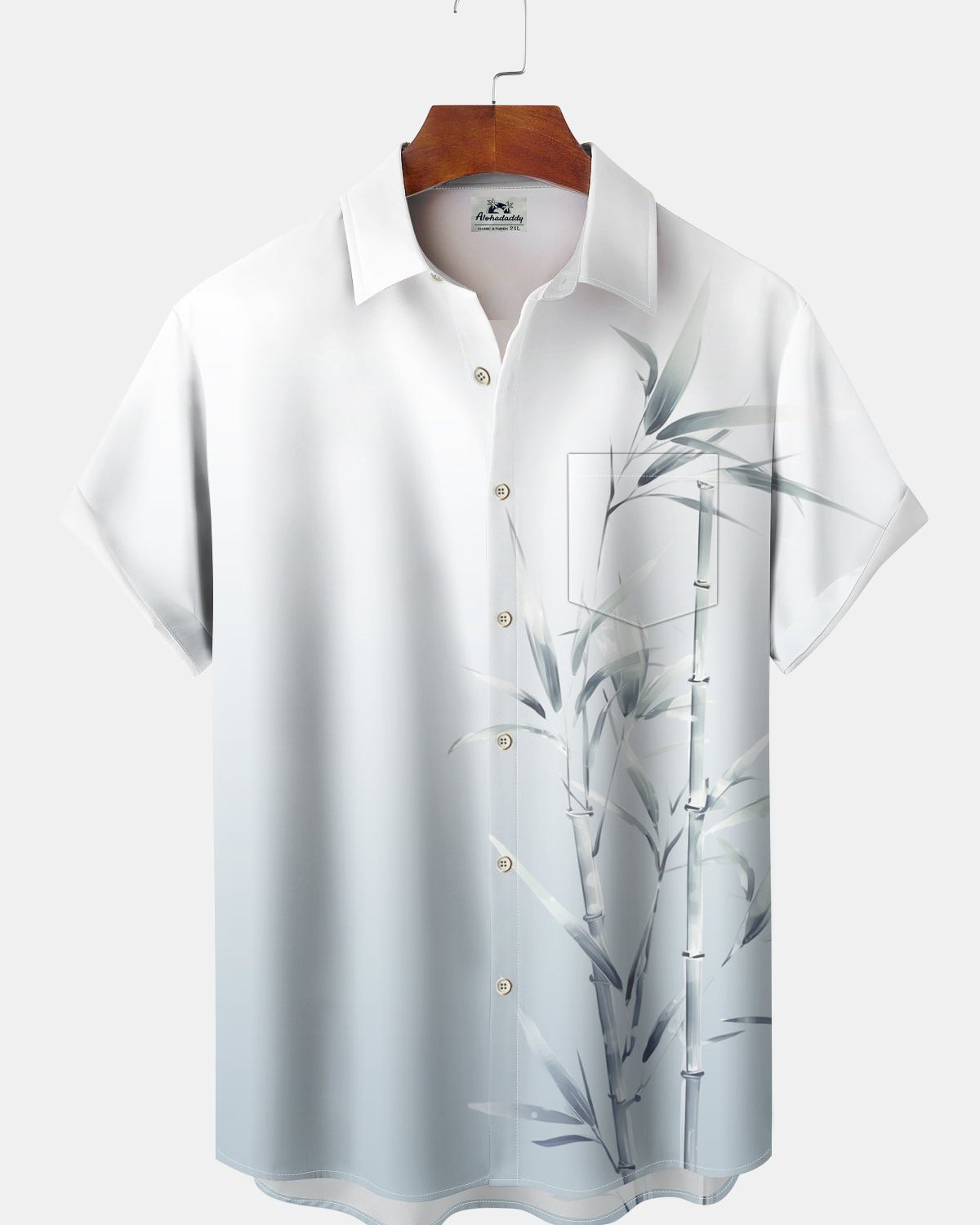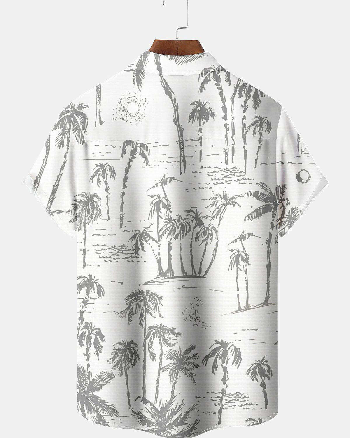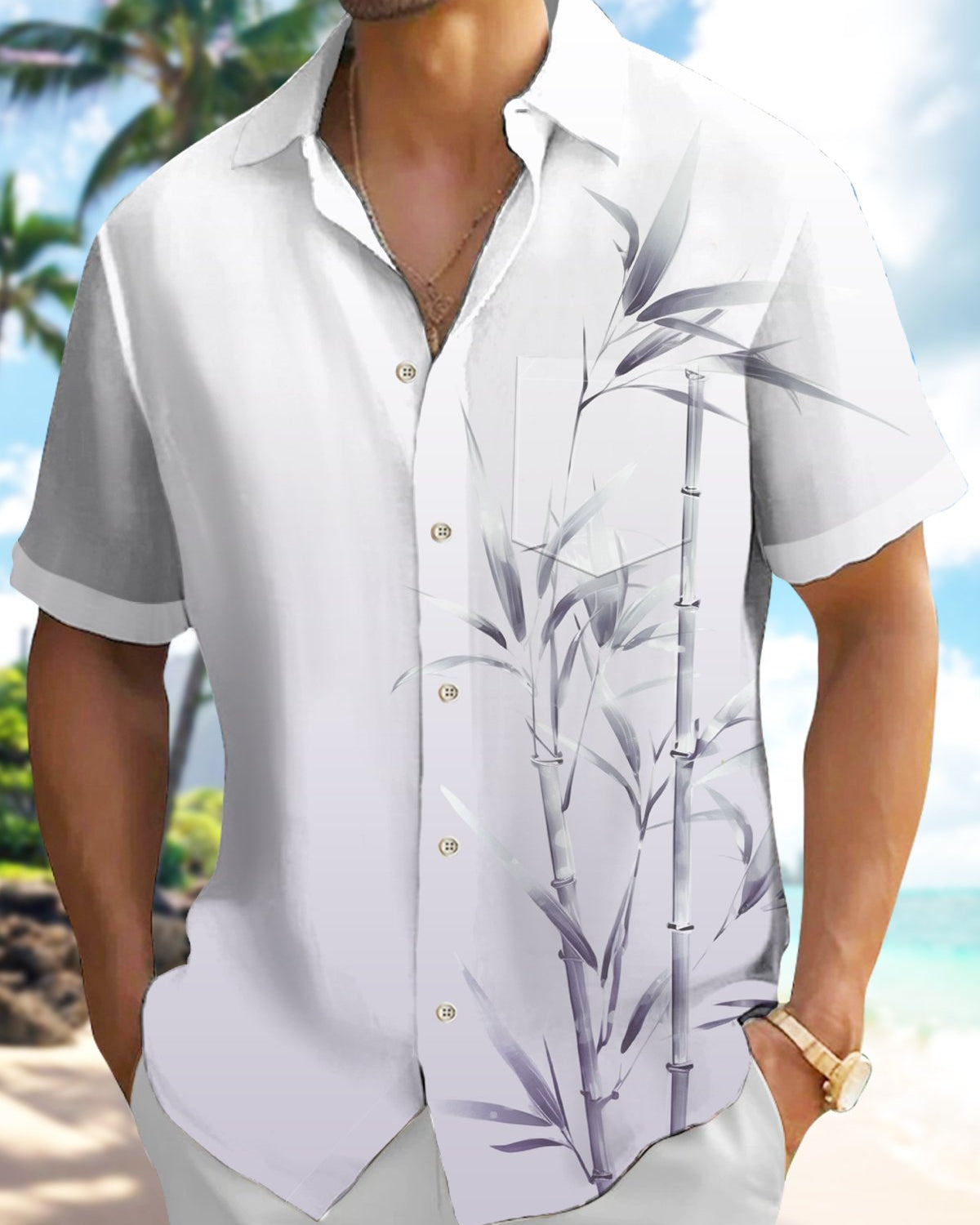 Alohadaddy® Hawaiian Leaves Contrast Art Print Chest Pocket Mens Short Sleeve Shirts Big & Tall