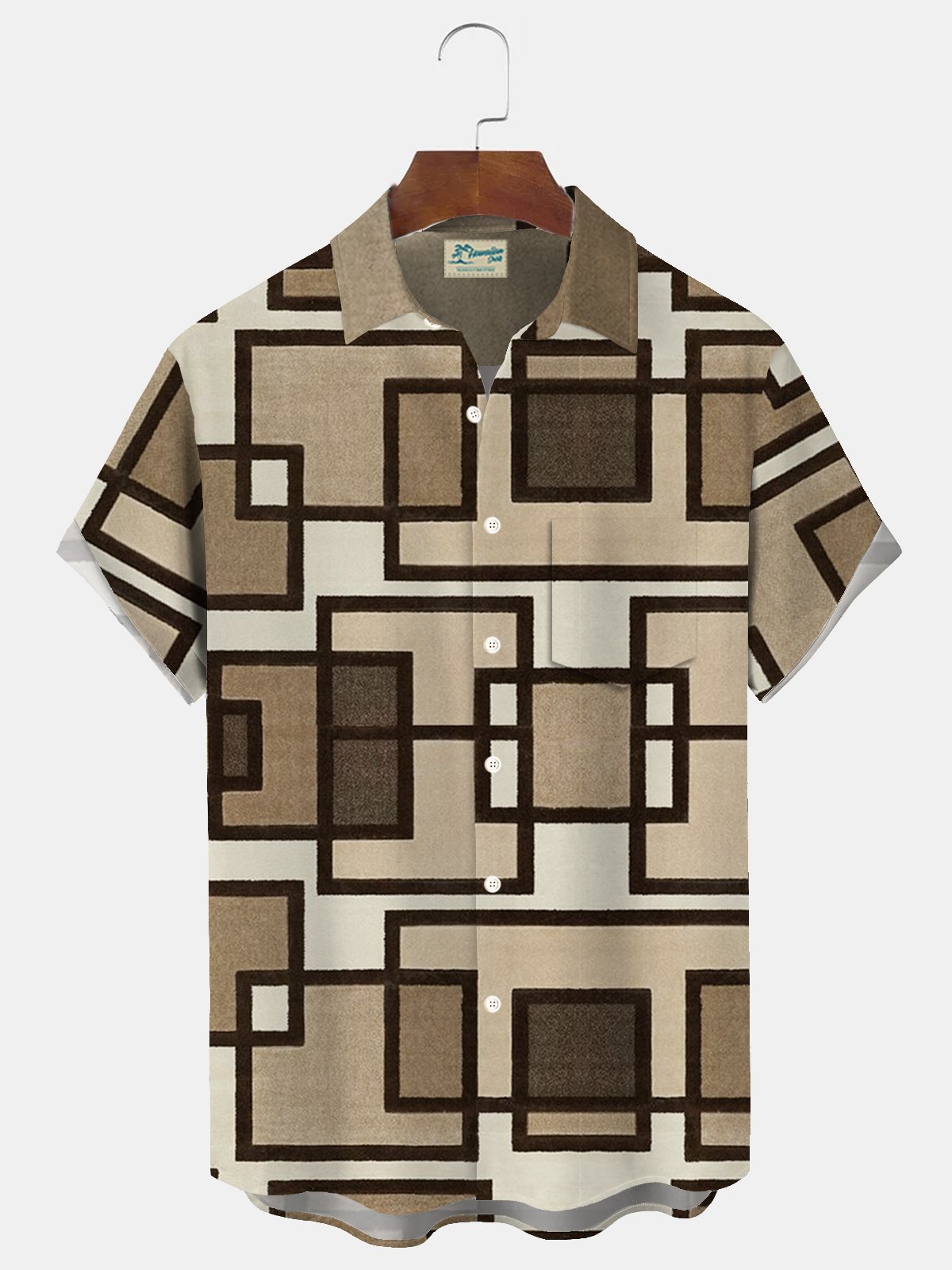 Alohadaddy Retro Geometric Texture Carpet 3D Print Men's Button Pocket Short Sleeve Shirt Big & Tall