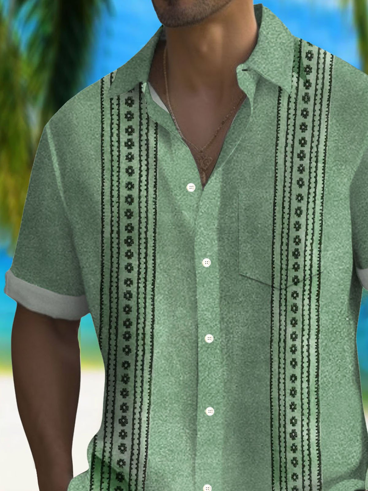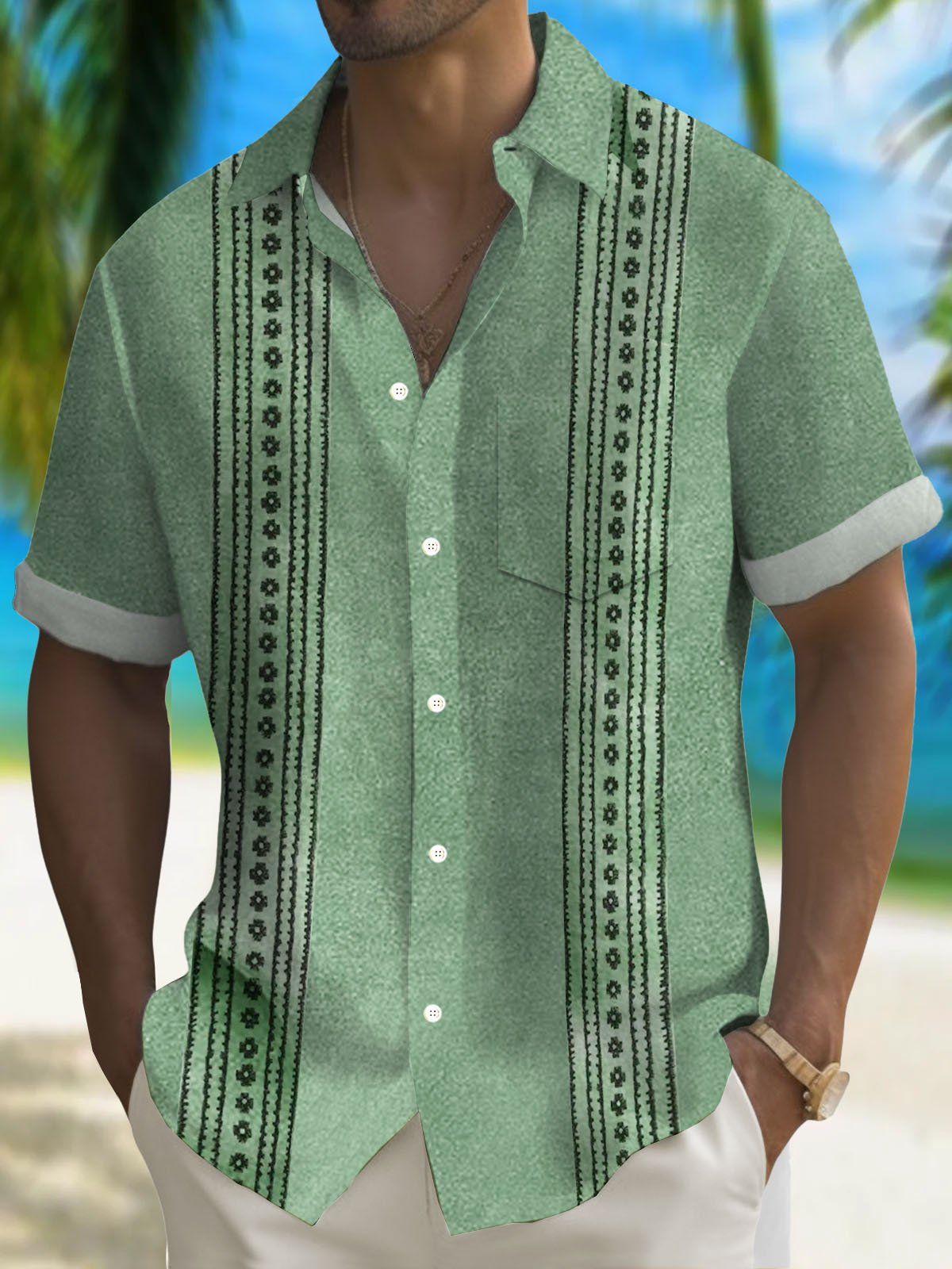 Alohadaddy Retro Geometry Textured 3D Digital Print Men's Button Pocket Short Sleeve Shirt Big & Tall