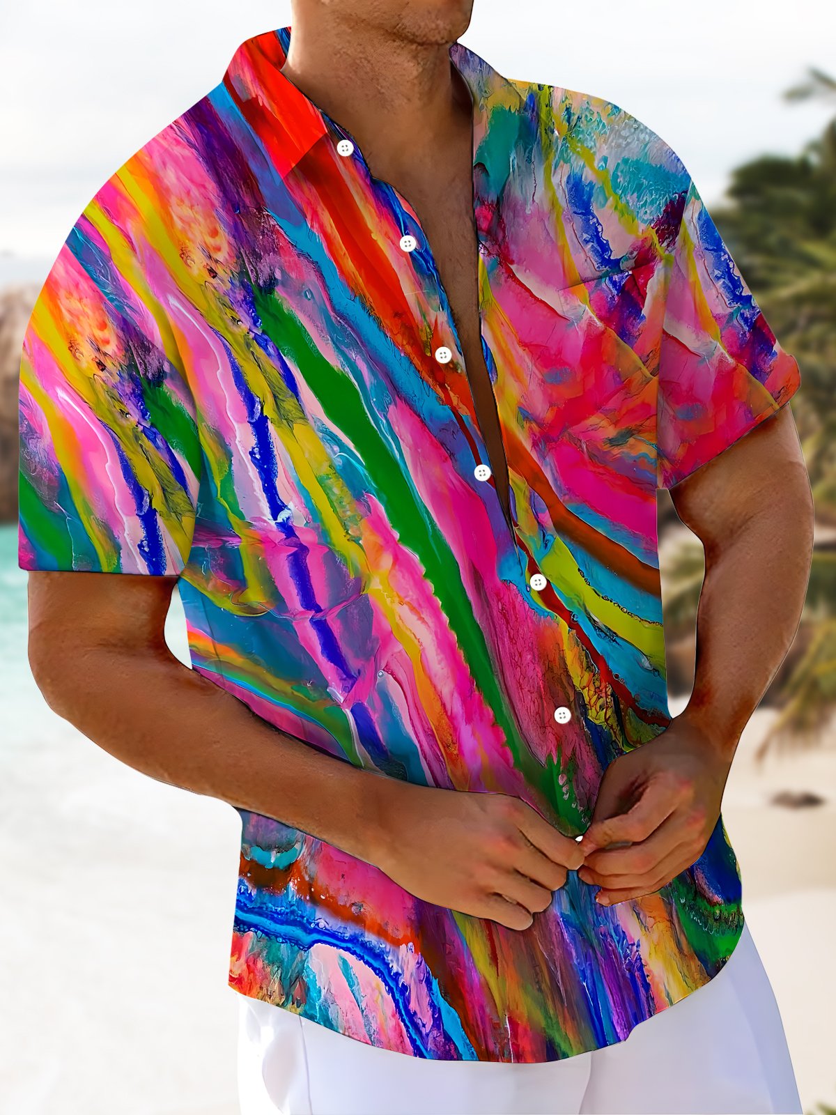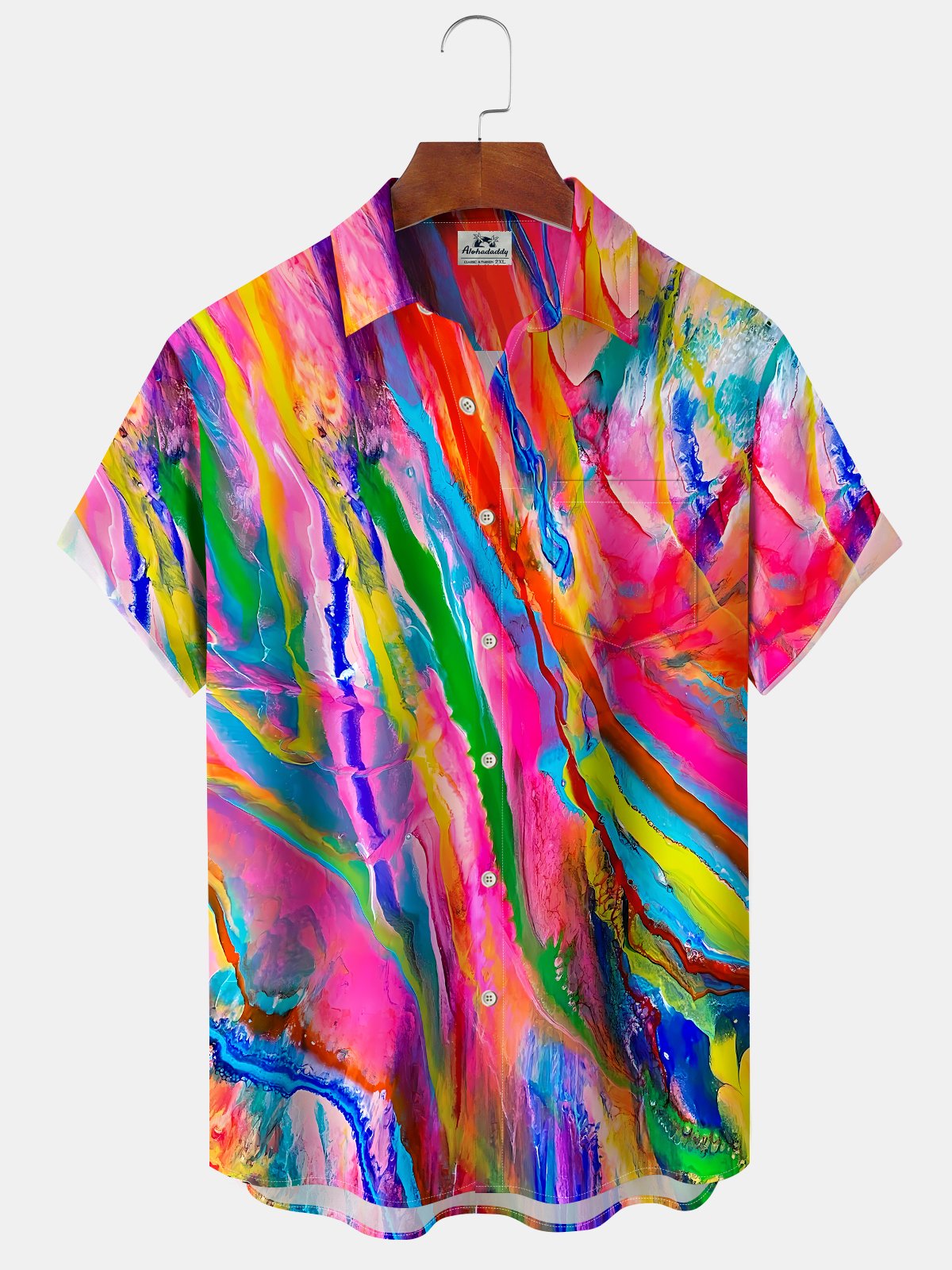 Alohadaddy® Abstract Texture Moisture Wicking Chest Pocket Hawaiian Men's Short Sleeve Shirt Big & Tall