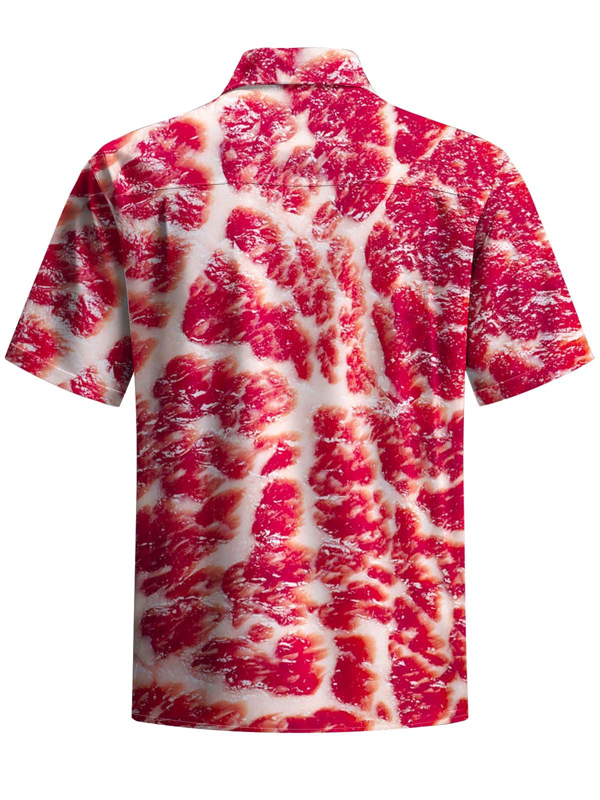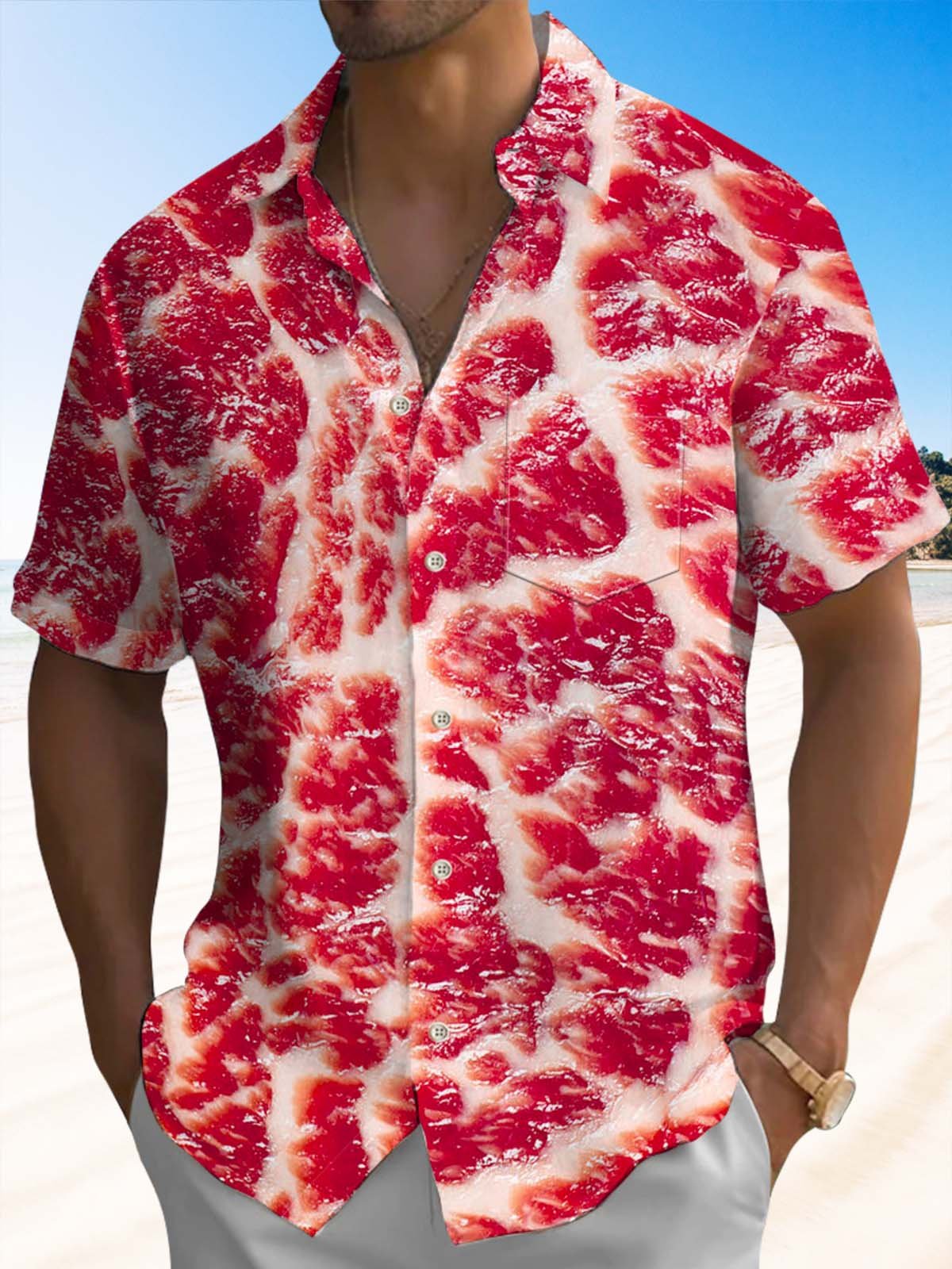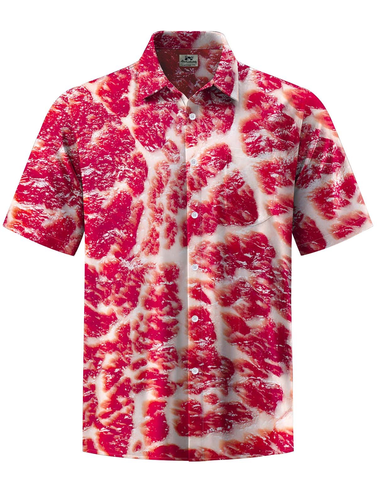 Alohadaddy® Casual Beef Marbled Art Print Chest Pocket Men's Short Sleeve Shirt Big & Tall