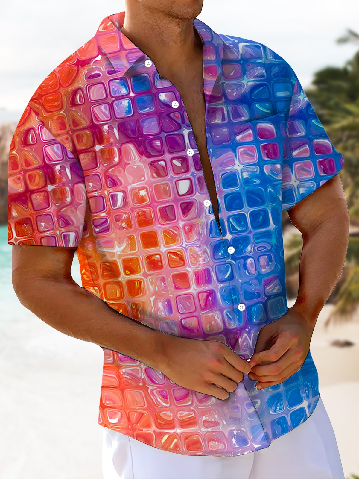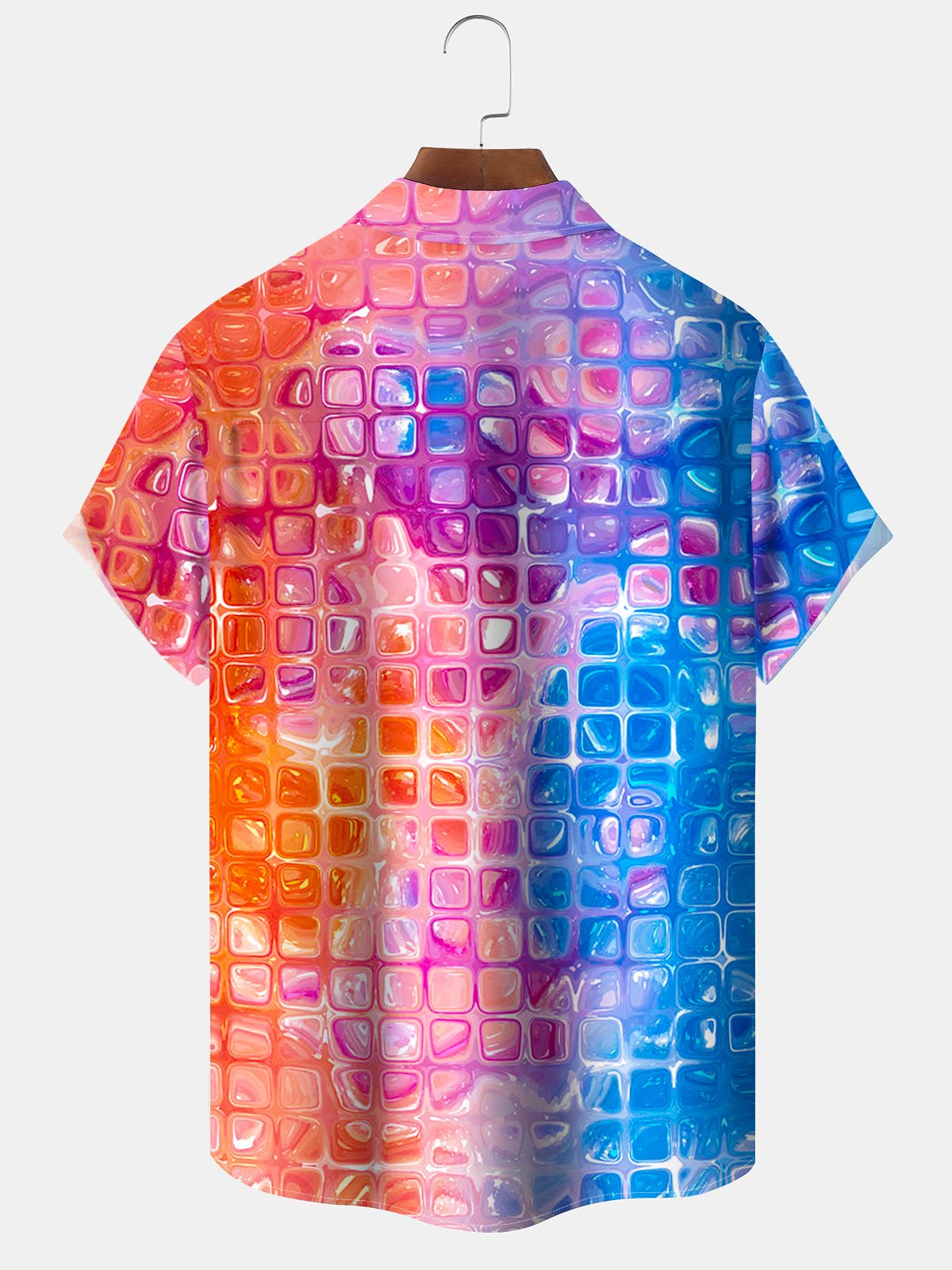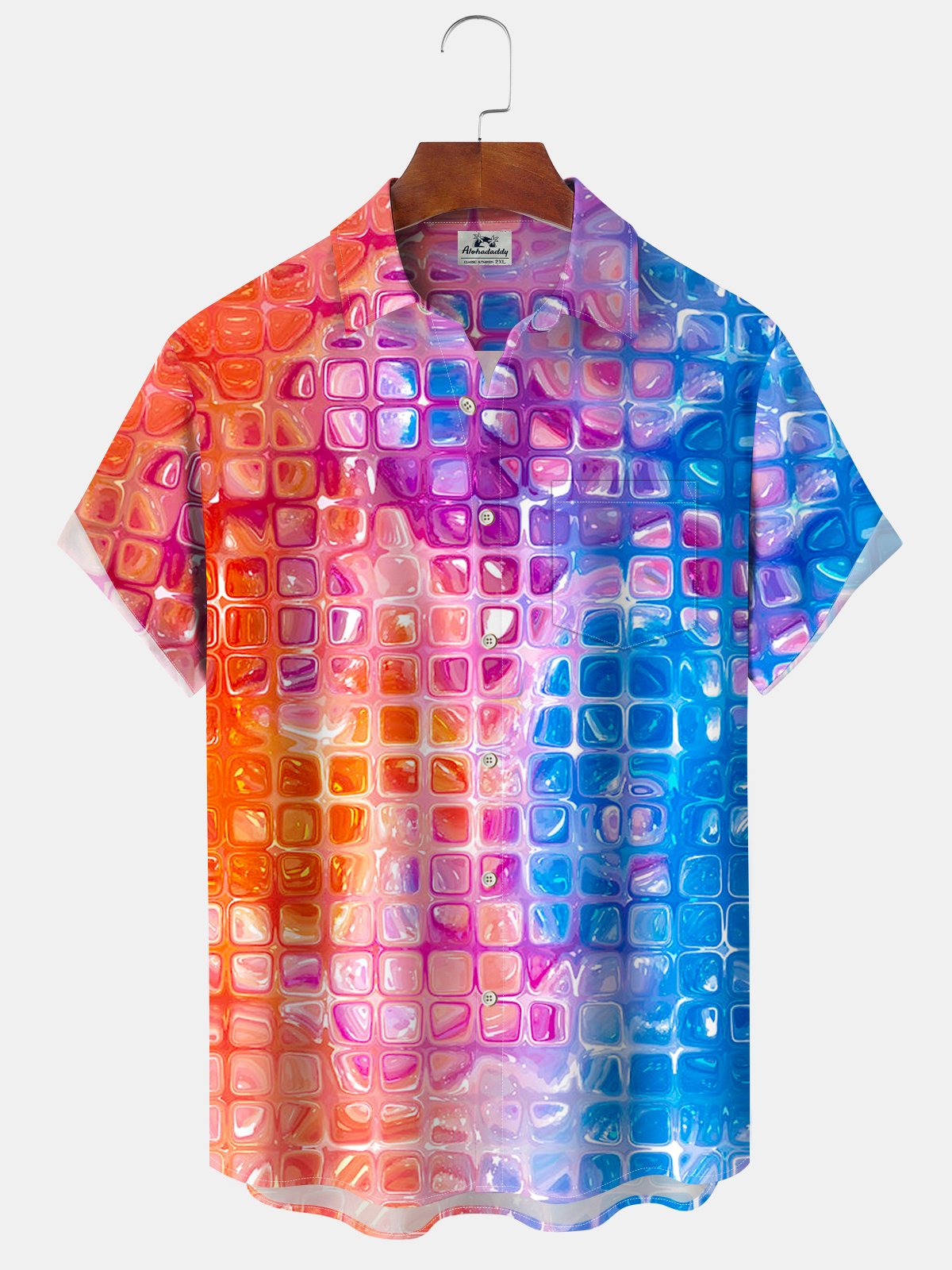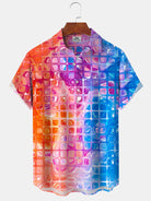 Alohadaddy® Casual Gradient Geometric Print Pocket Button Stretch Men's Short Sleeve Shirt Big & Tall