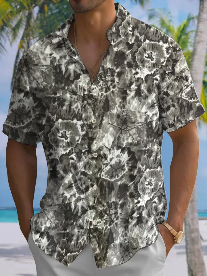 Alohadaddy® Casual Tie-Dye Art Print Moisture-Wicking Chest Pocket Men's Short Sleeve Shirt Big & Tall