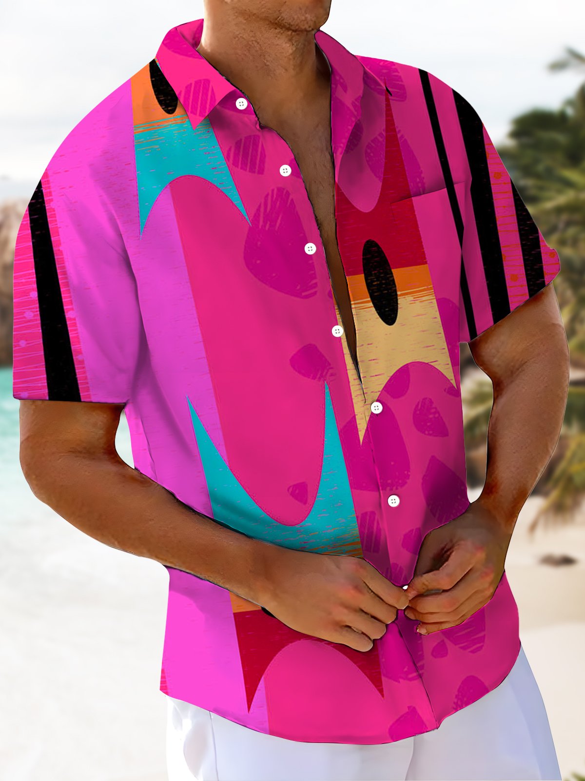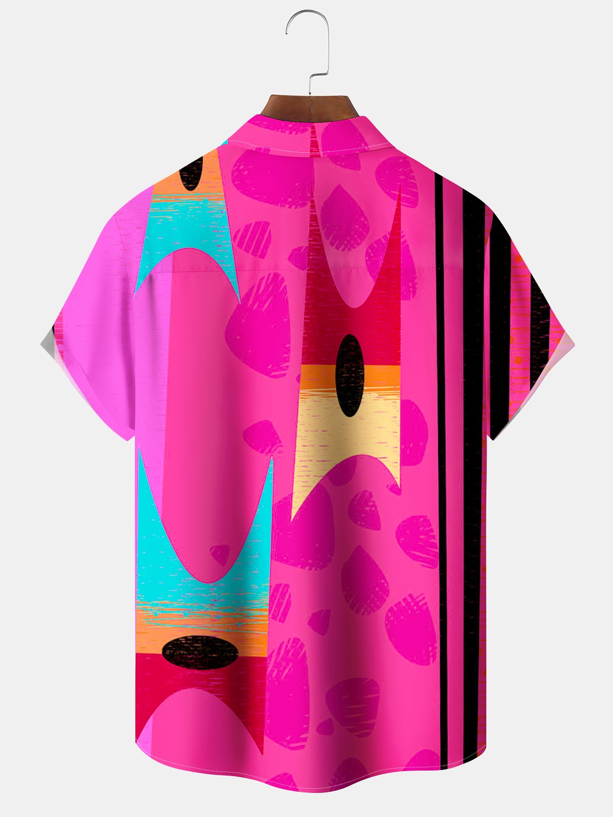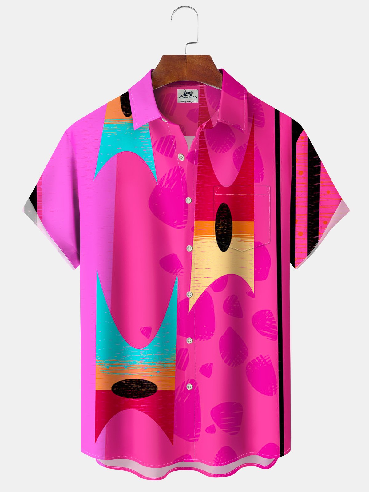 Alohadaddy® Retro Geometric Stripe Print Pocket Stretch Men's Short Sleeve Shirt Big & Tall