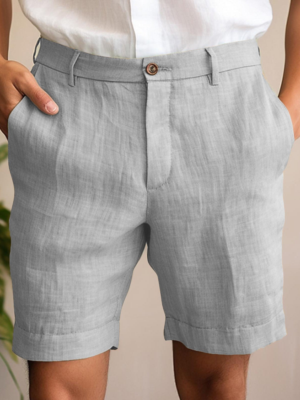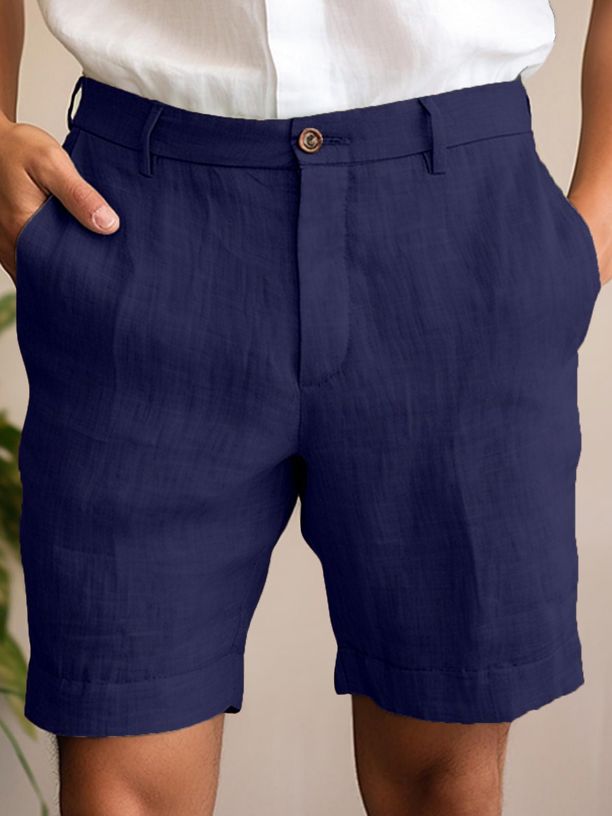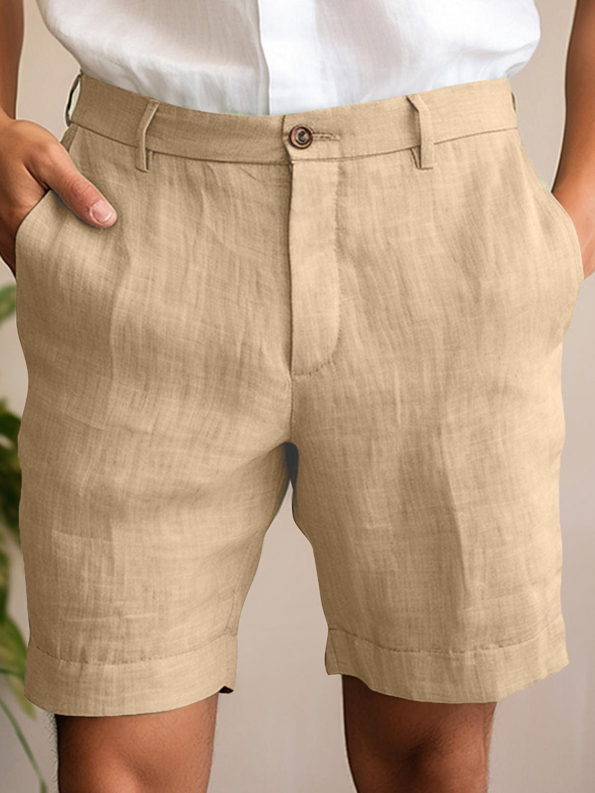 Alohadaddy® Hawaiian Men's Linen Summer Comfort Breathable Pocket Button Beach Shorts