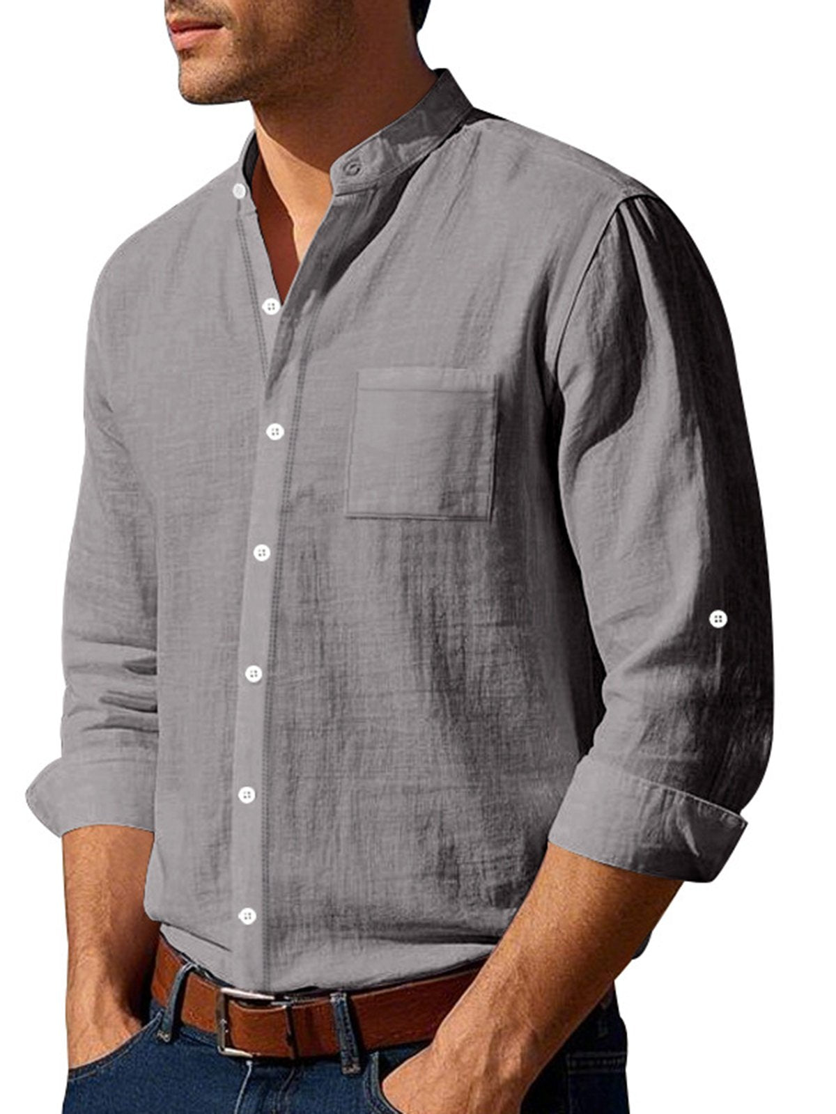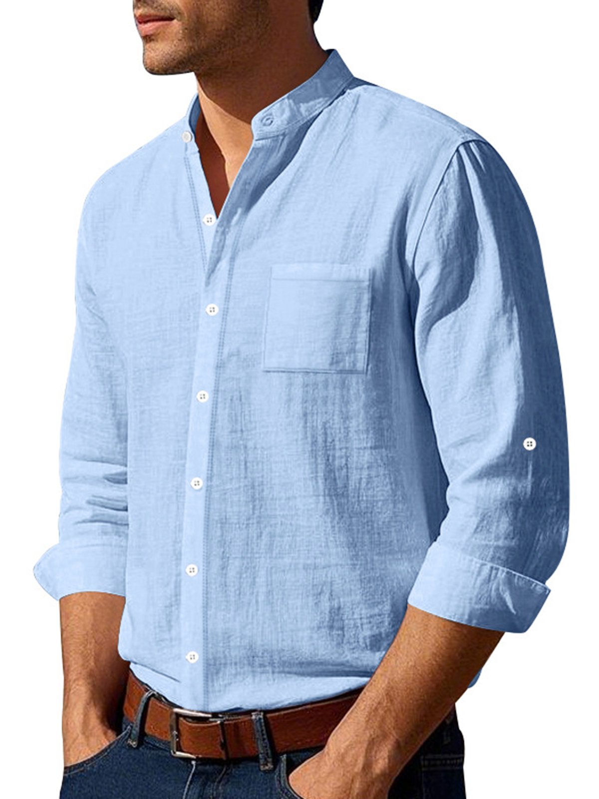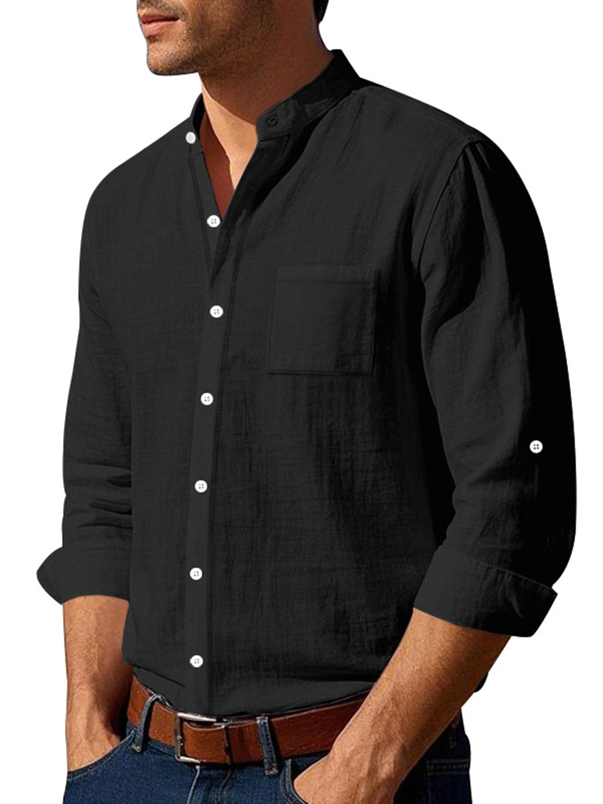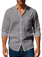 Alohadaddy® Linen Shirt Long Sleeve Stand Collar Breathable Casual New Chinese Pocket Shirt Men's Shirt