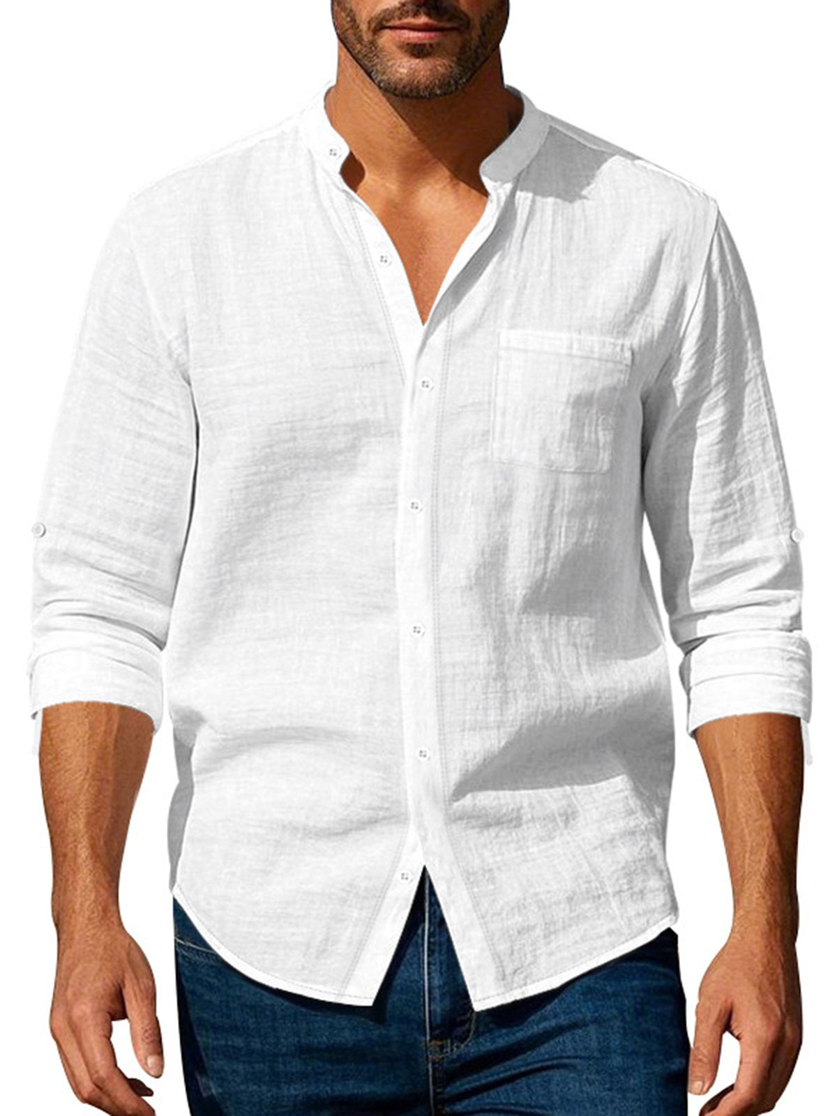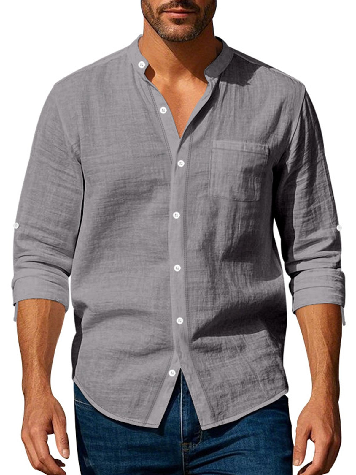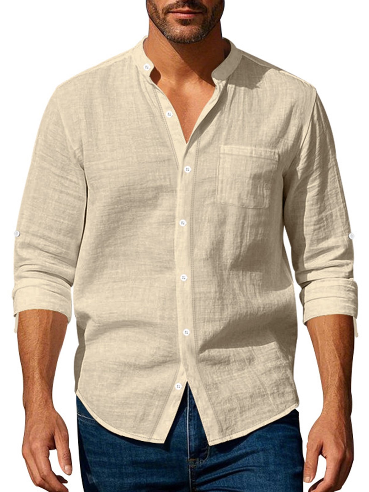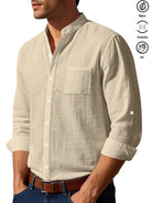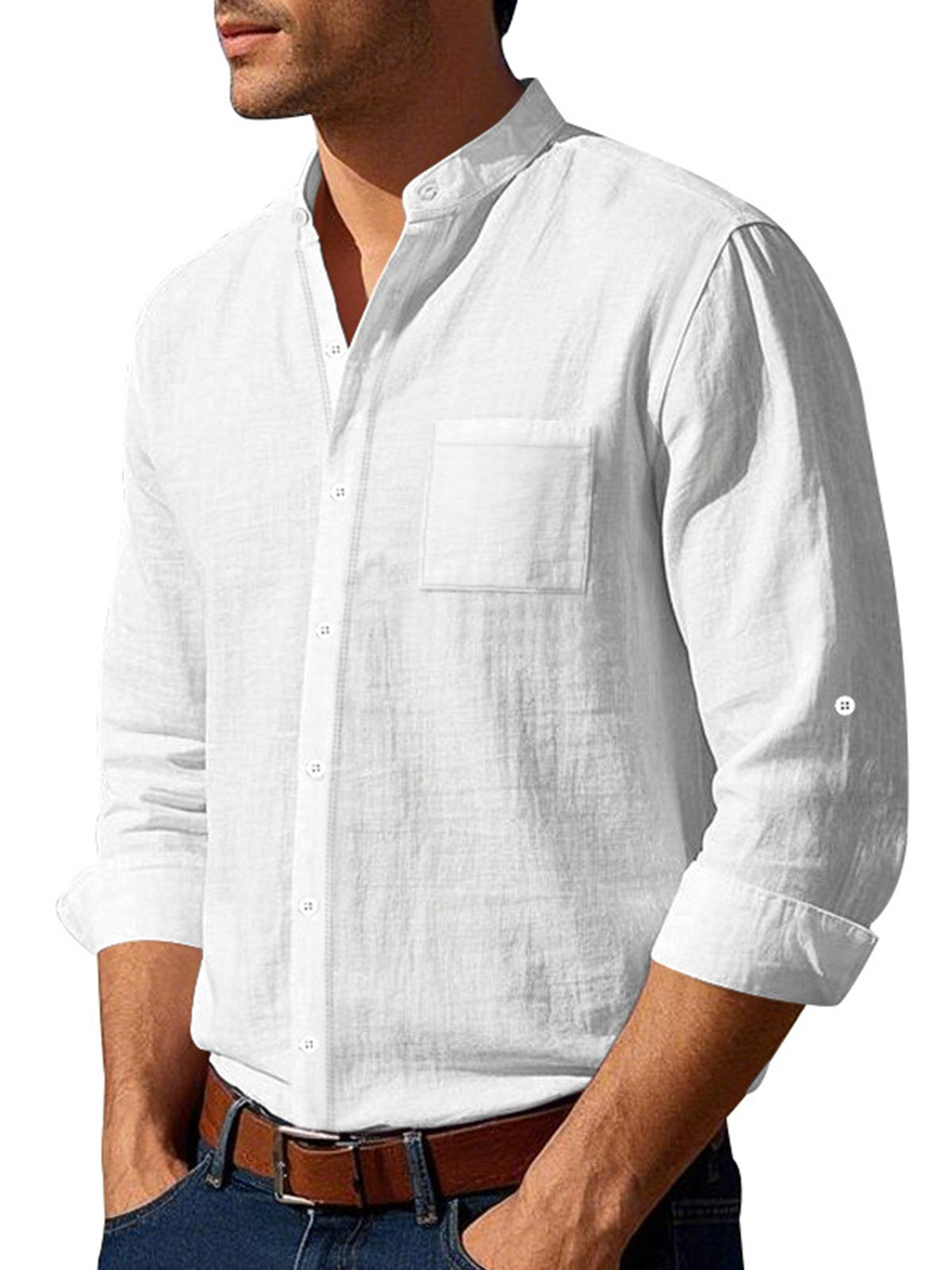 Alohadaddy® Linen Shirt Long Sleeve Stand Collar Breathable Casual New Chinese Pocket Shirt Men's Shirt