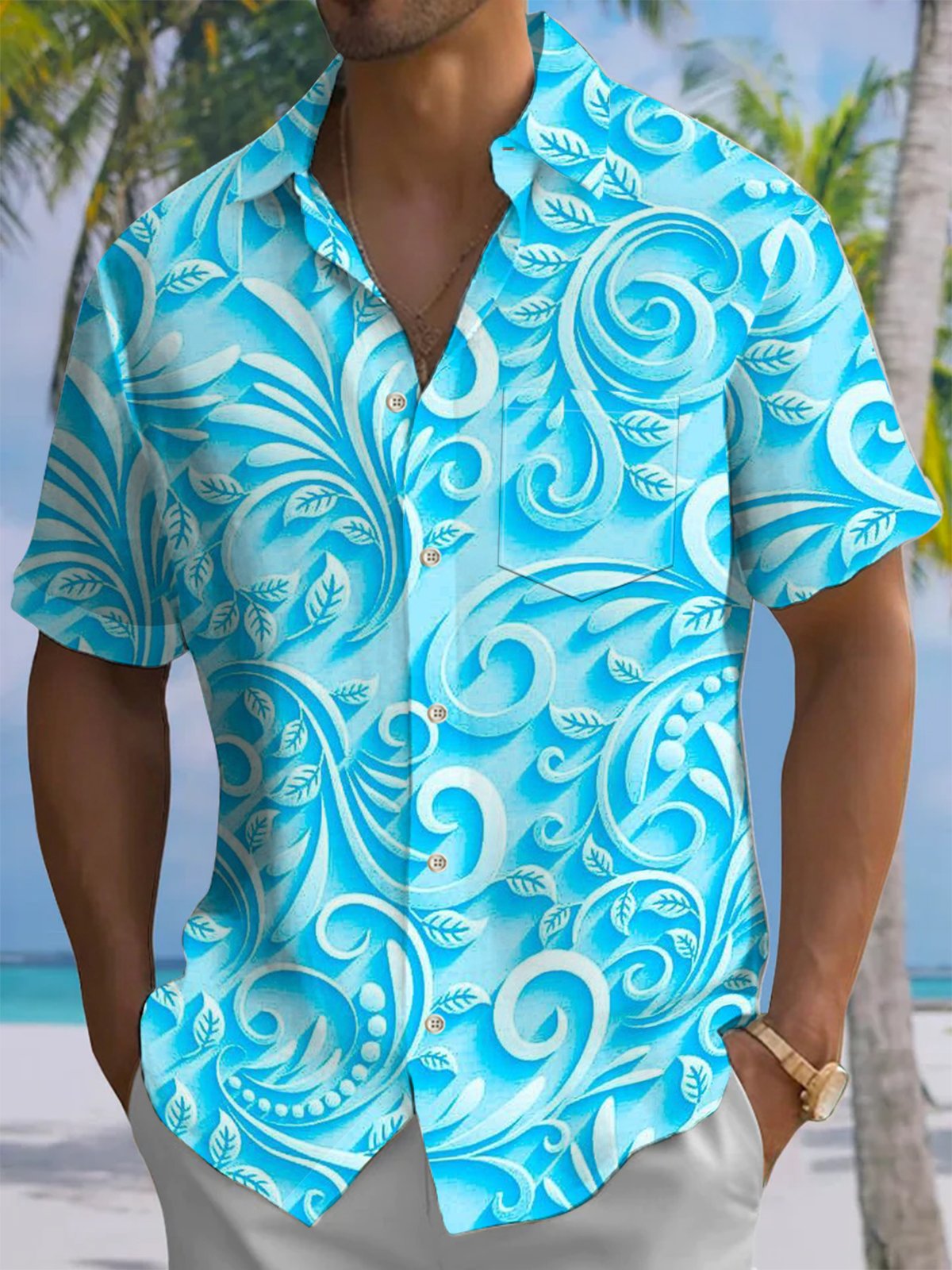 Alohadaddy® Casual 3D Embossed Leaf Art Print Chest Pocket Men's Short Sleeve Shirt Big & Tall