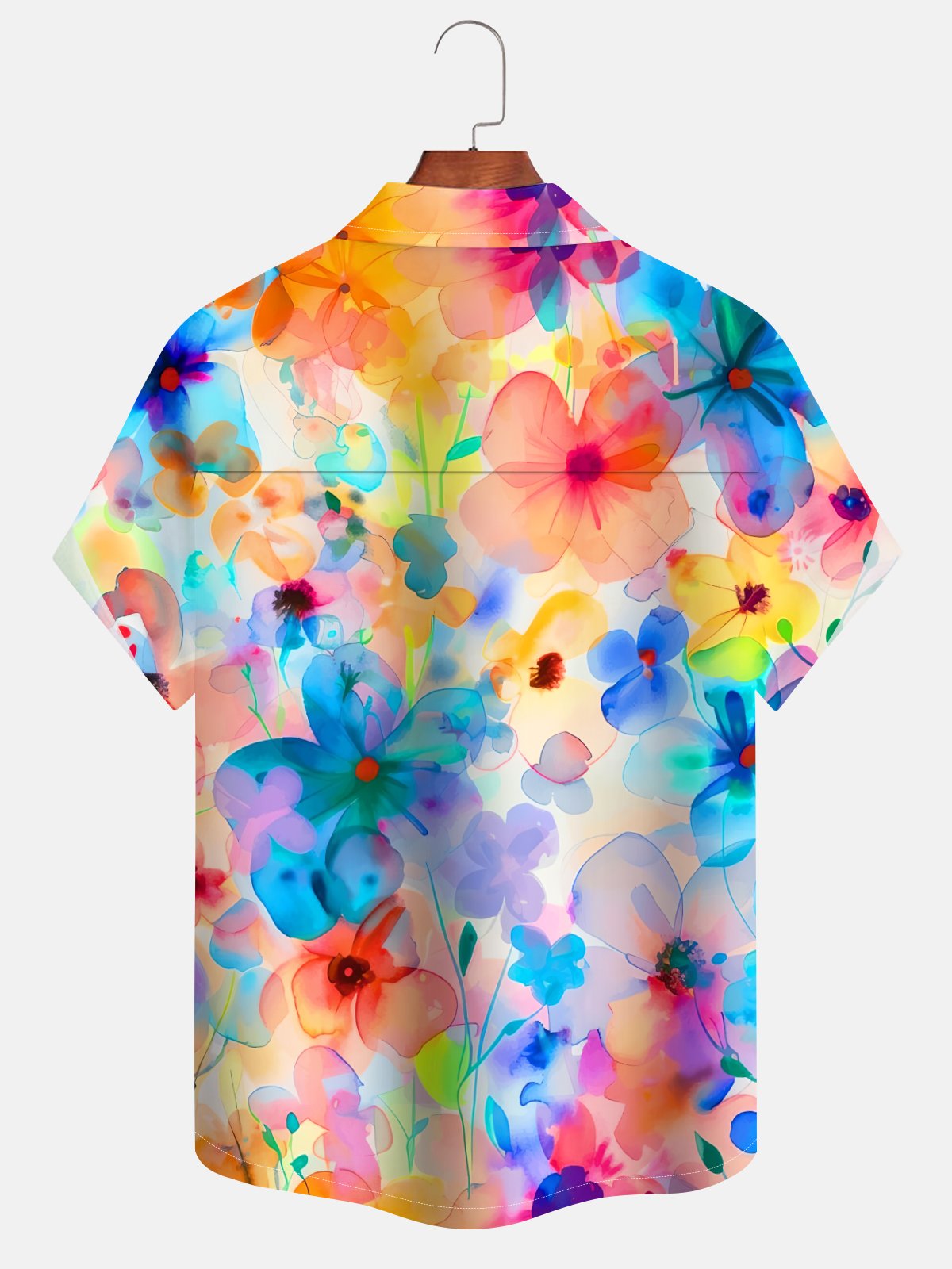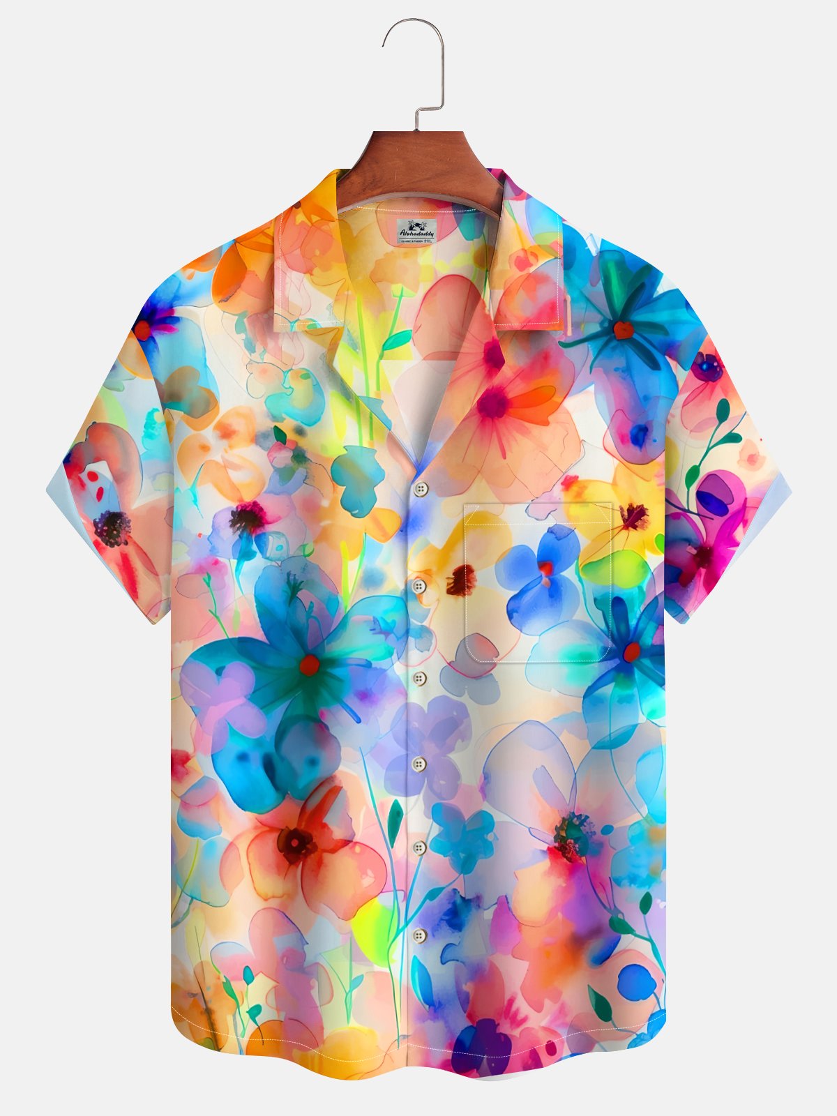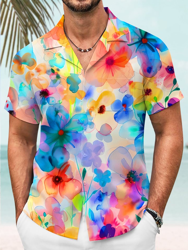 Alohadaddy® Casual Floral Abstract Smudge Print Art Chest Pocket Elastic Oversized Hawaiian Cuban Collar Shirt