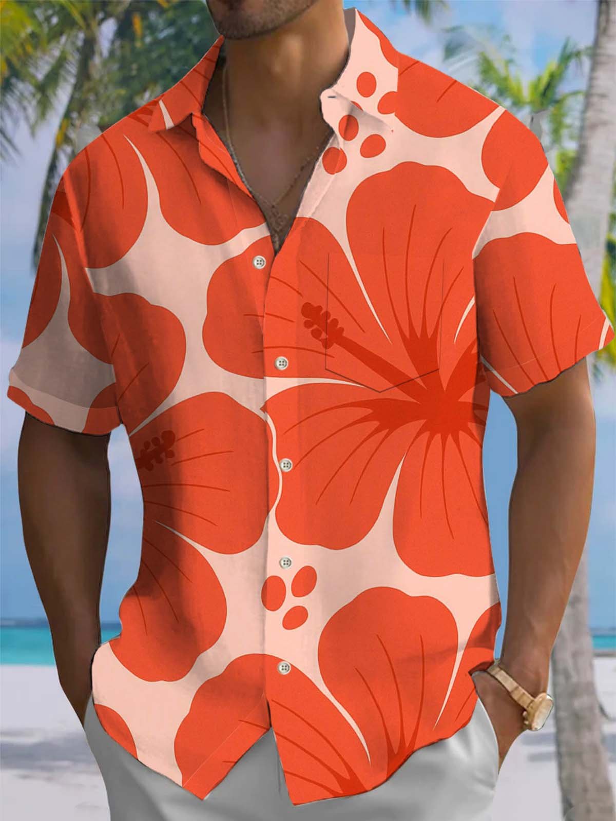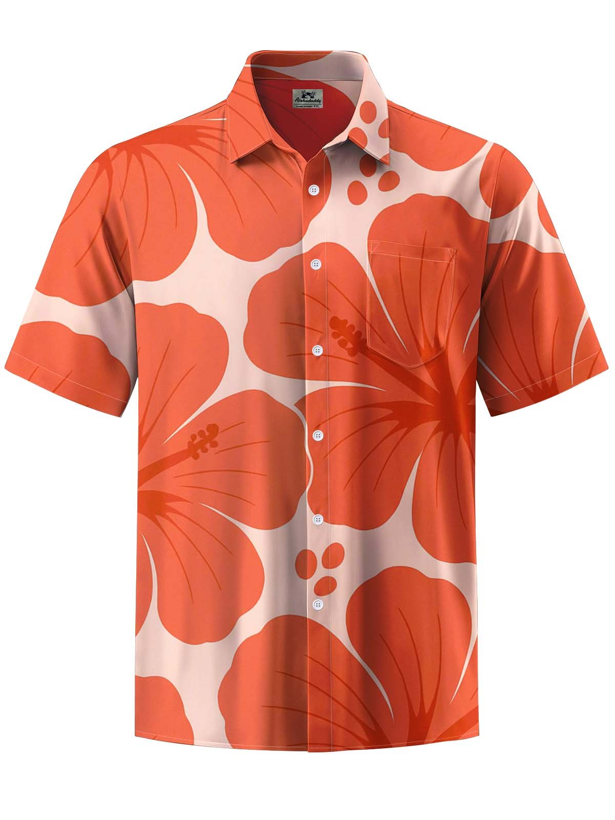 Alohadaddy® Casual Floral Art Print Chest Pocket Stretch Men's Short Sleeve Shirt Big & Tall