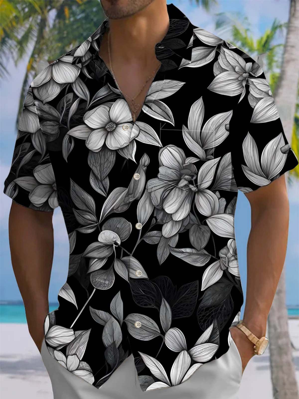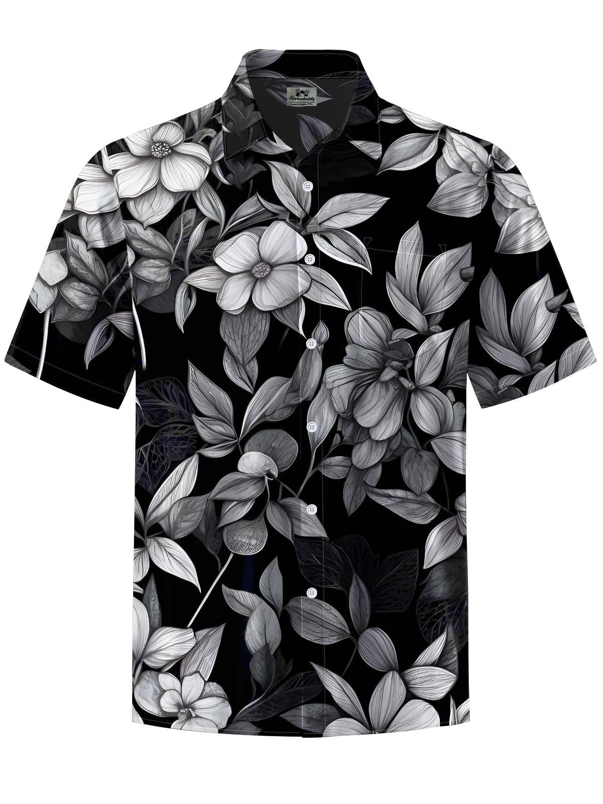 Alohadaddy® Casual Floral Art Print Chest Pocket Stretch Men's Short Sleeve Shirt Big & Tall