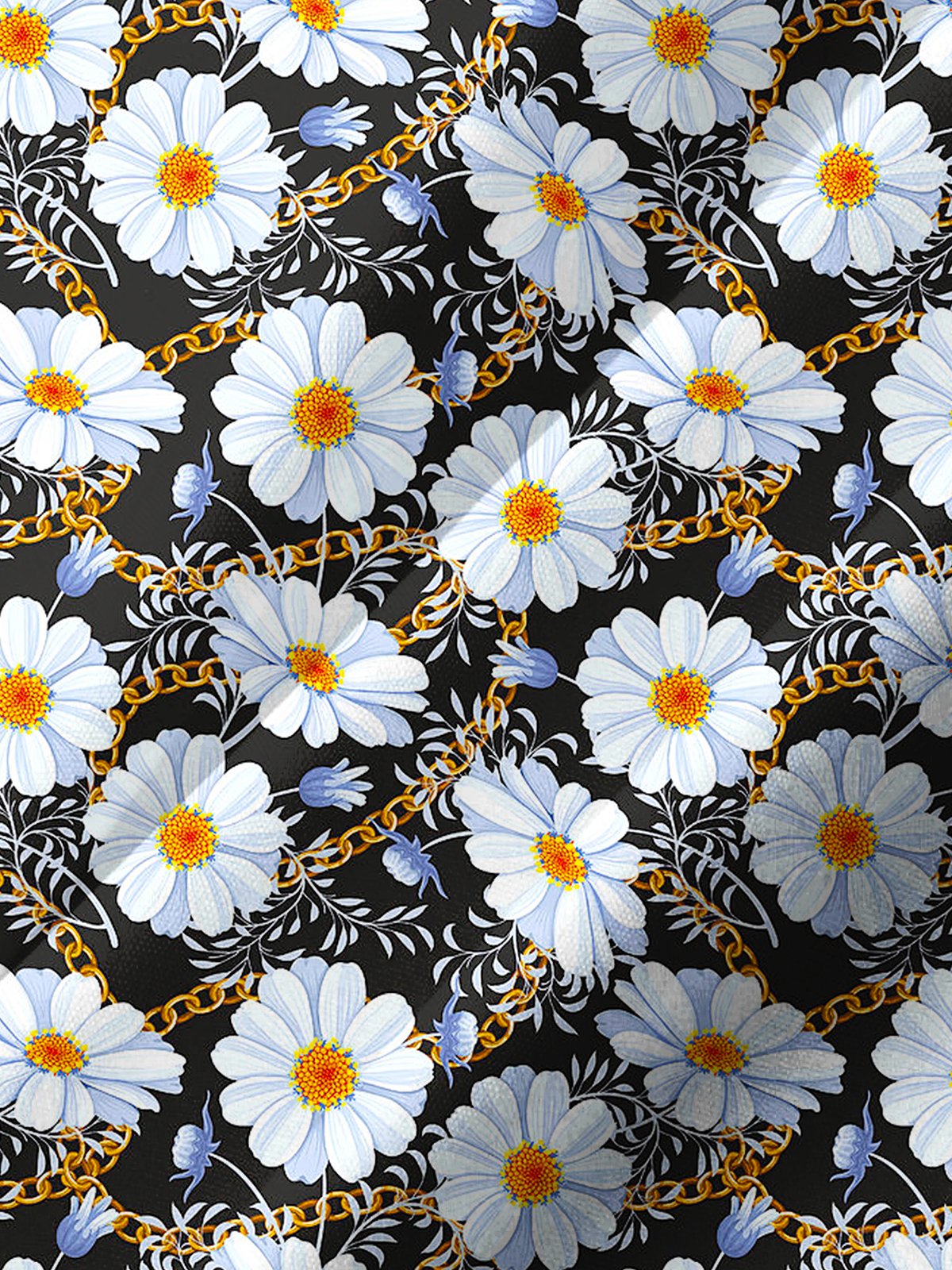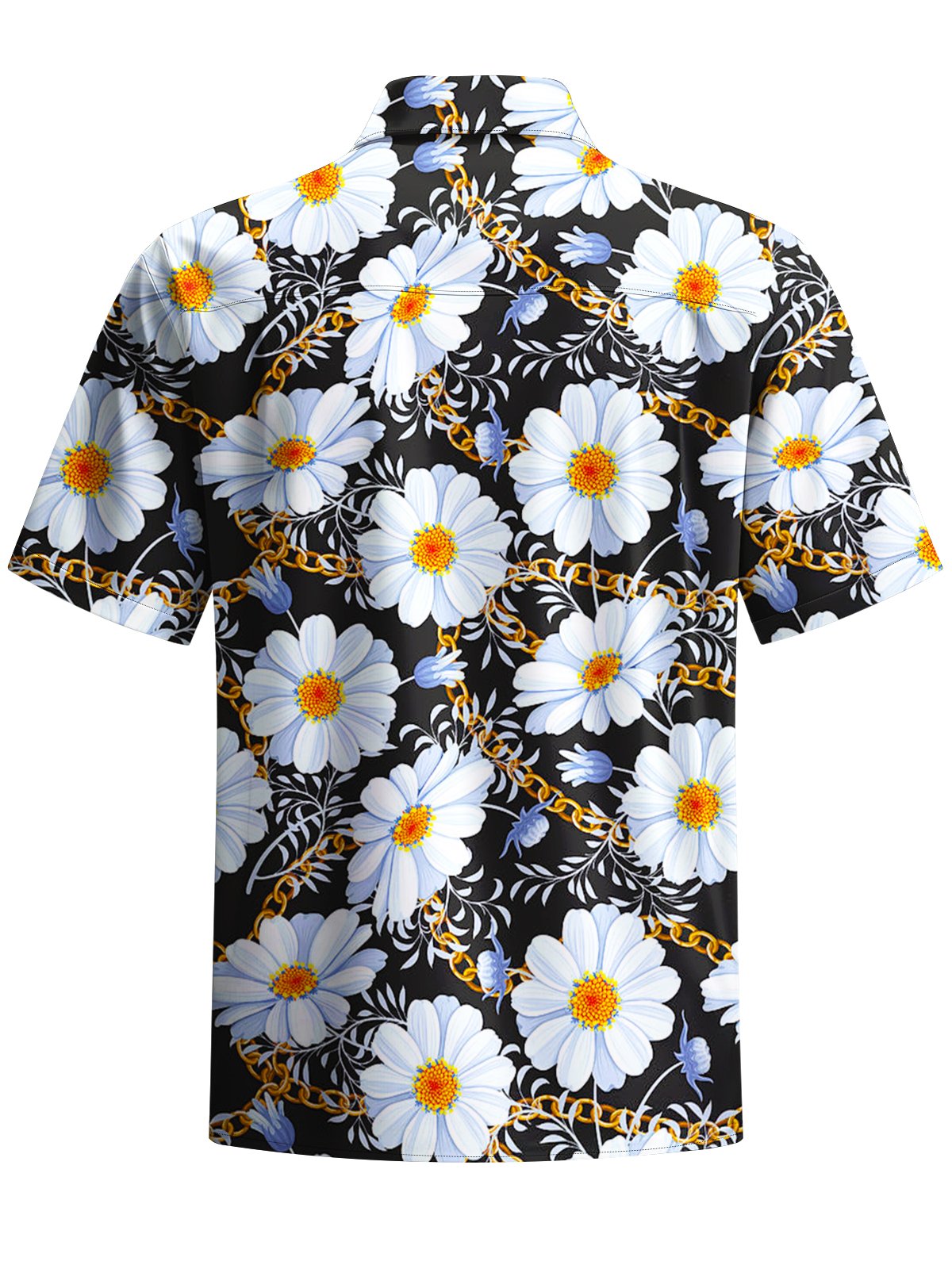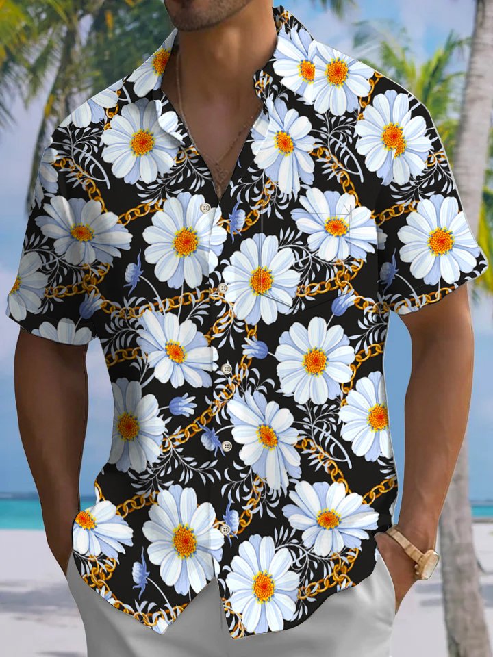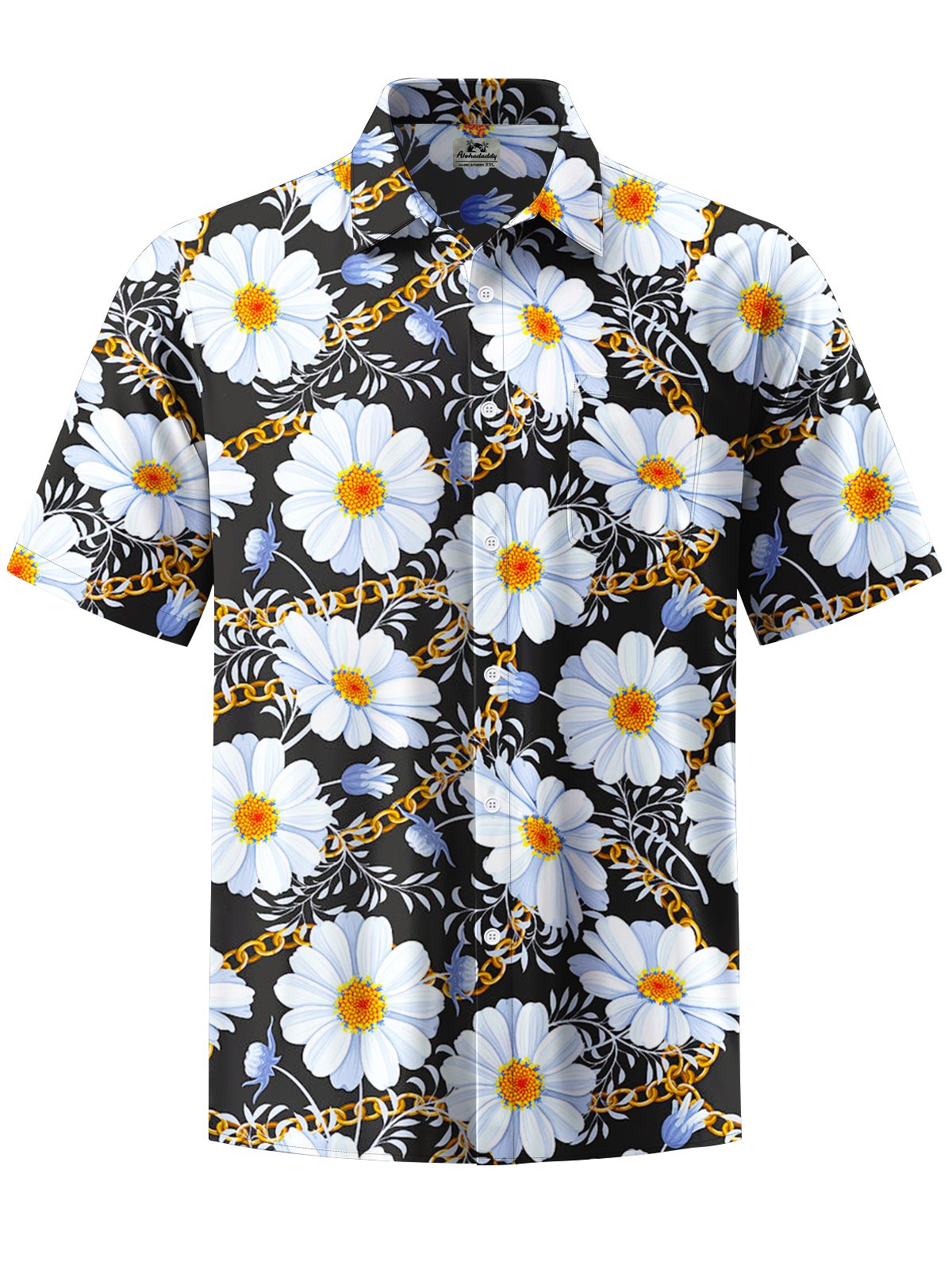 Alohadaddy® Casual Floral Baroque Chain Print Art Chest Pocket Men's Short Sleeve Shirt Big & Tall