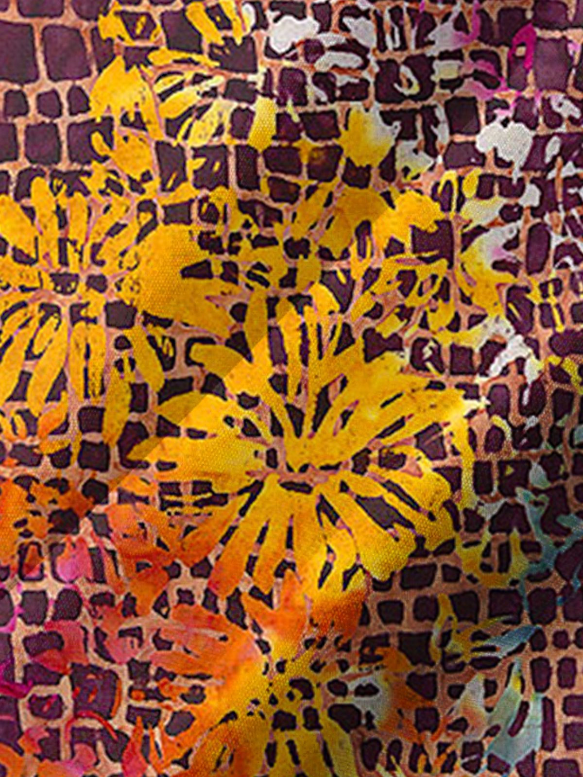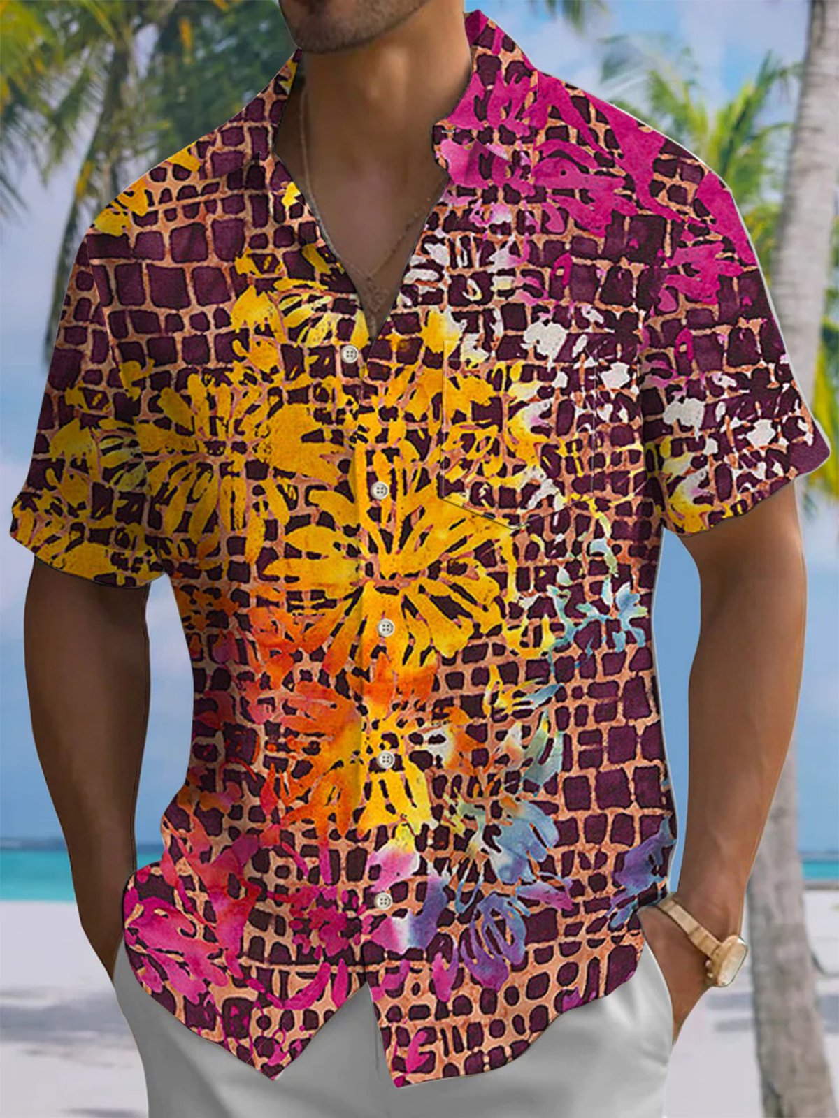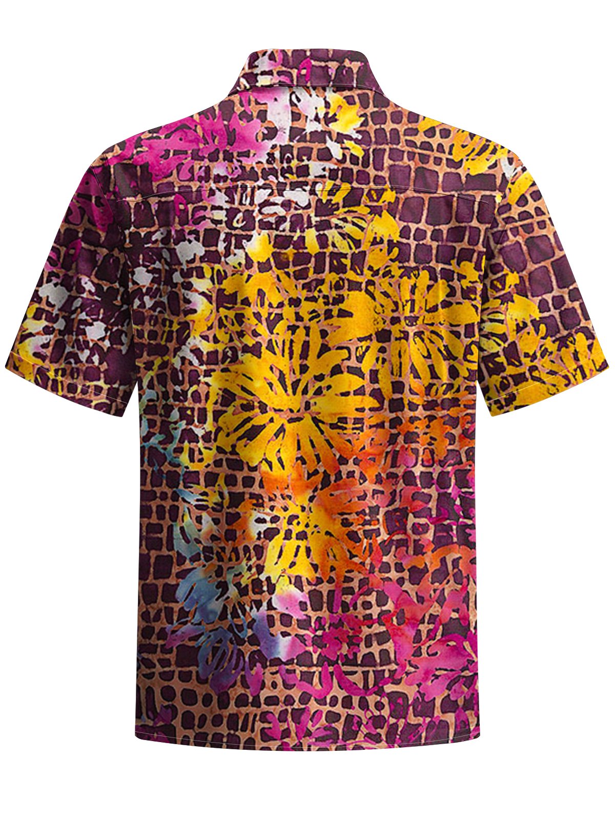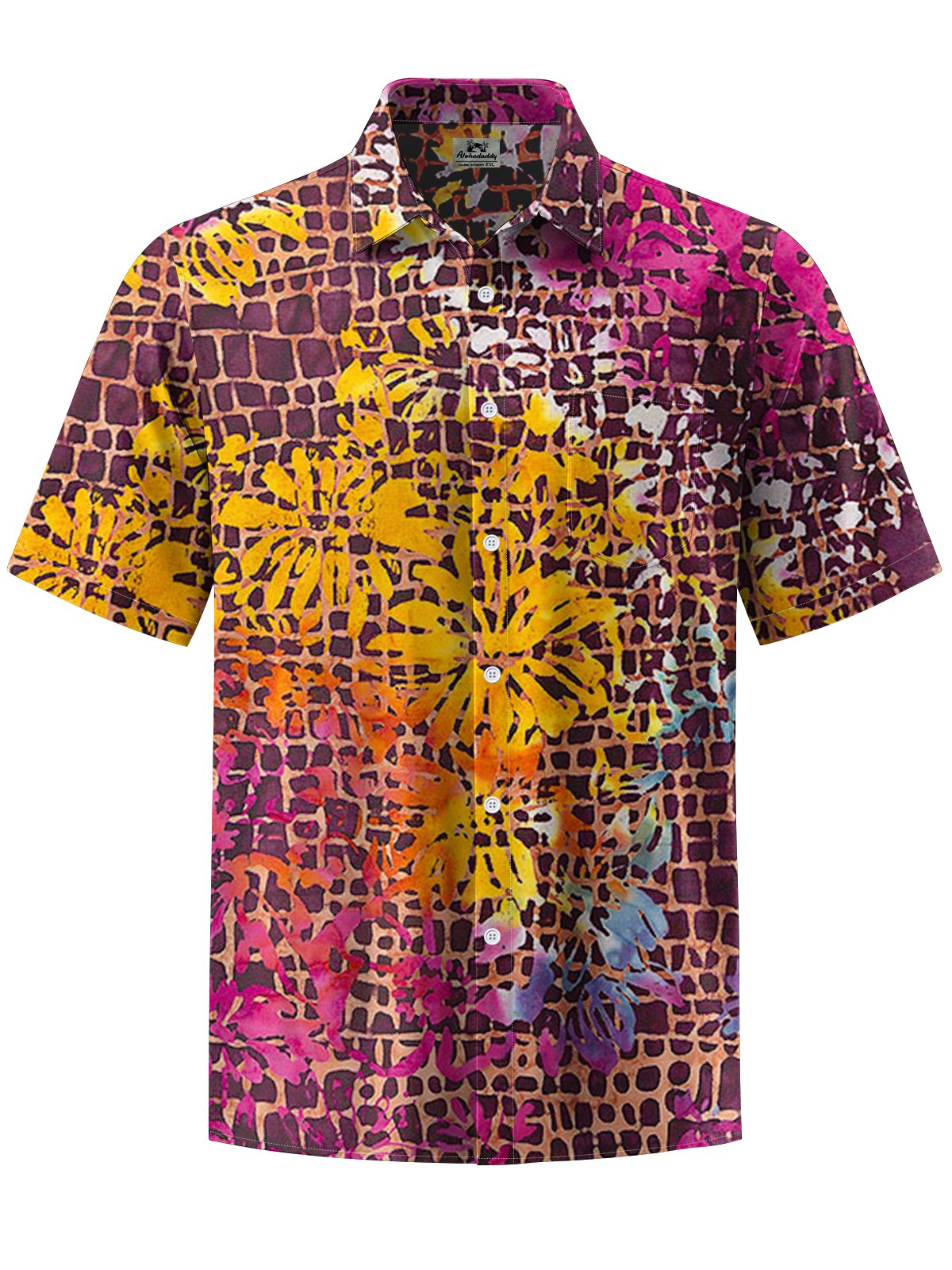Alohadaddy® Casual Floral Geometric Art Print Chest Pocket Men's Short Sleeve Shirt Big & Tall
