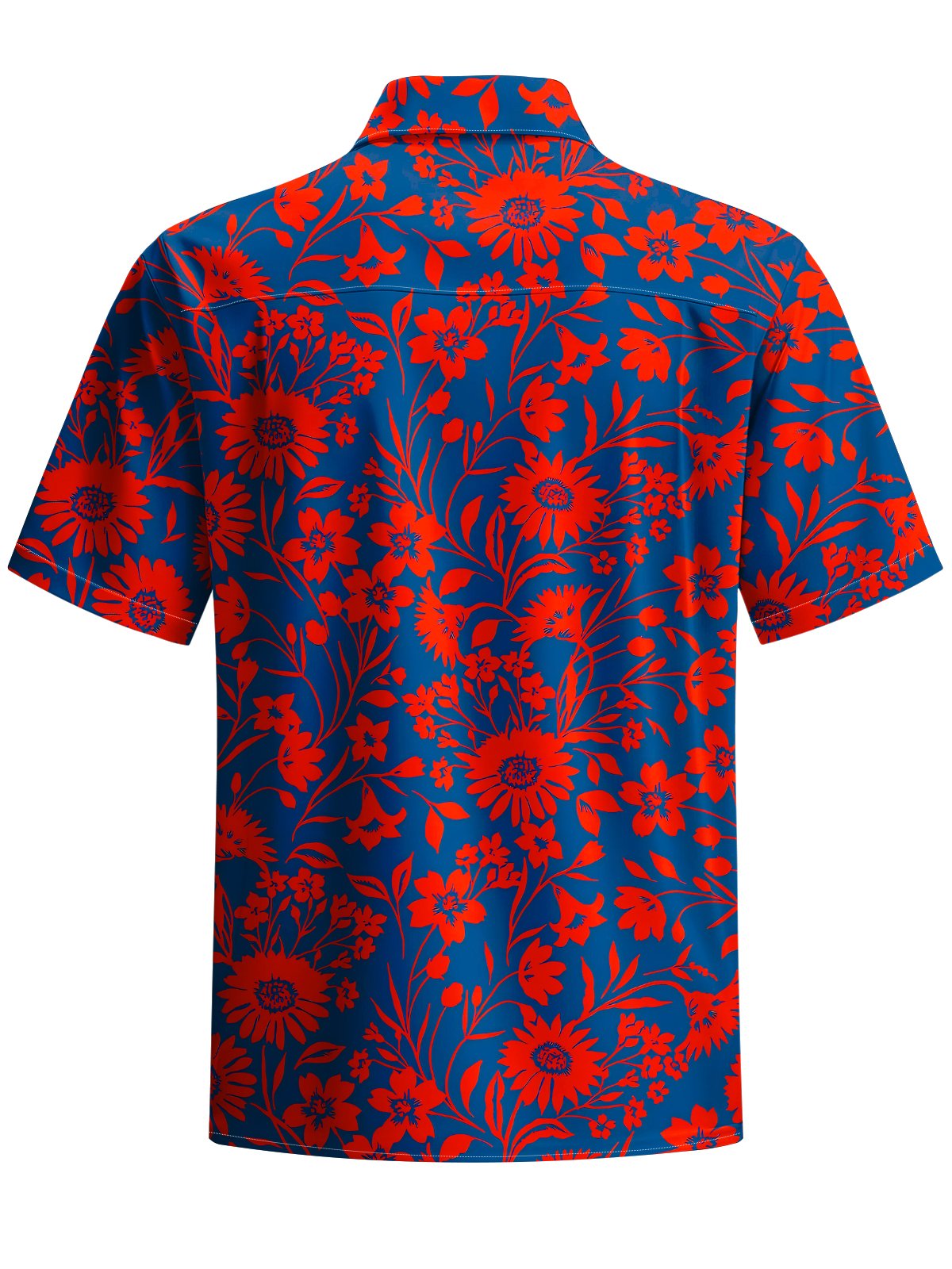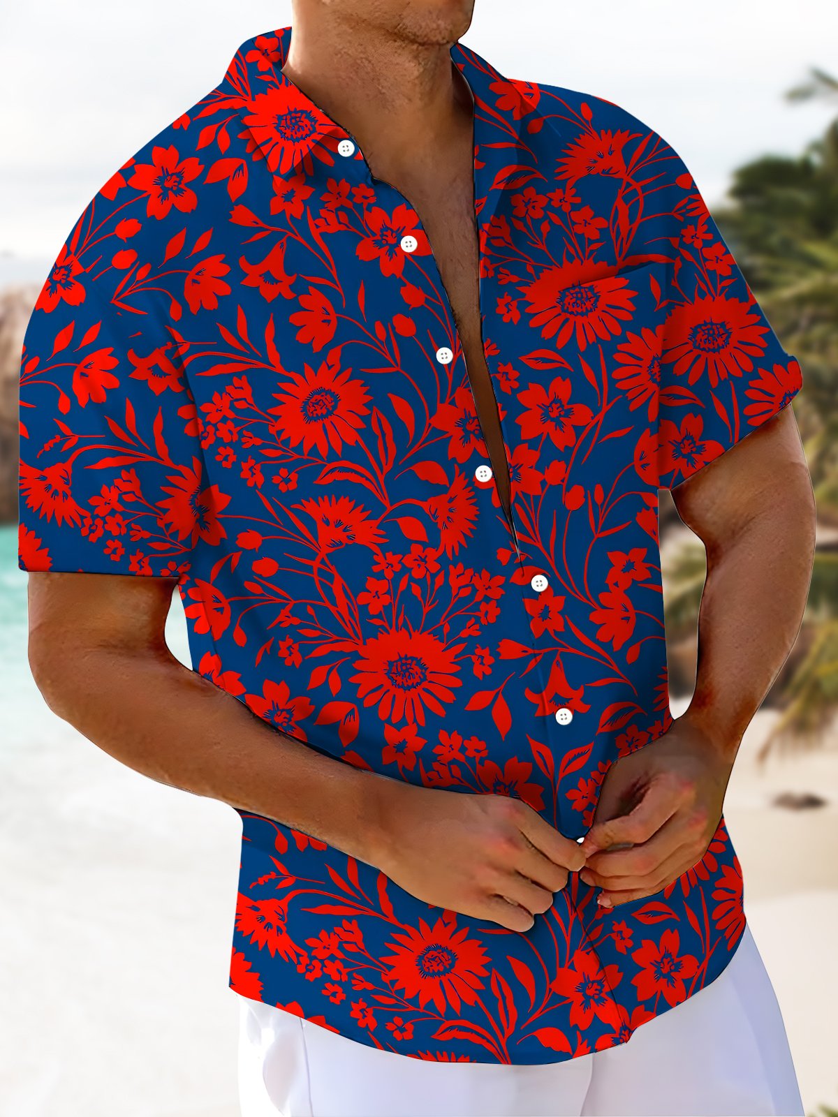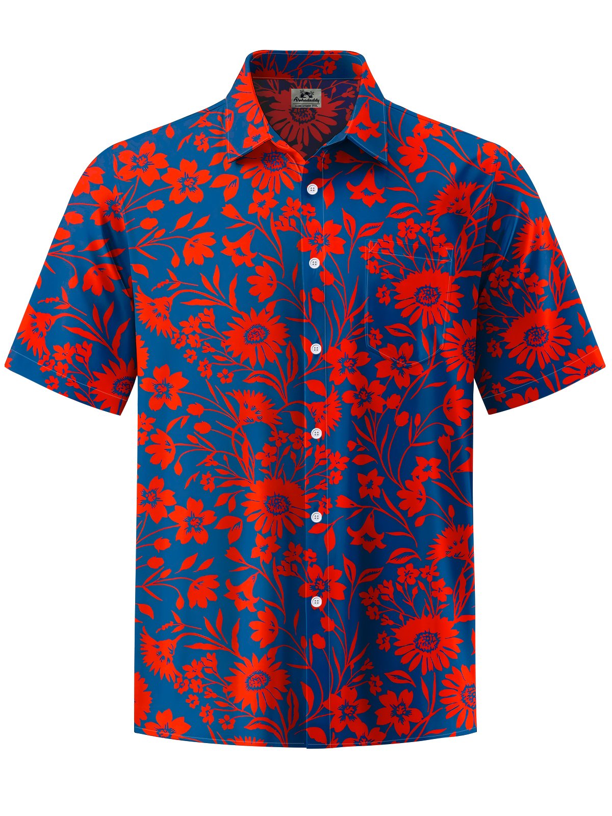 Alohadaddy® Casual Floral Print Pocket Men's Stretch Short Sleeve Shirt Big & Tall