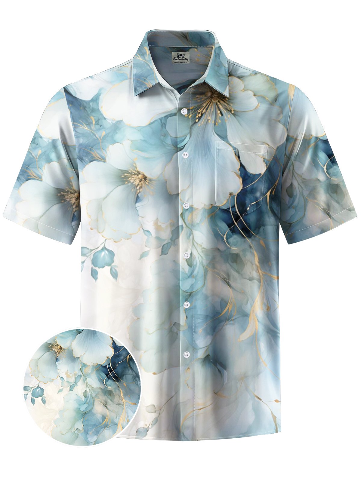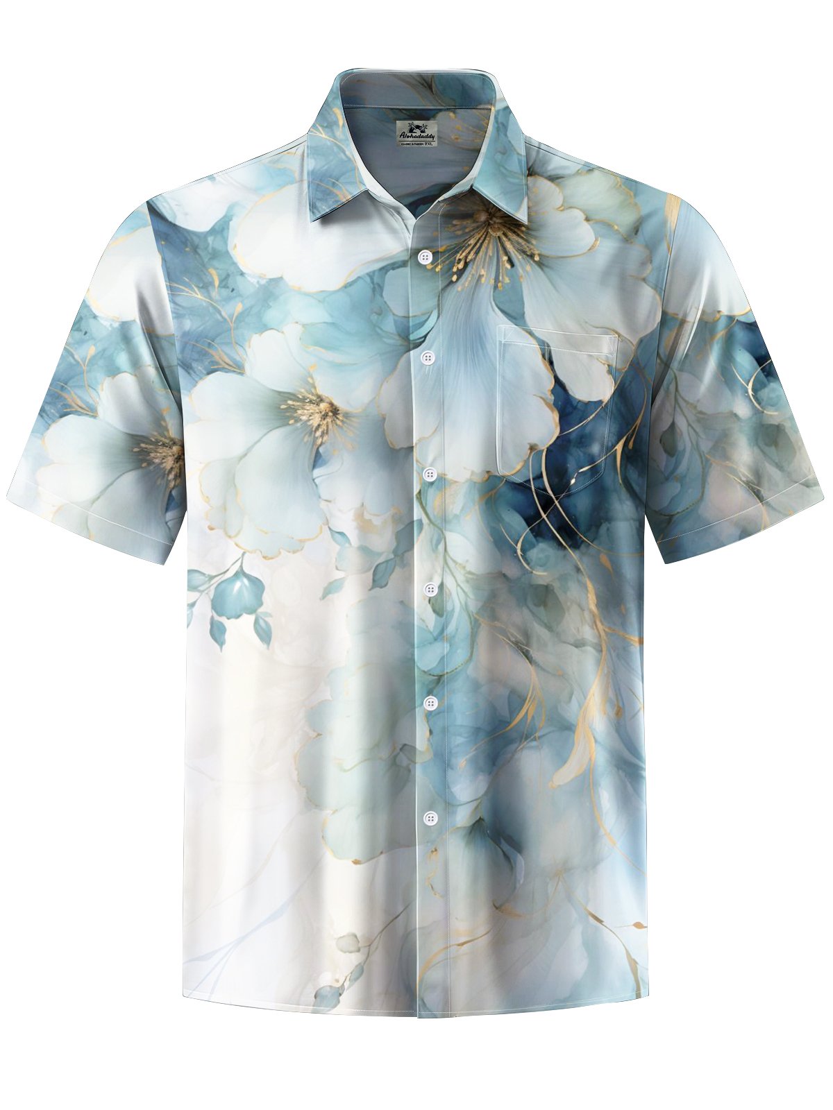 Alohadaddy® Casual Flower Art Print Moisture Wicking Men's Short Sleeve Shirt Big & Tall