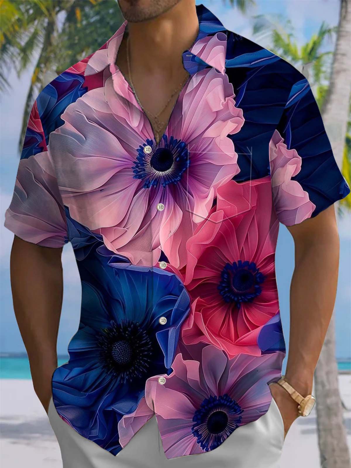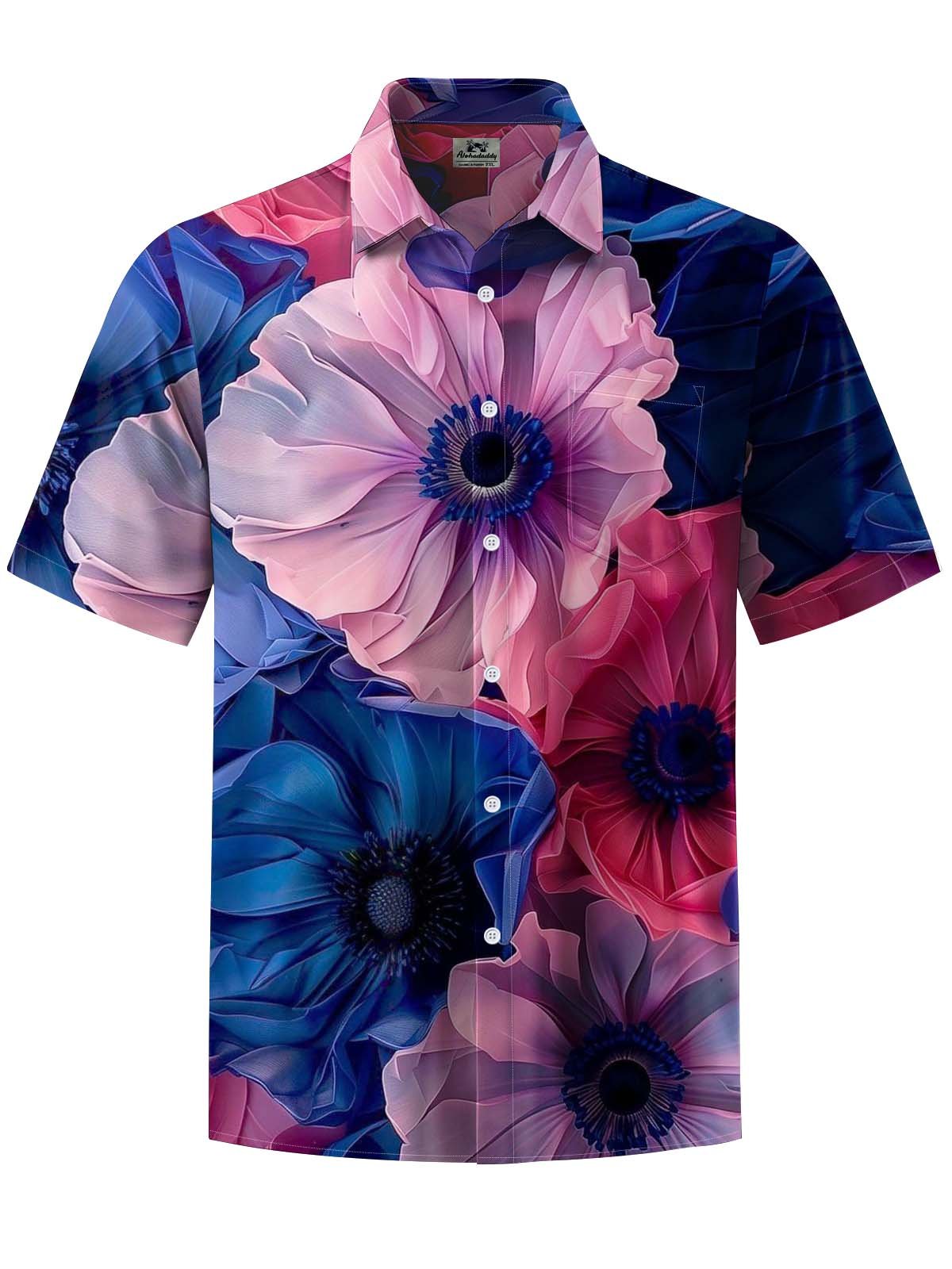 Alohadaddy® Casual Flower Print Art Pocket Stretch Men's Short Sleeve Shirt Big & Tall