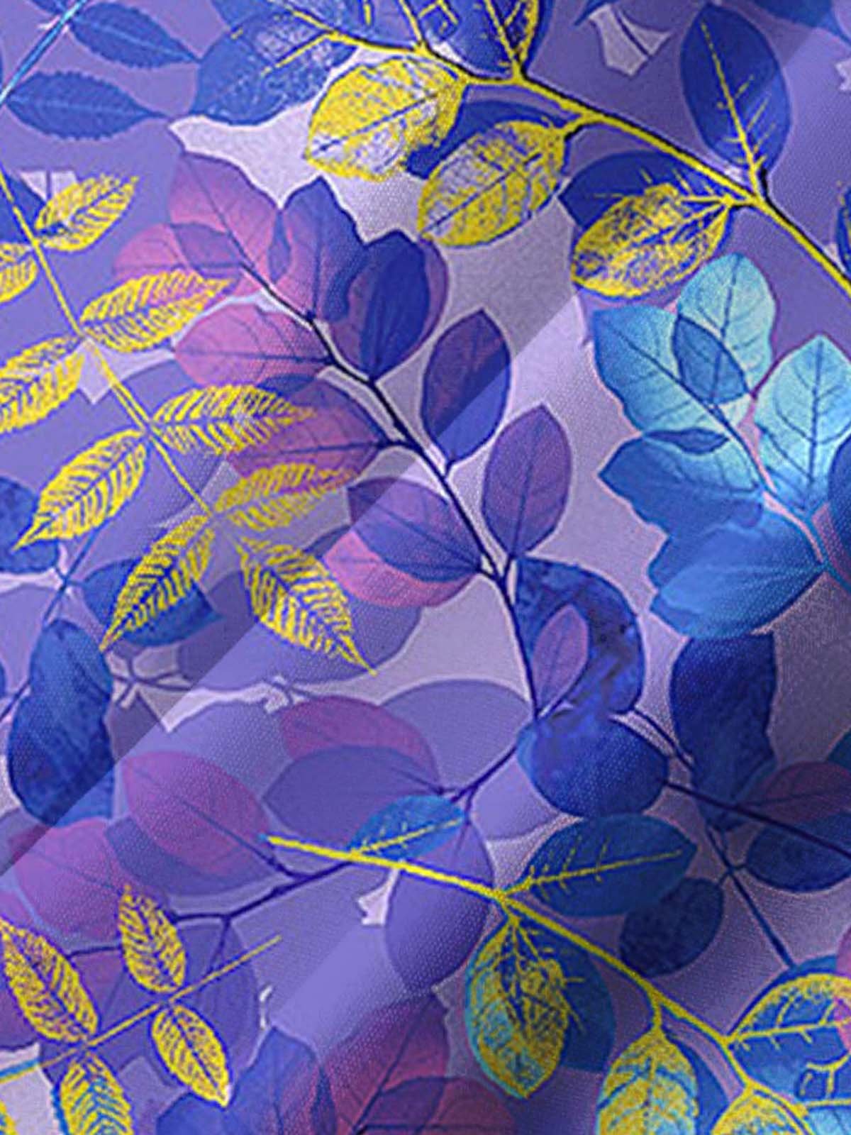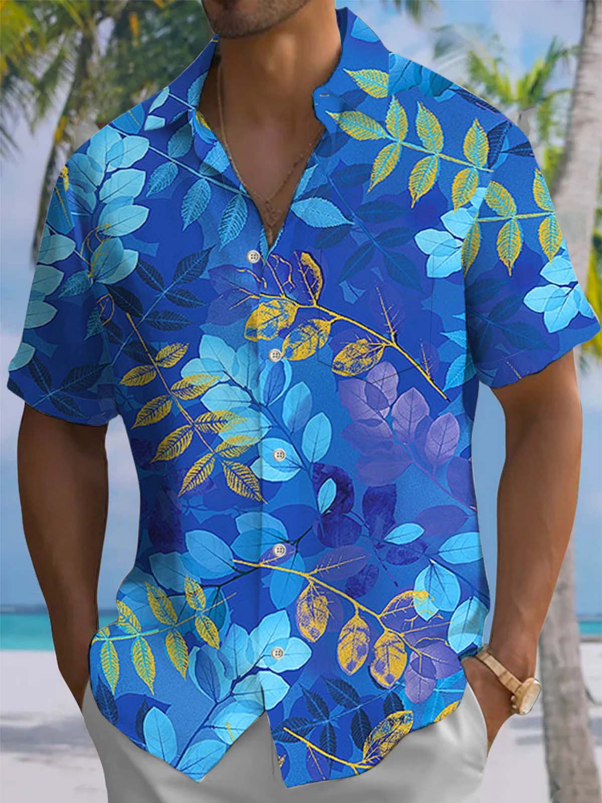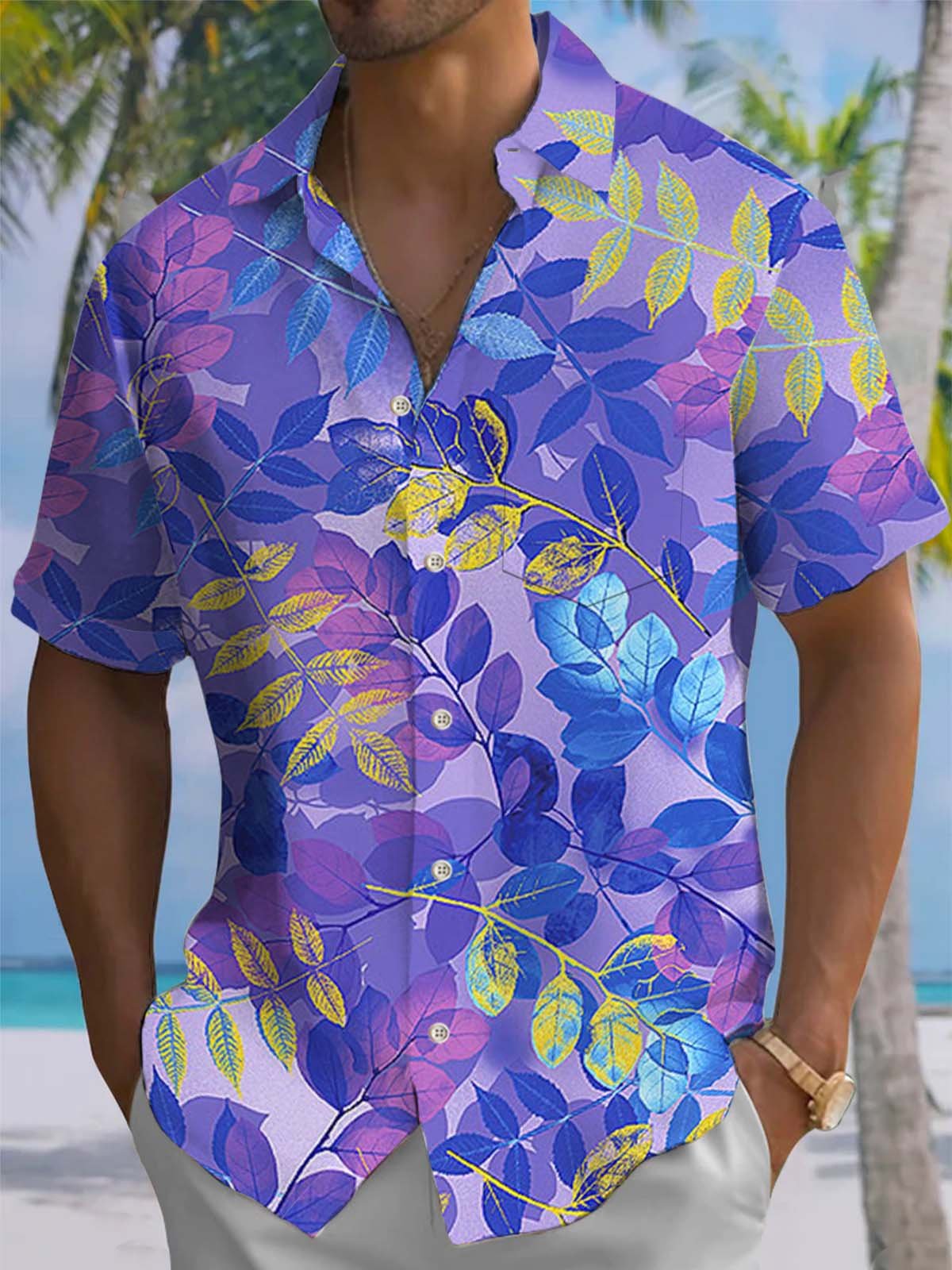 Alohadaddy® Casual Leaf Print Art Pocket Stretch Men's Short Sleeve Shirt Big & Tall