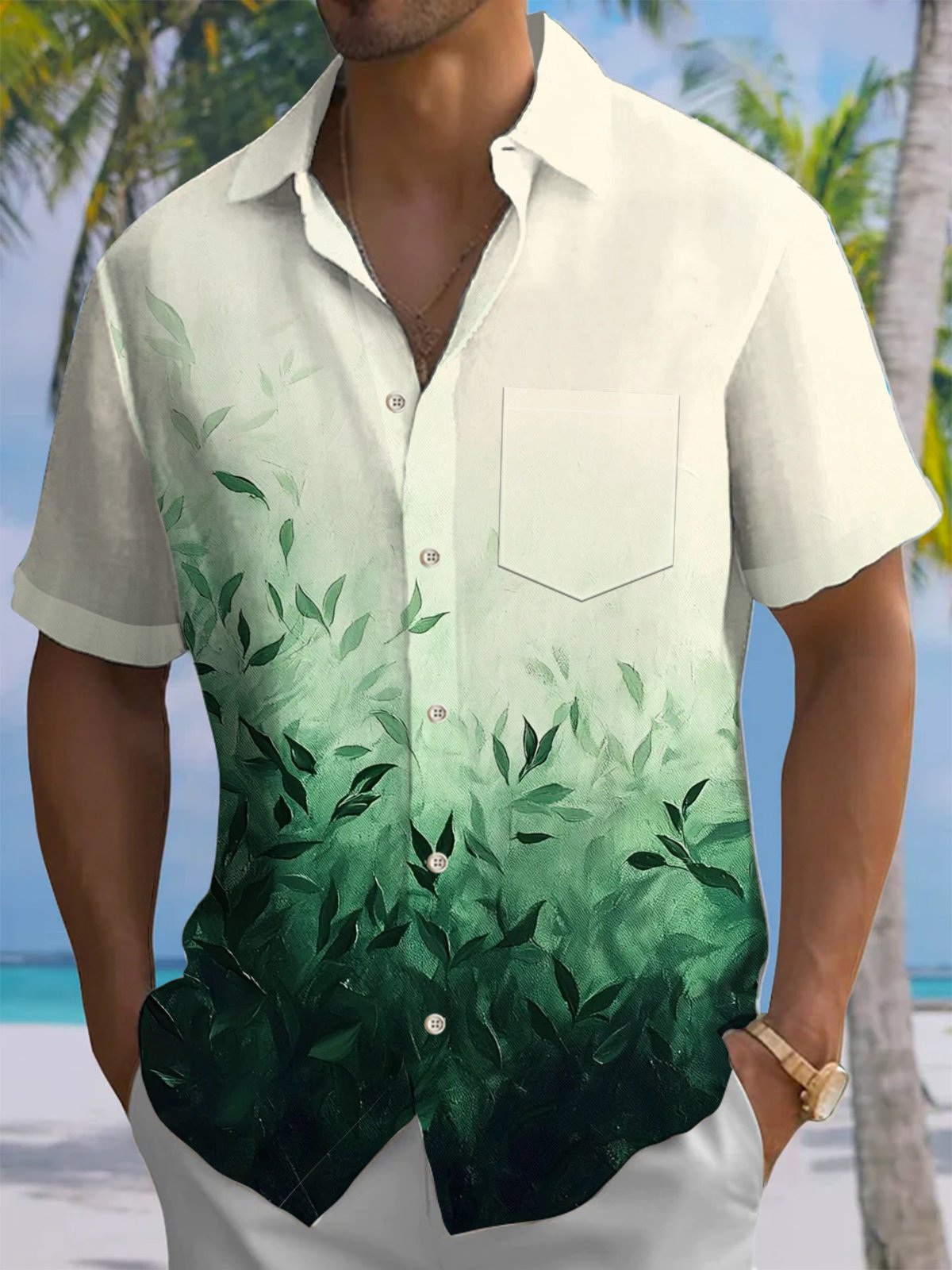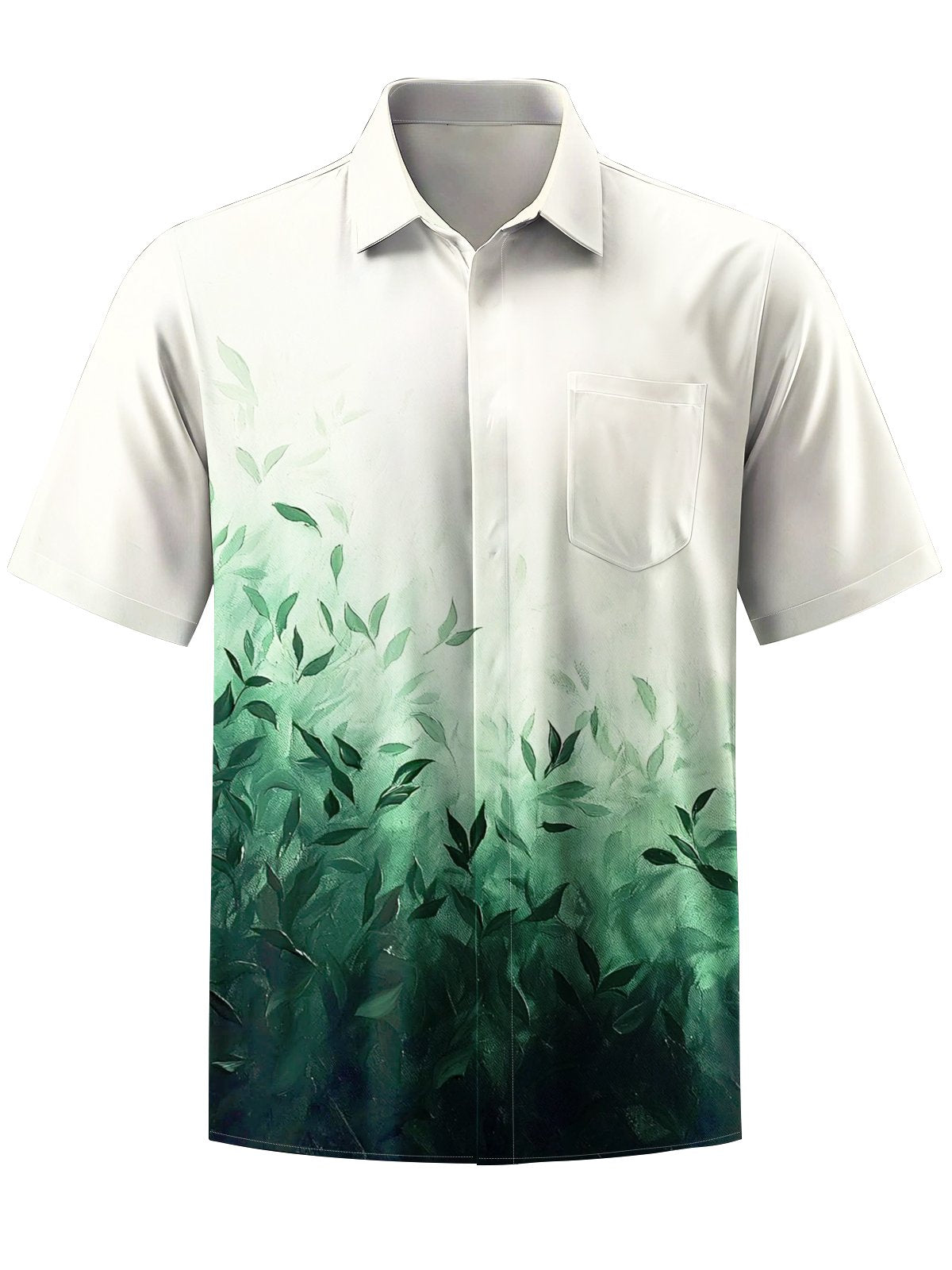 Alohadaddy® Casual Leaves Gradient Art Print Moisture Wicking Men's Short Sleeve Shirt Big & Tall