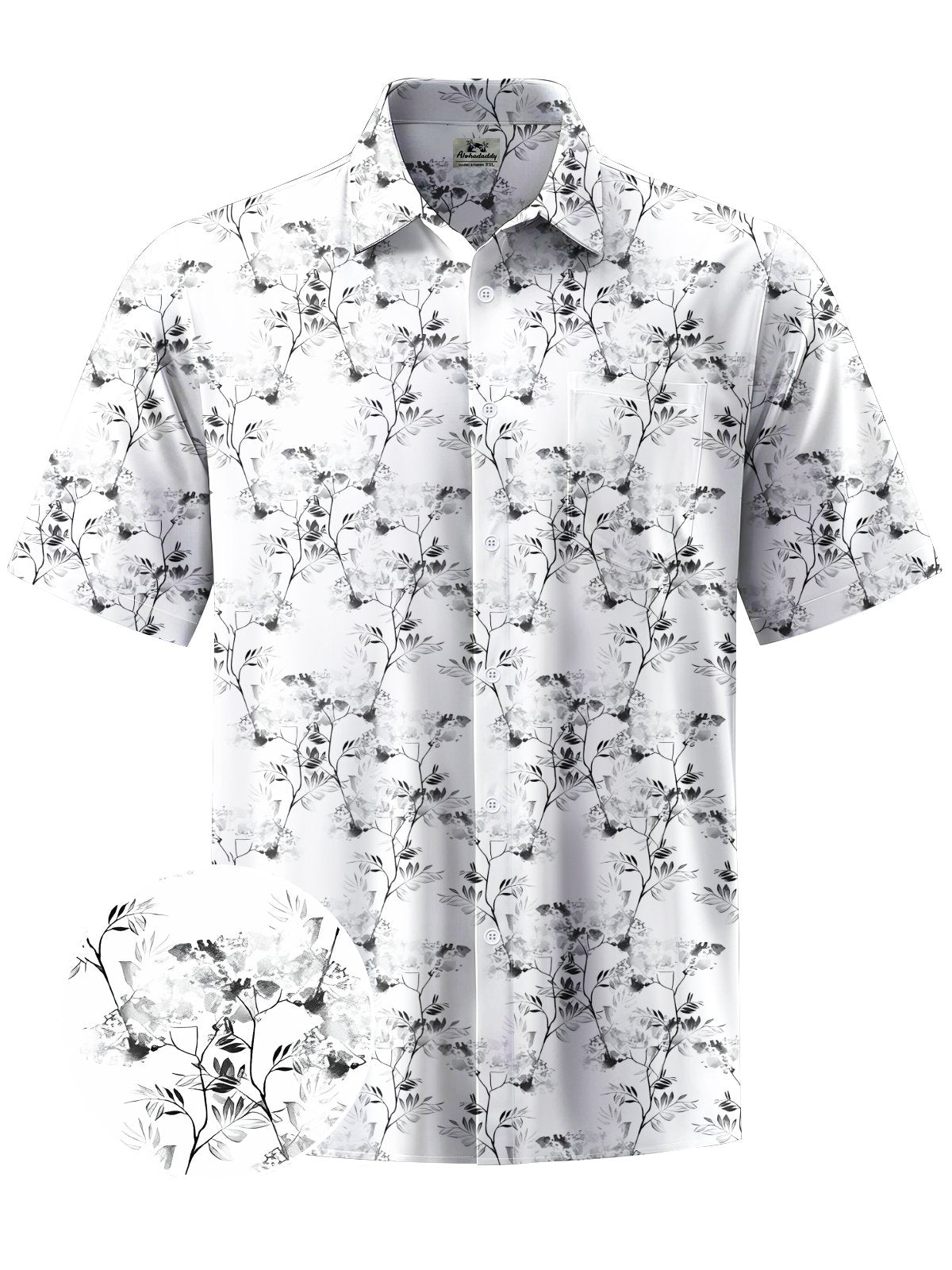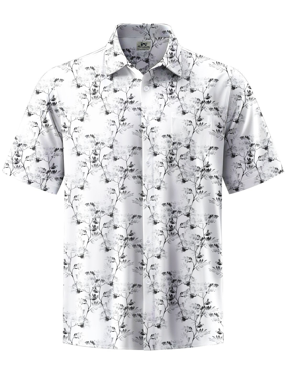 Alohadaddy® Casual Leaves Print Art Moisture Wicking Men's Short Sleeve Shirt Big & Tall