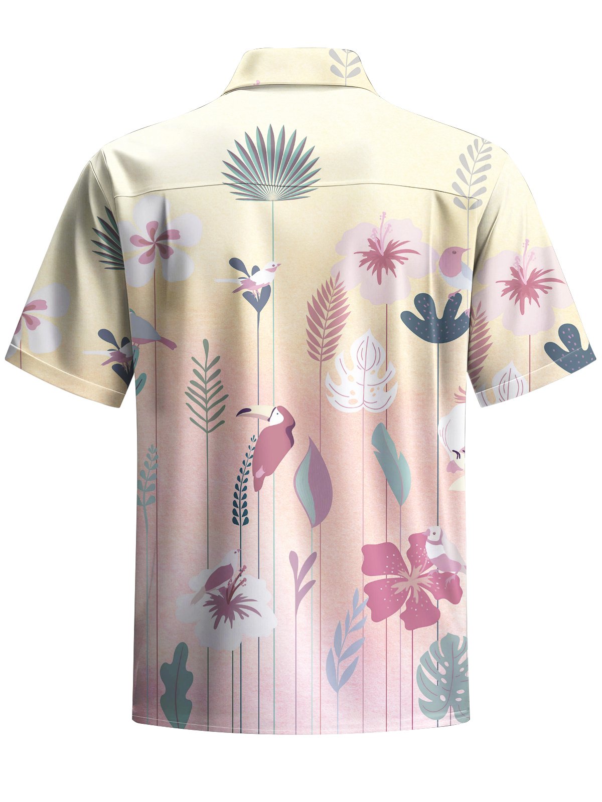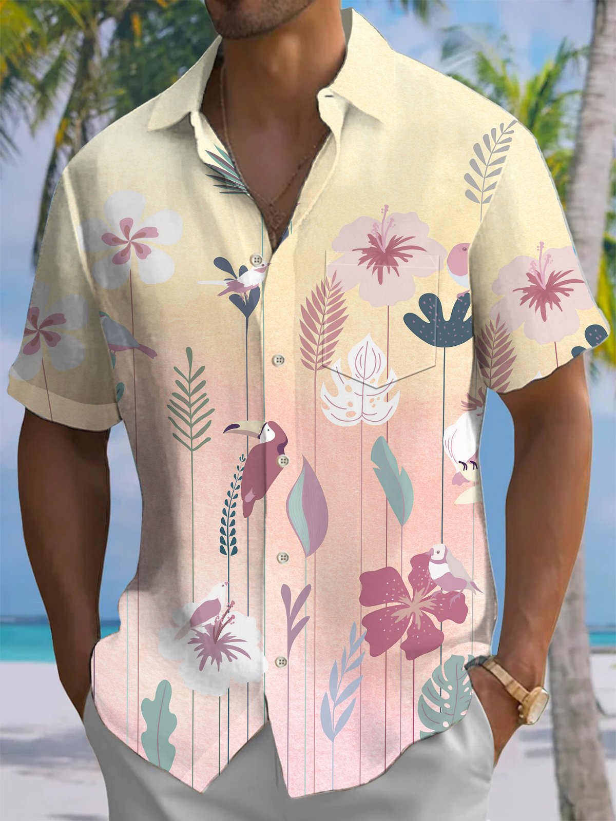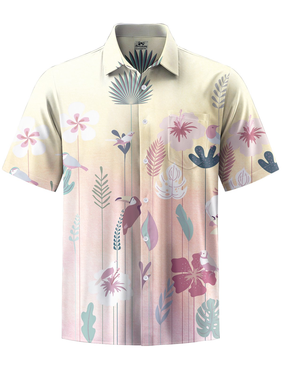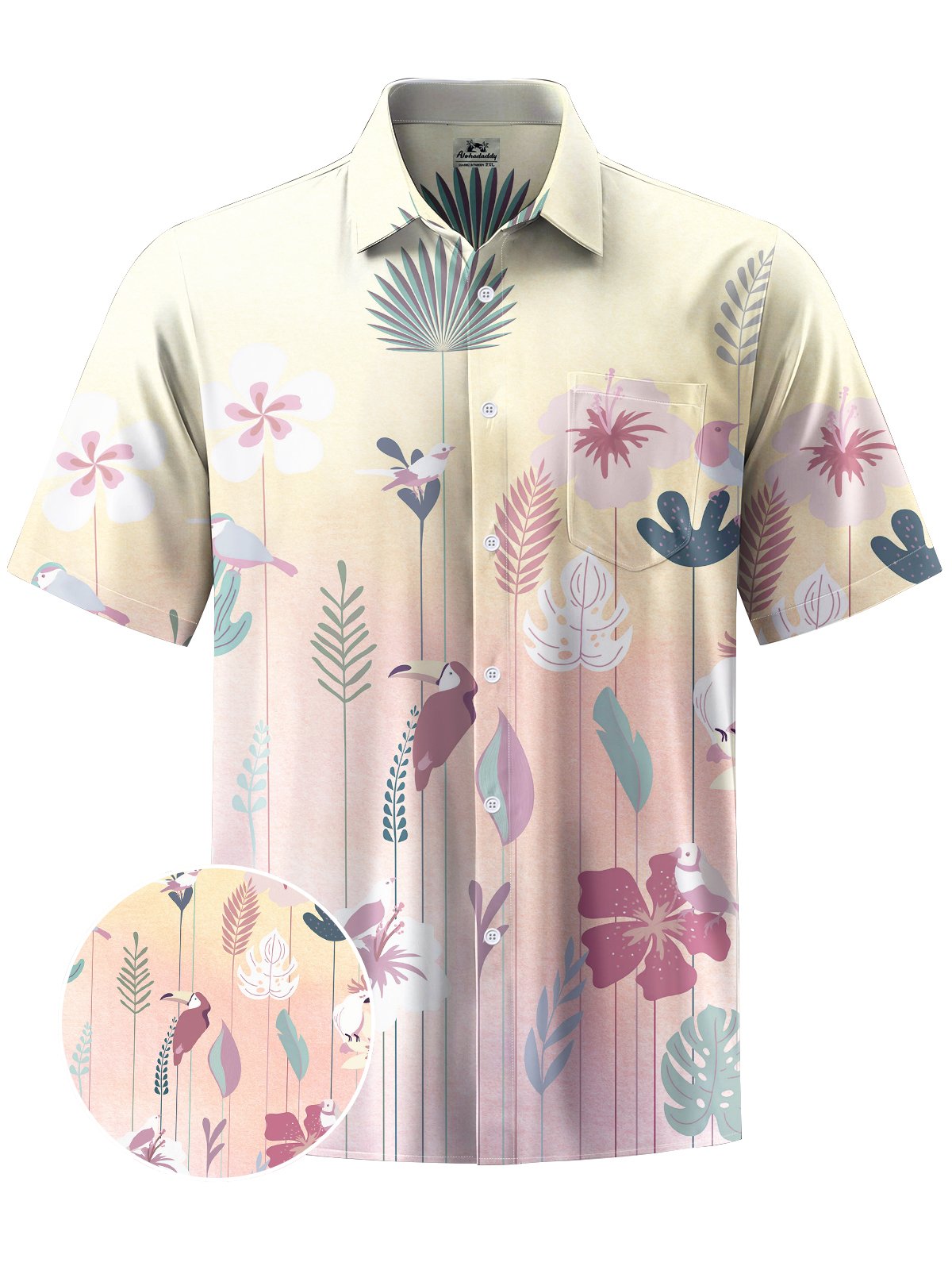 Alohadaddy® Hawaii Ombre Floral Art Print Chest Pocket Mens Short Sleeve Shirt Big & Tall