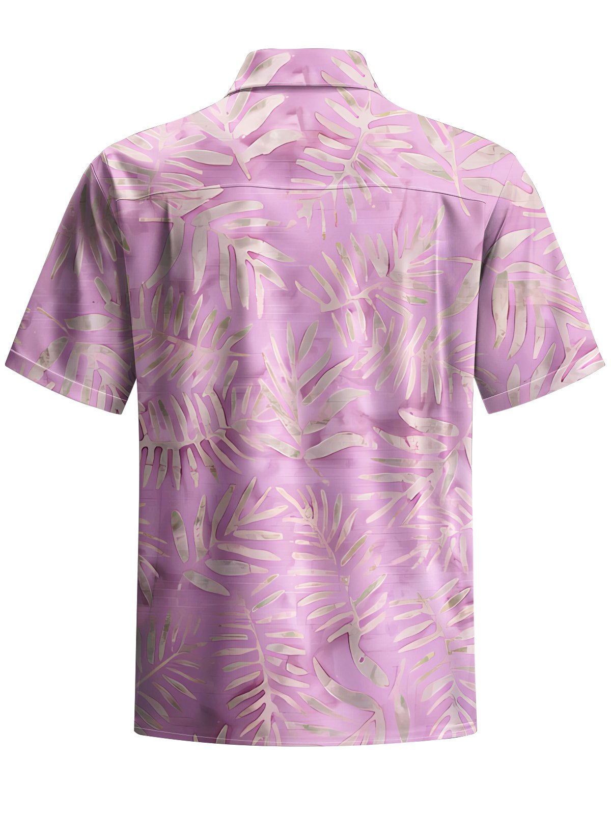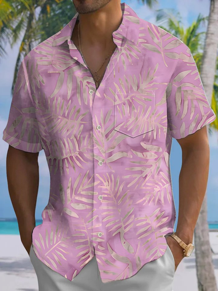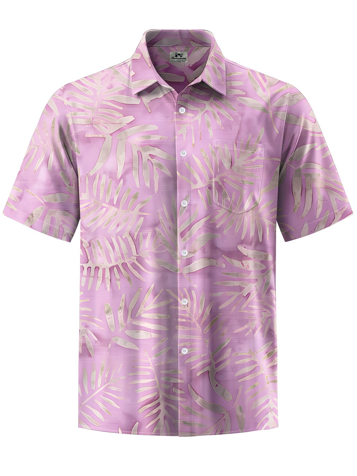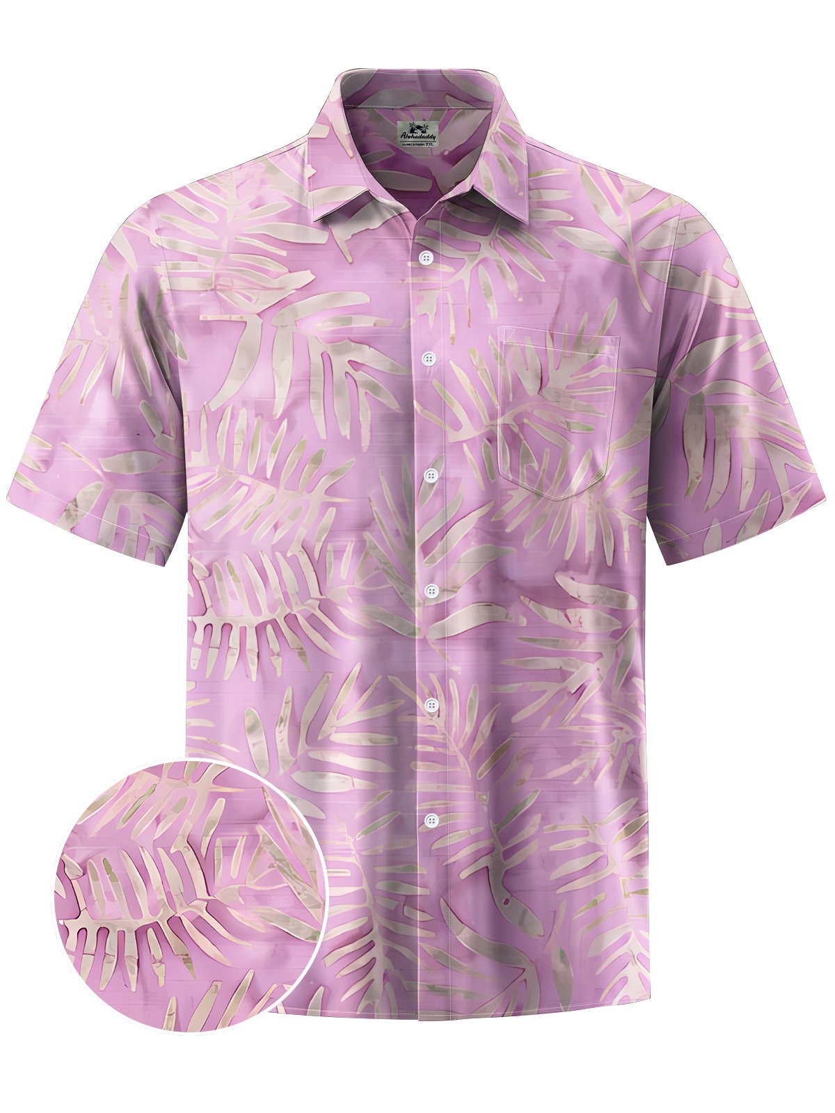 Alohadaddy® Hawaii Palm Leaf Art Print Chest Pocket Men's Short Sleeve Shirt Big & Tall