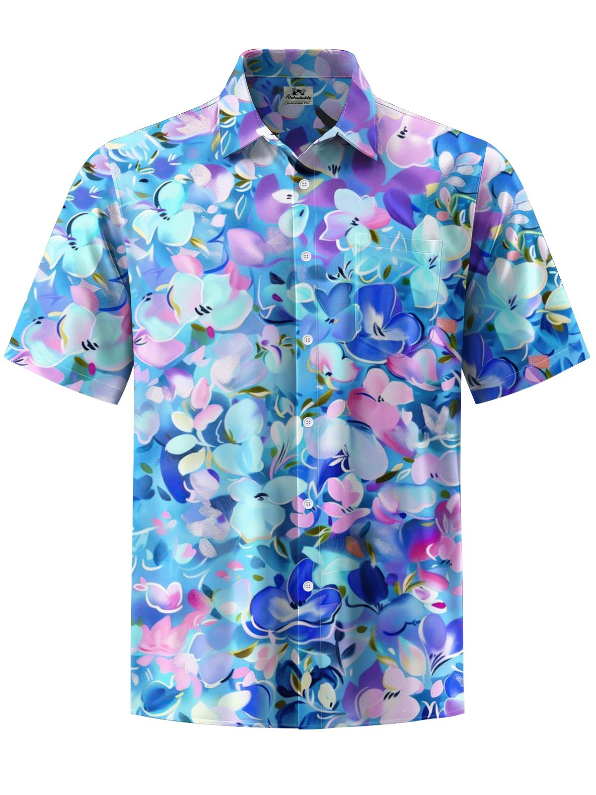 Alohadaddy® Hawaiian Floral Art Print Chest Pocket Men's Short Sleeve Shirt Big & Tall