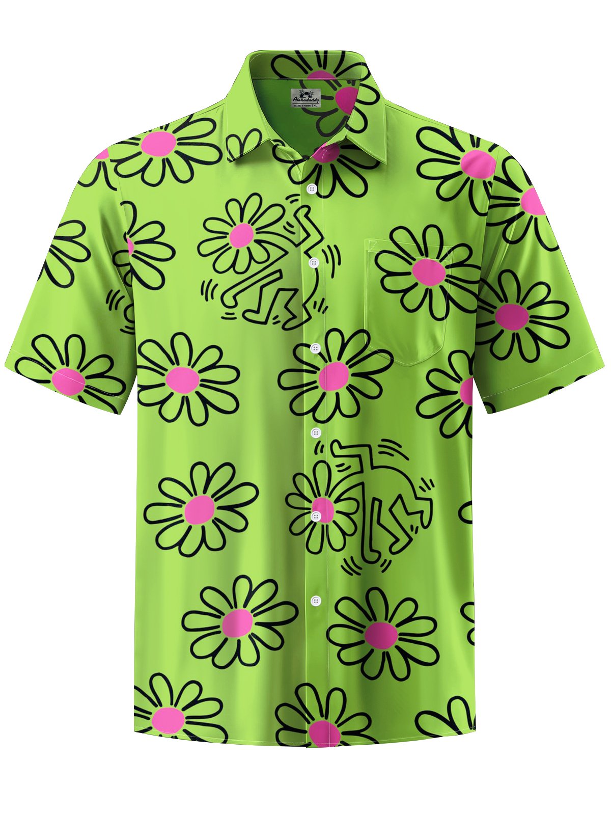 Alohadaddy® Hawaiian Floral Art Print Chest Pocket Mens Short Sleeve Shirts Big & Tall