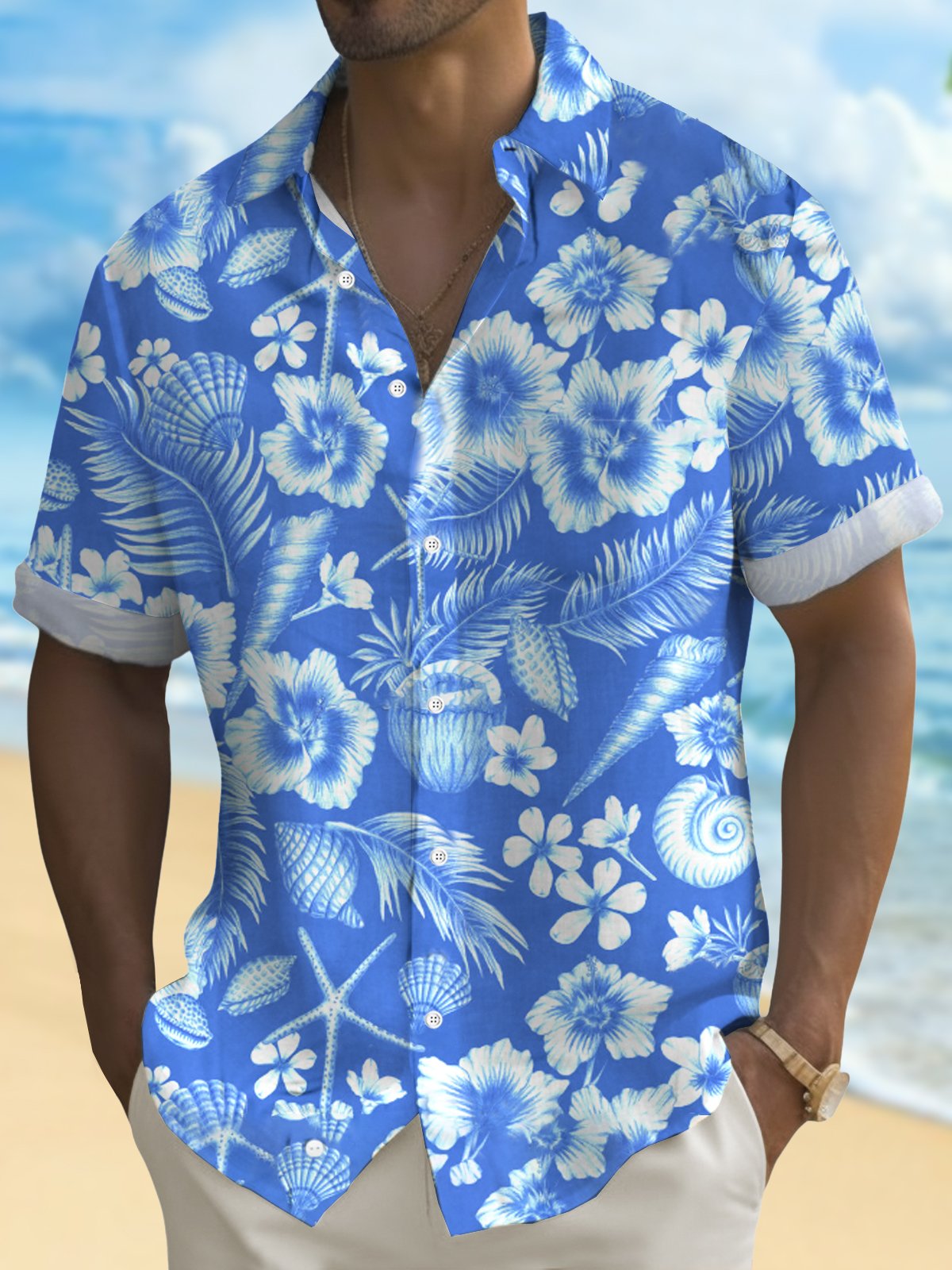 Alohadaddy® Hawaiian Floral Print Men's Button Pocket Short Sleeve Shirt Big & Tall