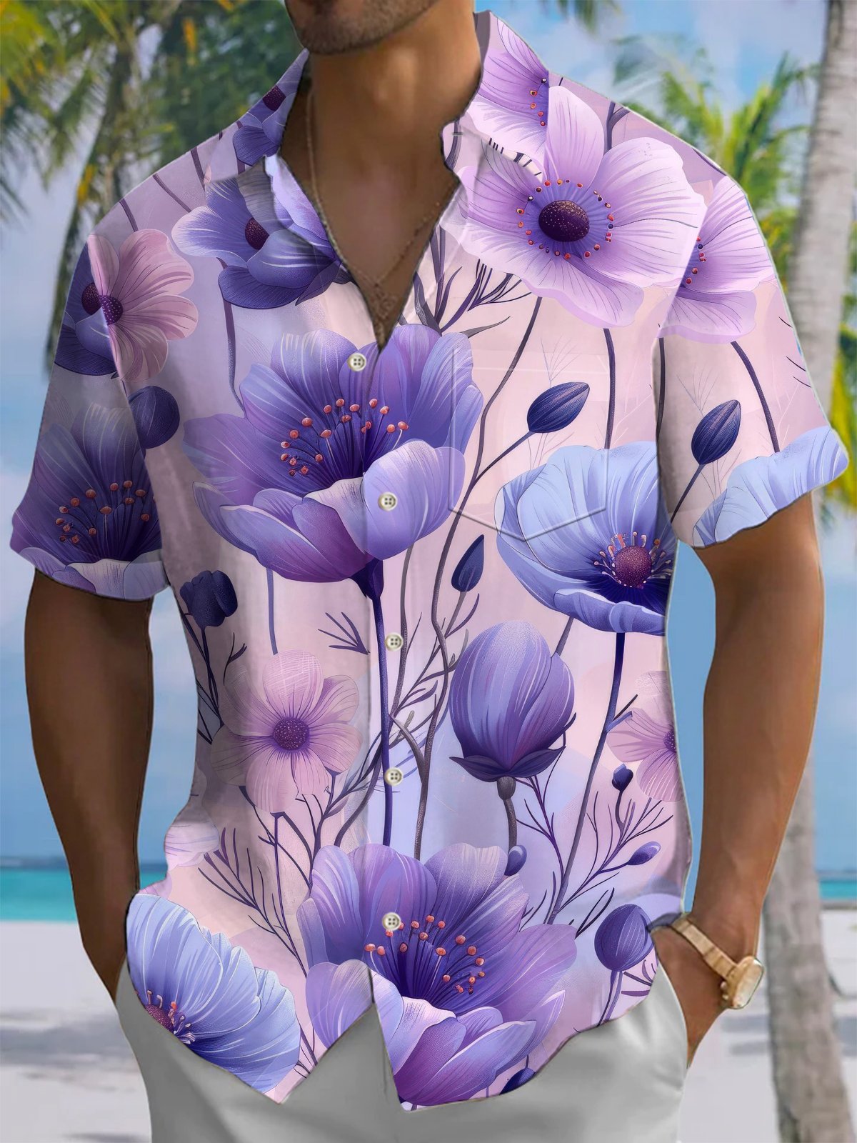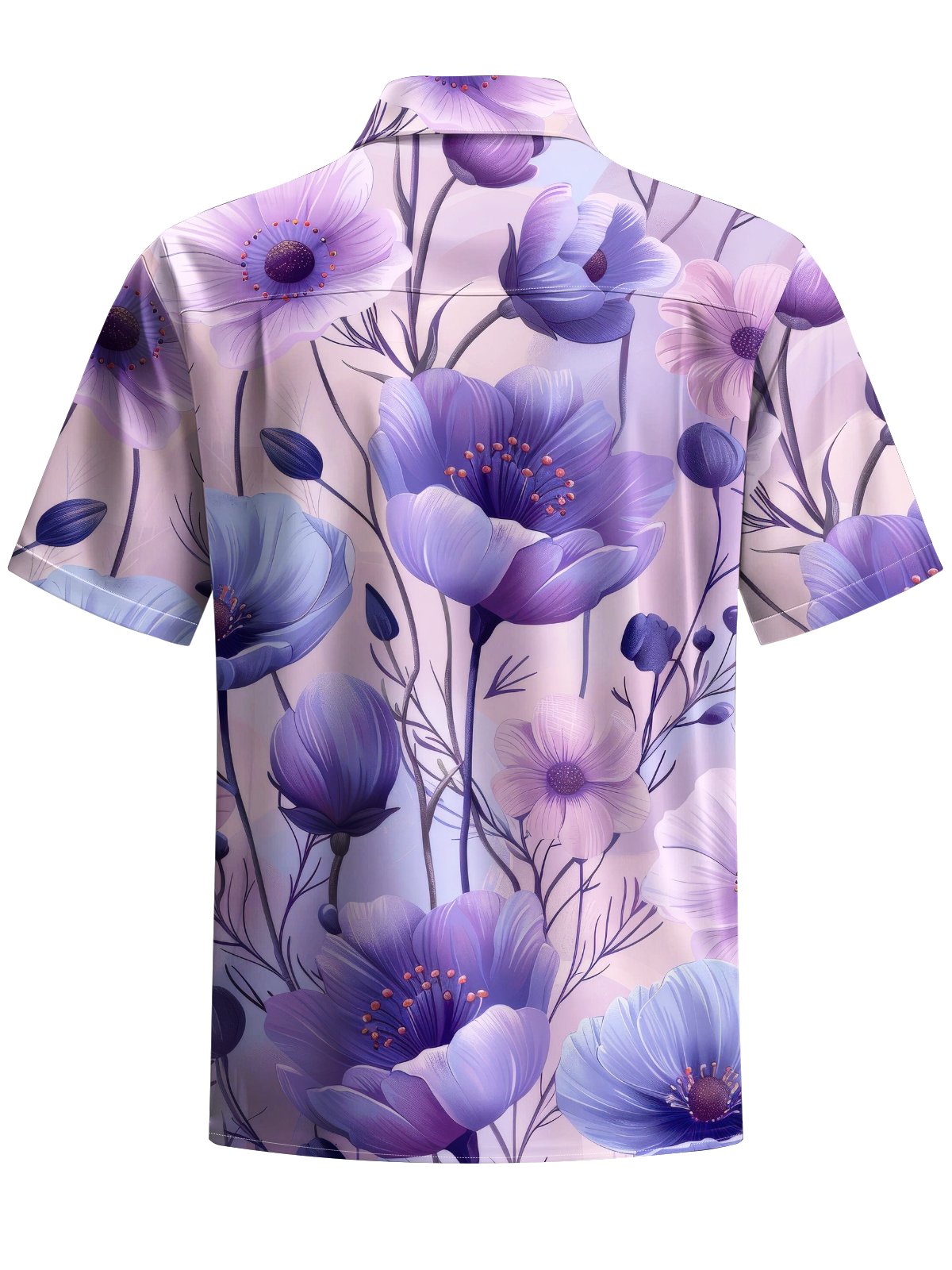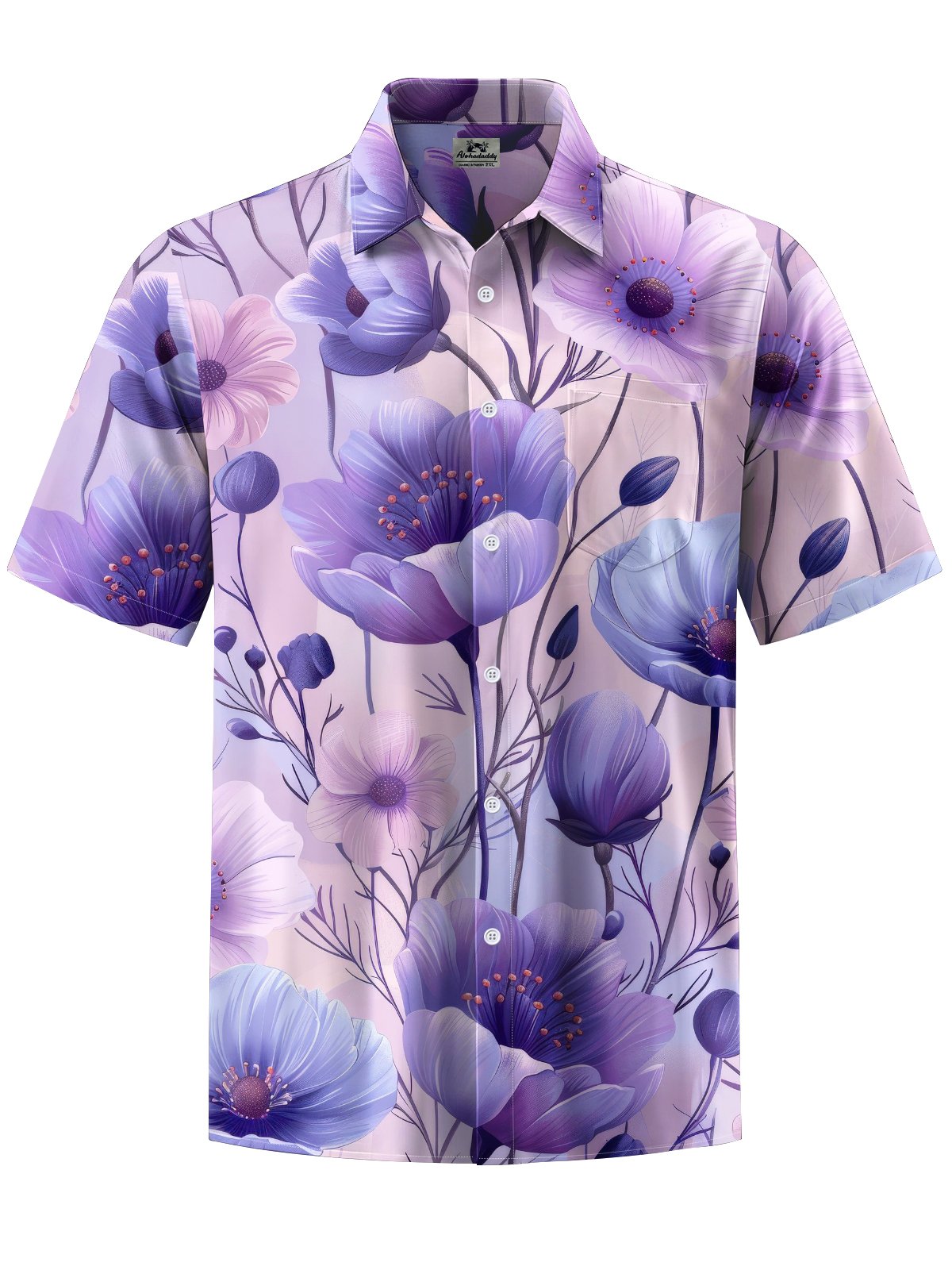 Alohadaddy® Hawaiian Flower Art Print Chest Pocket Men's Short Sleeve Stretch Shirt Big & Tall