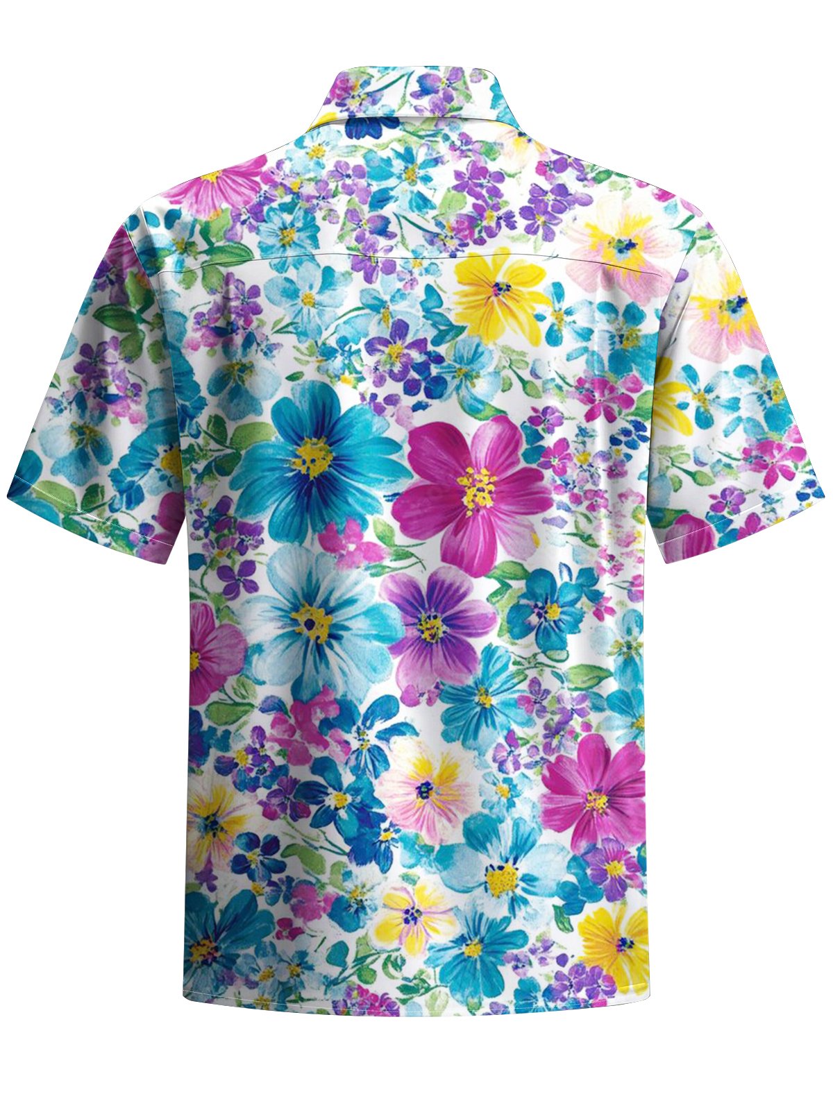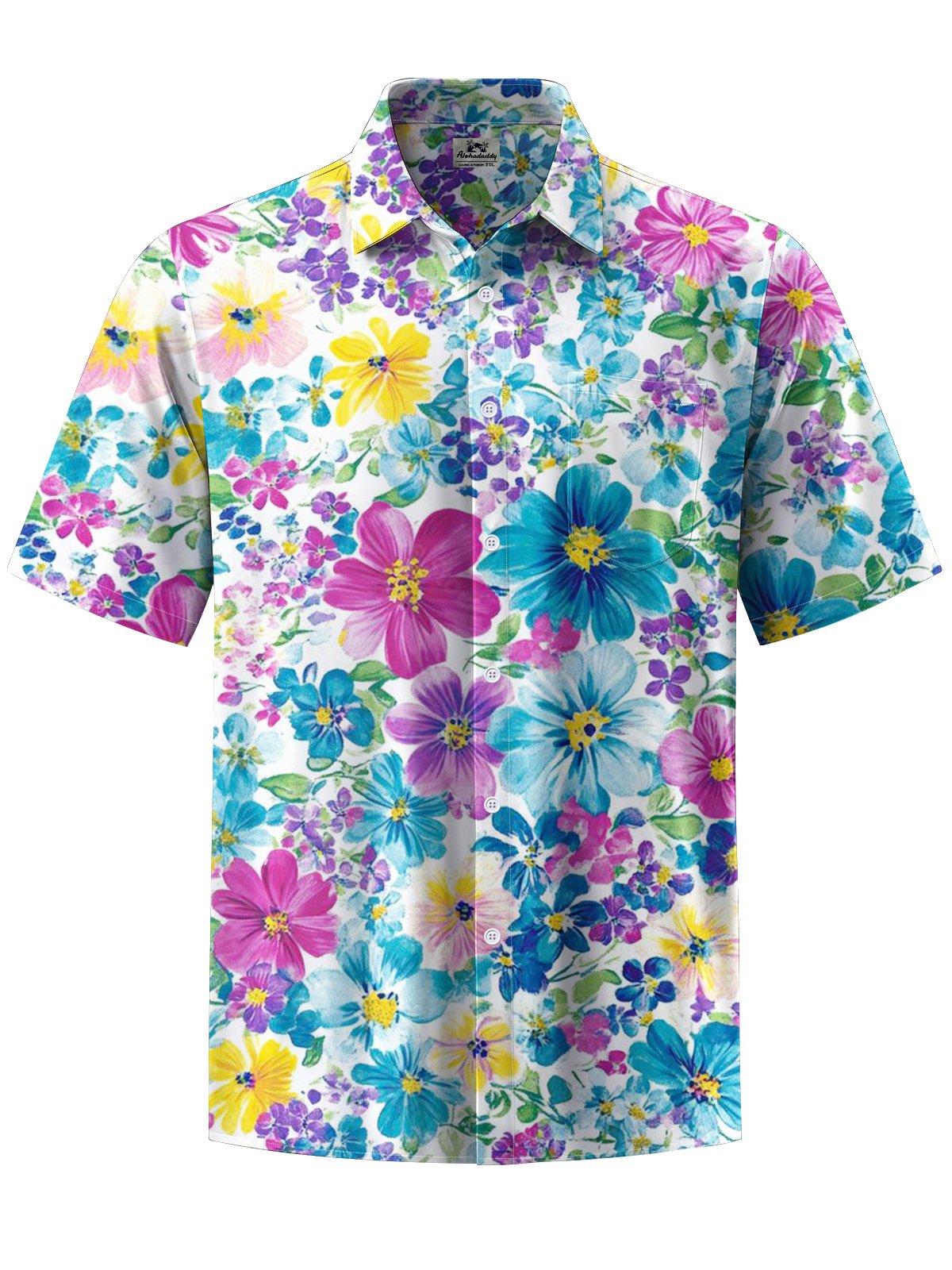Alohadaddy® Hawaiian Flower Art Print Chest Pocket Men's Stretch Short Sleeve Shirt Shirt Big & Tall