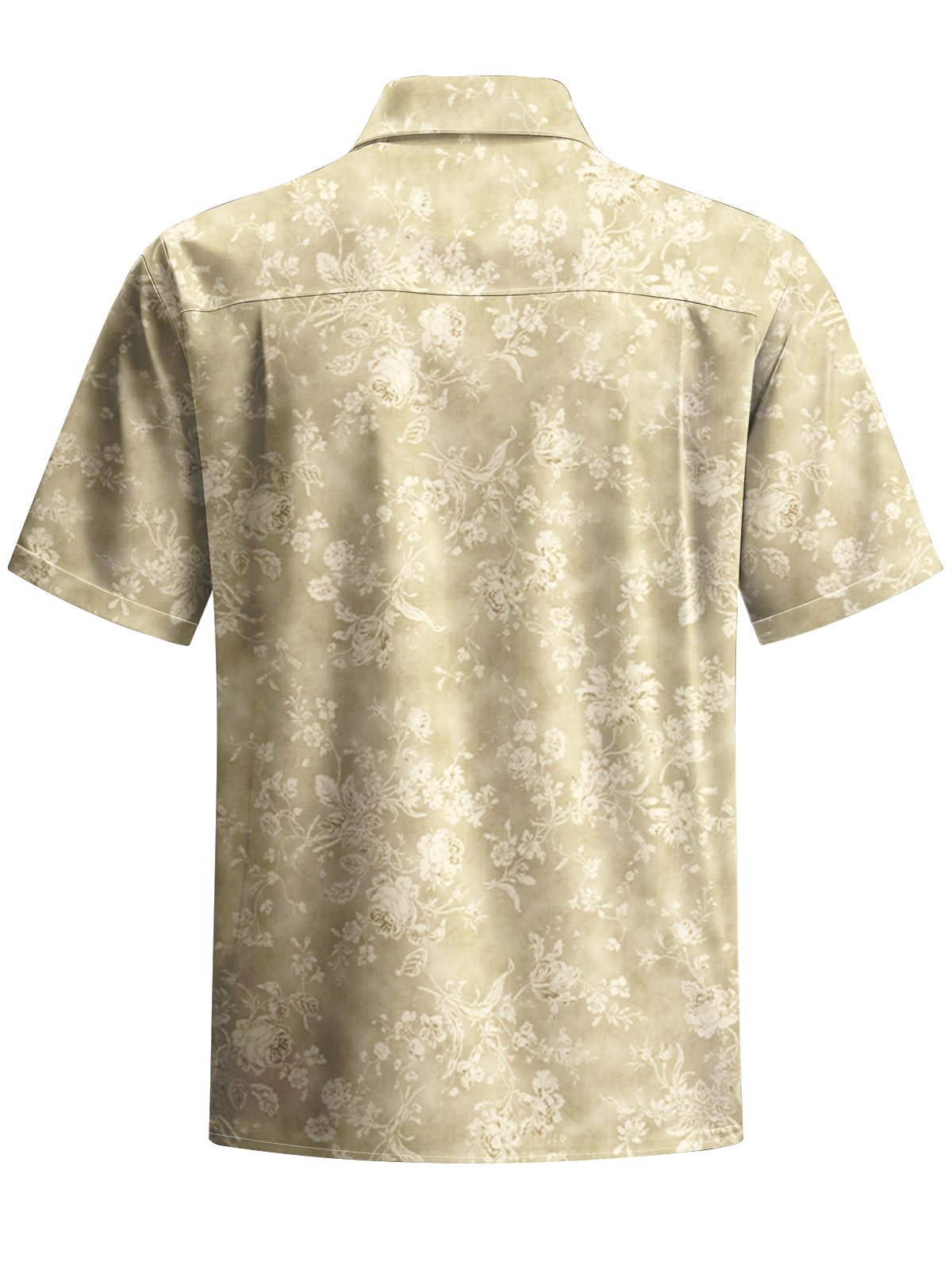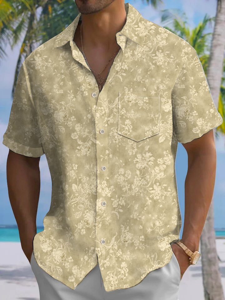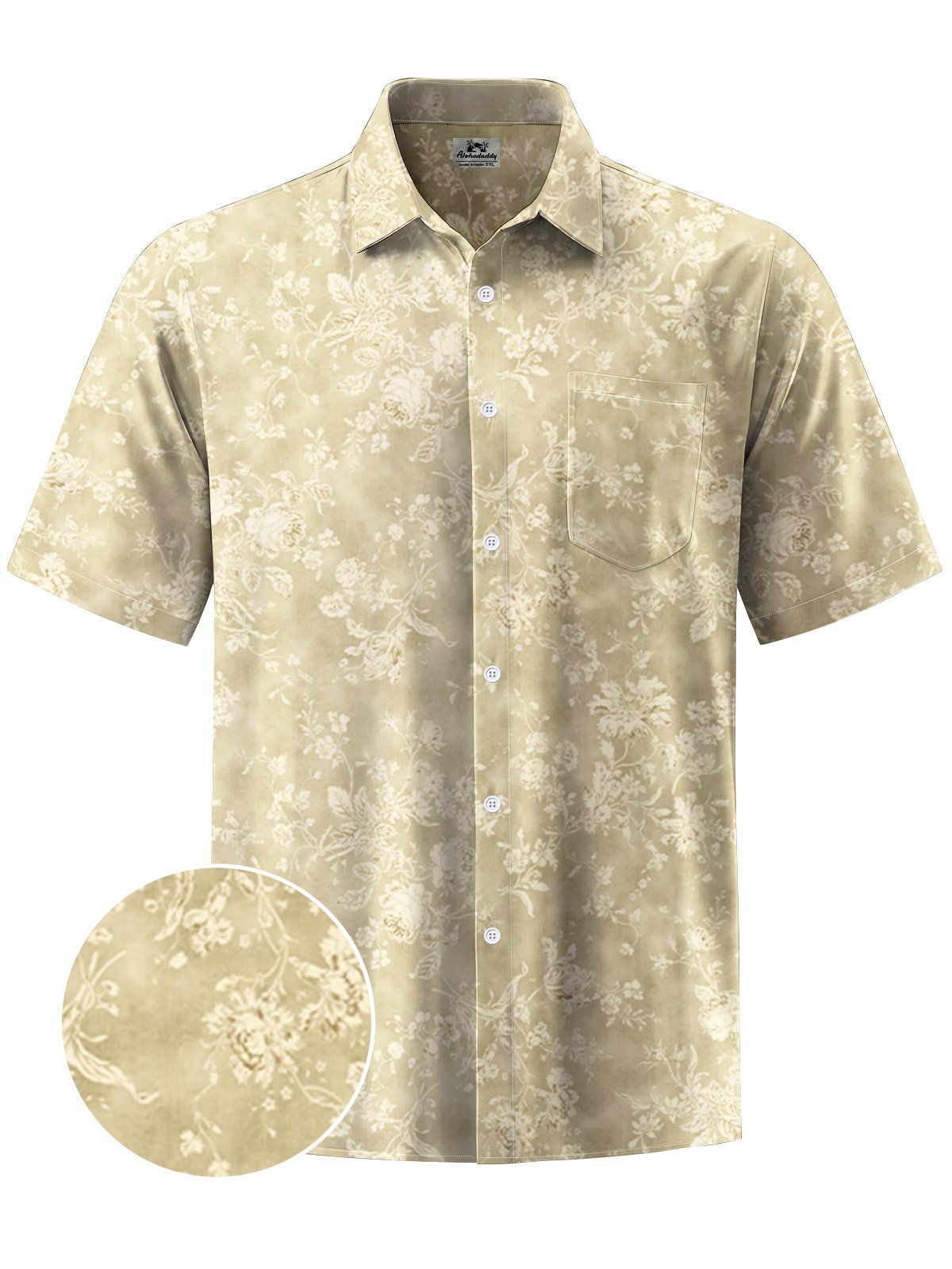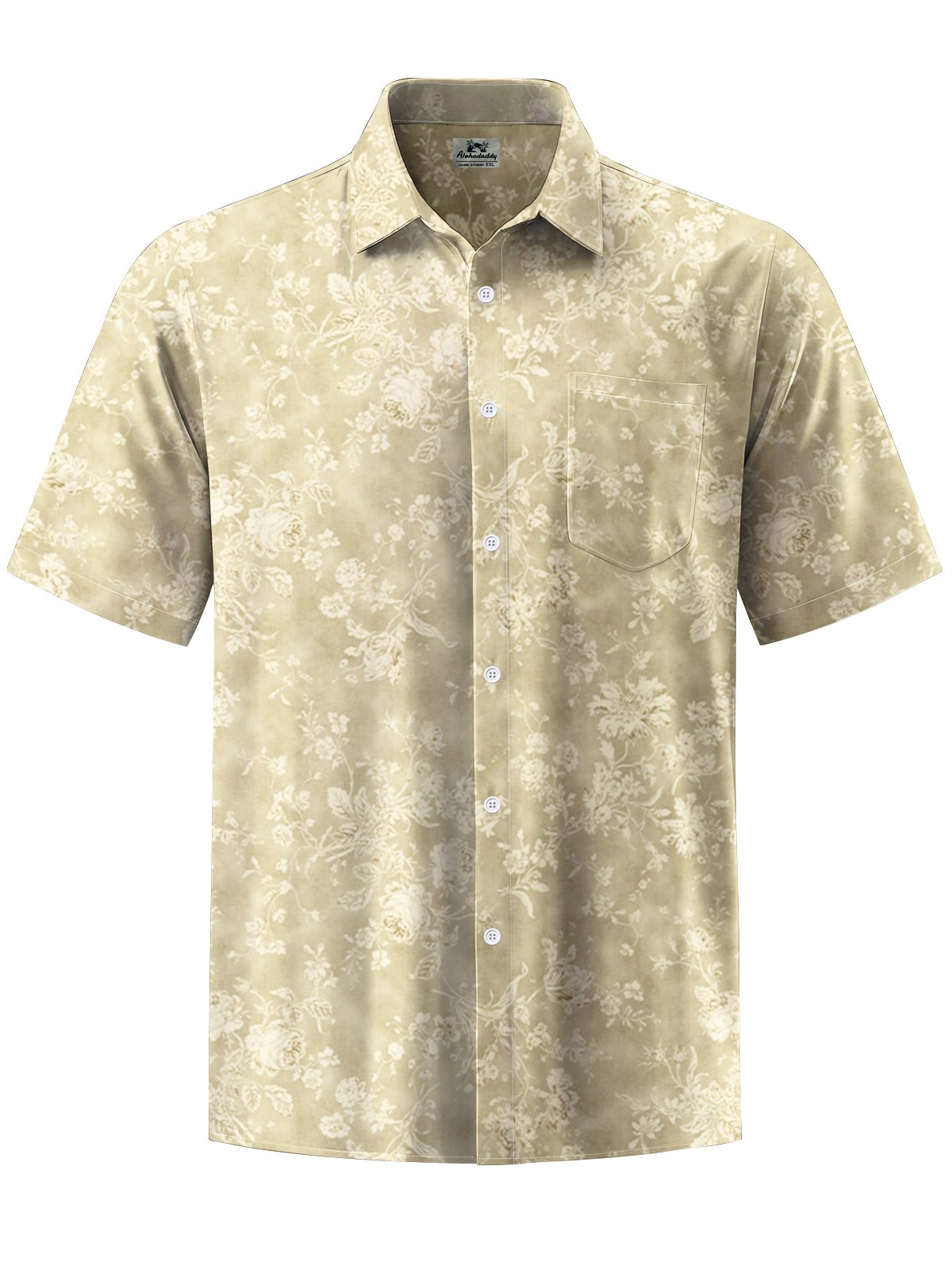 Alohadaddy® Hawaiian Flower Art Print Chest Pocket Moisture Wicking Men's Short Sleeve Shirt Big & Tall