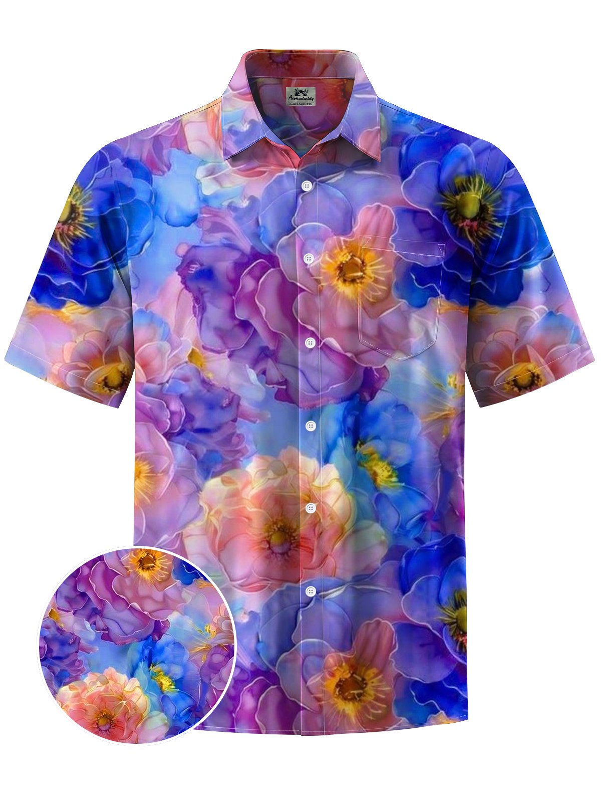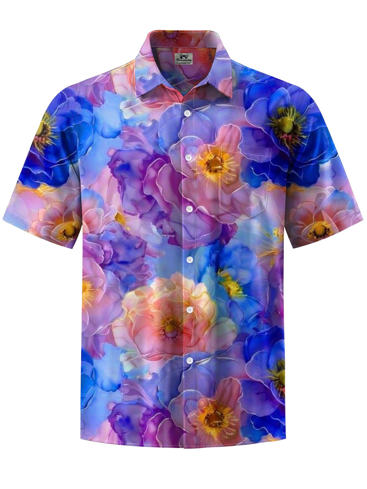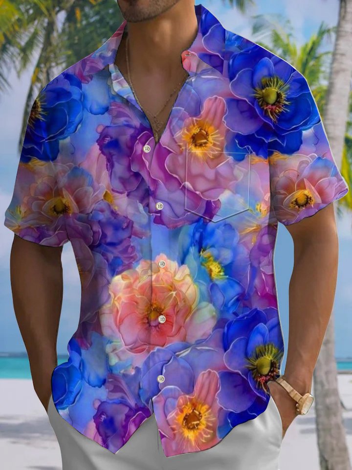 Alohadaddy® Hawaiian Flowers Art Print Chest Pocket Mens Short Sleeve Shirt Big & Tall