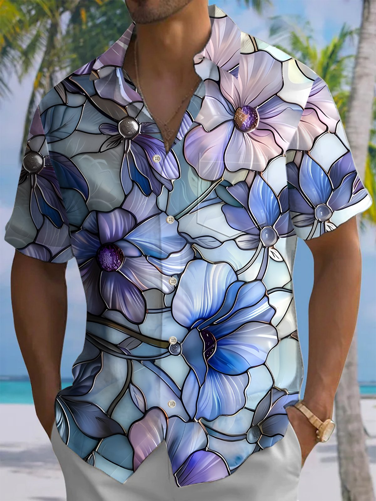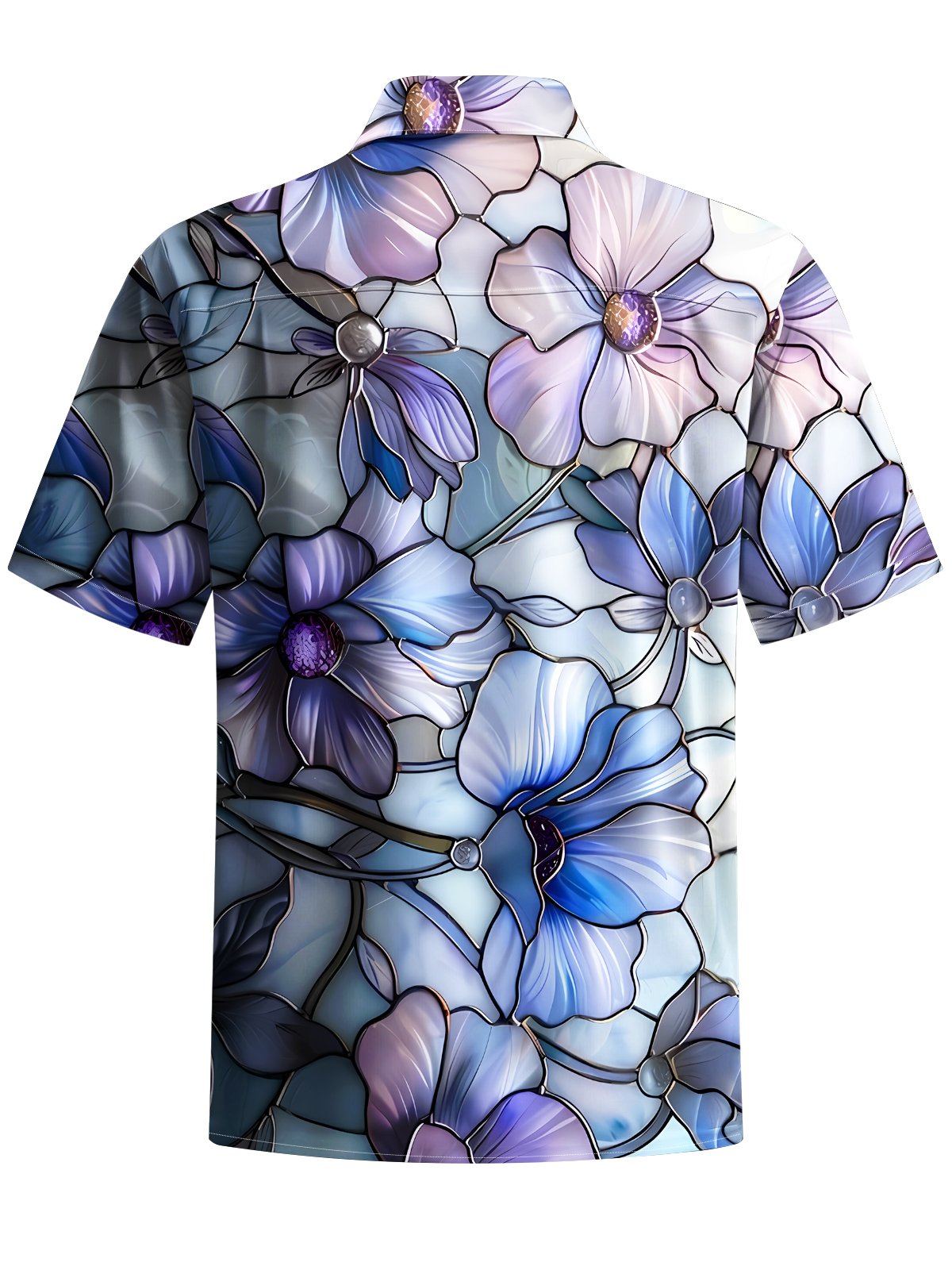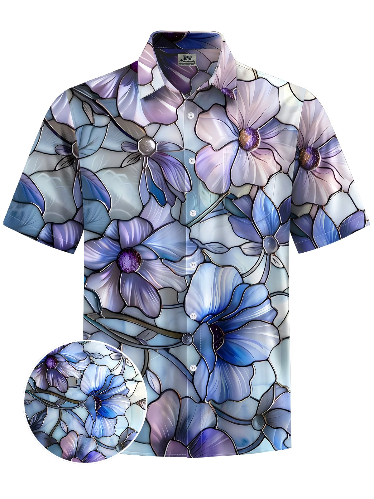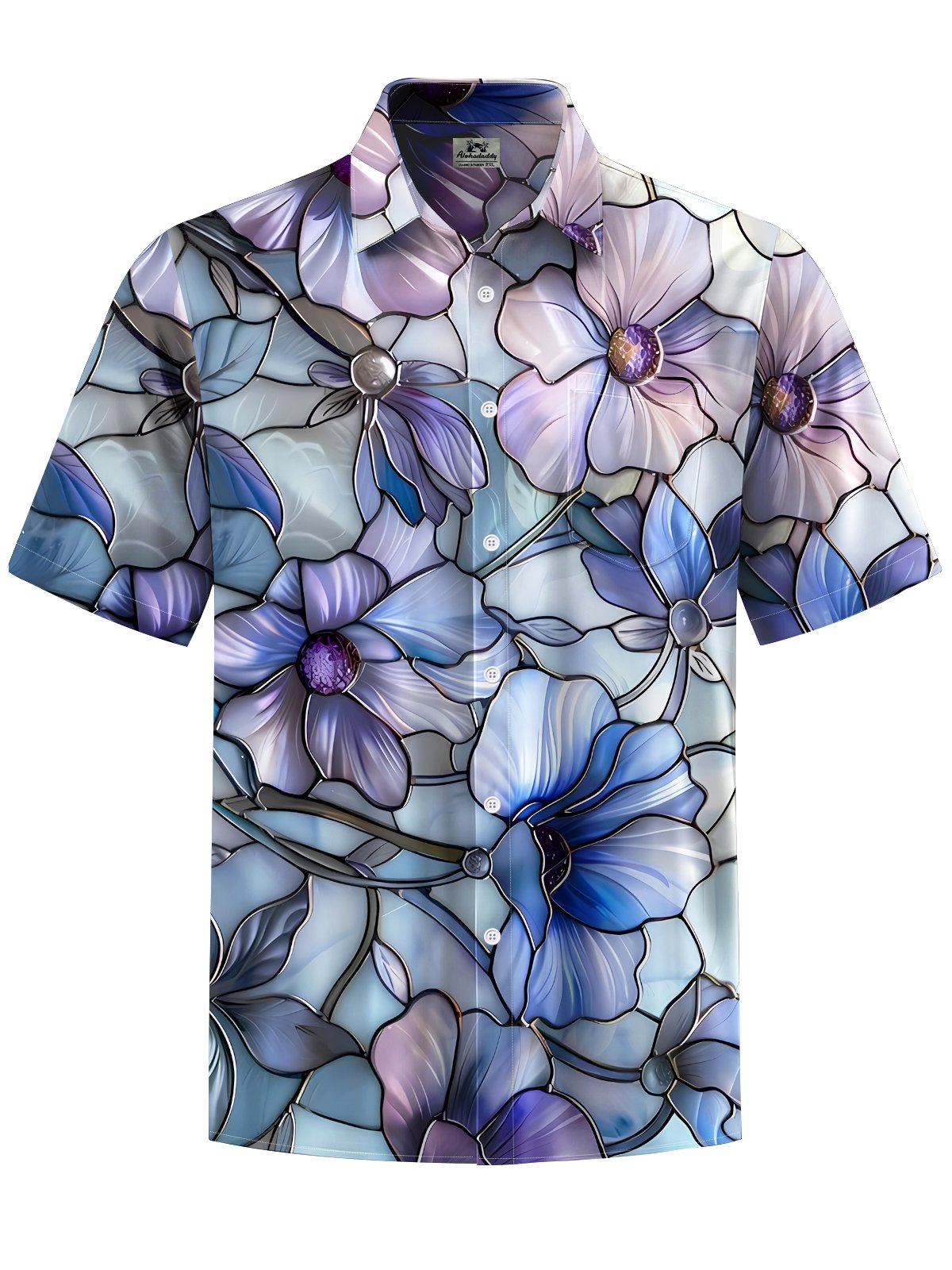 Alohadaddy® Hawaiian Flowers Art Print Chest Pocket Men's Short Sleeve Shirt Big & Tall