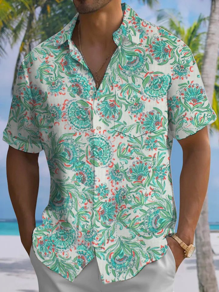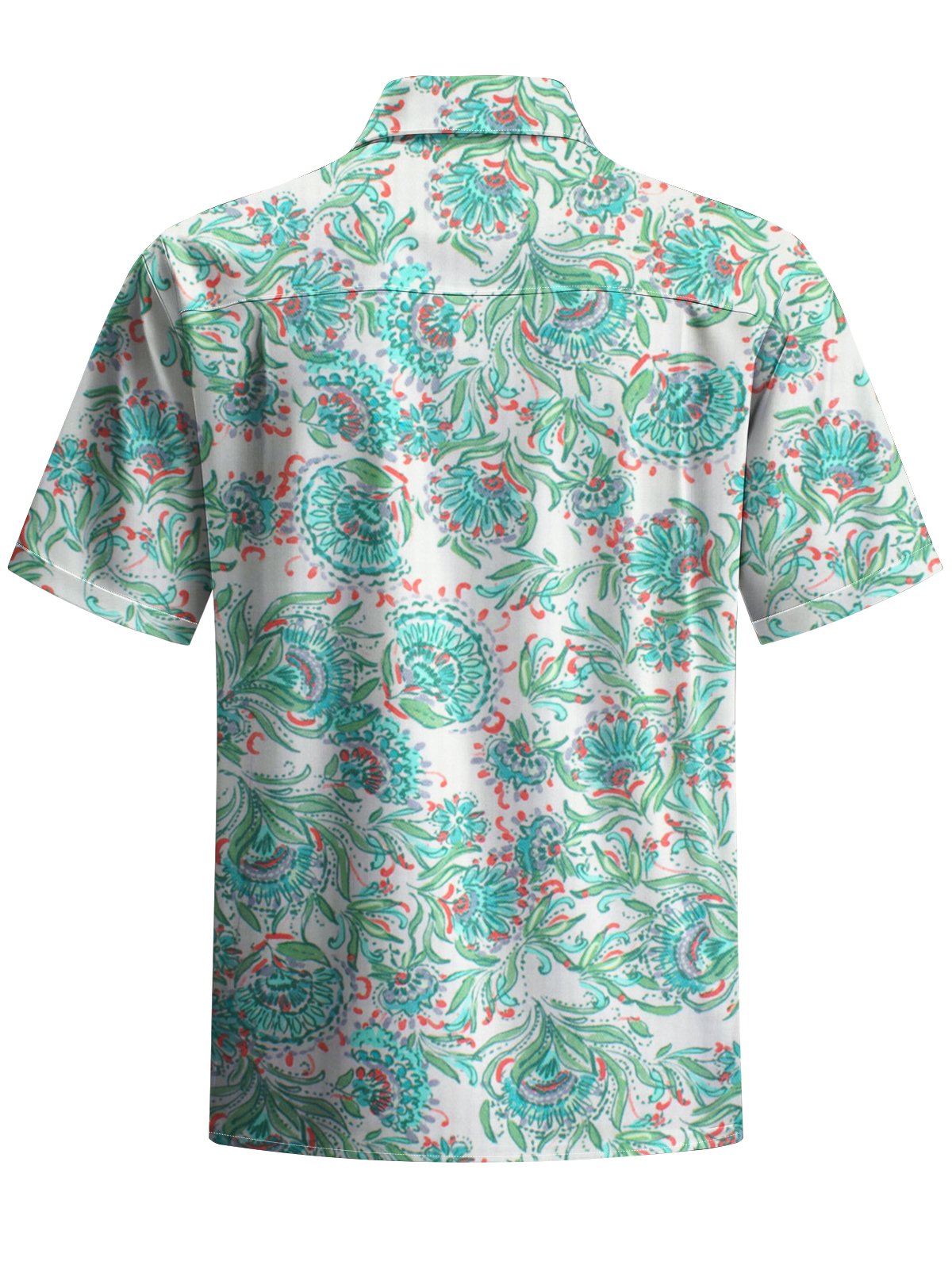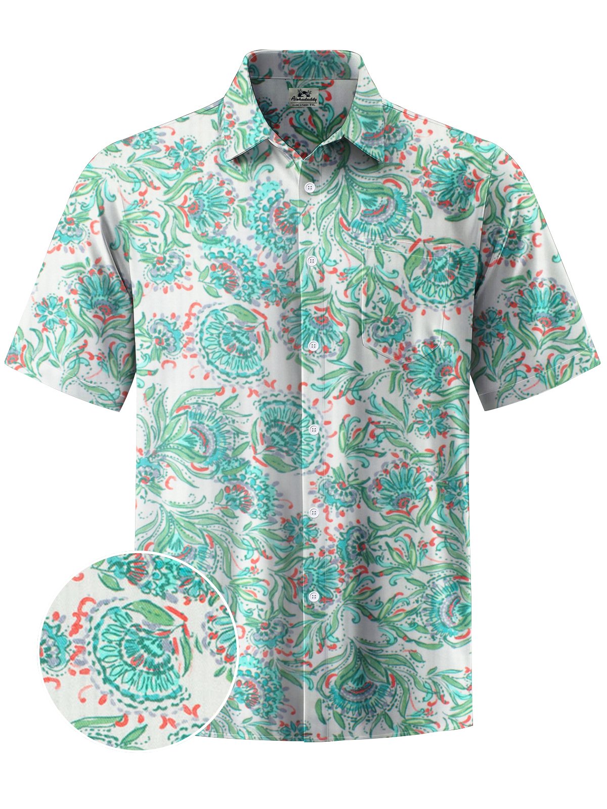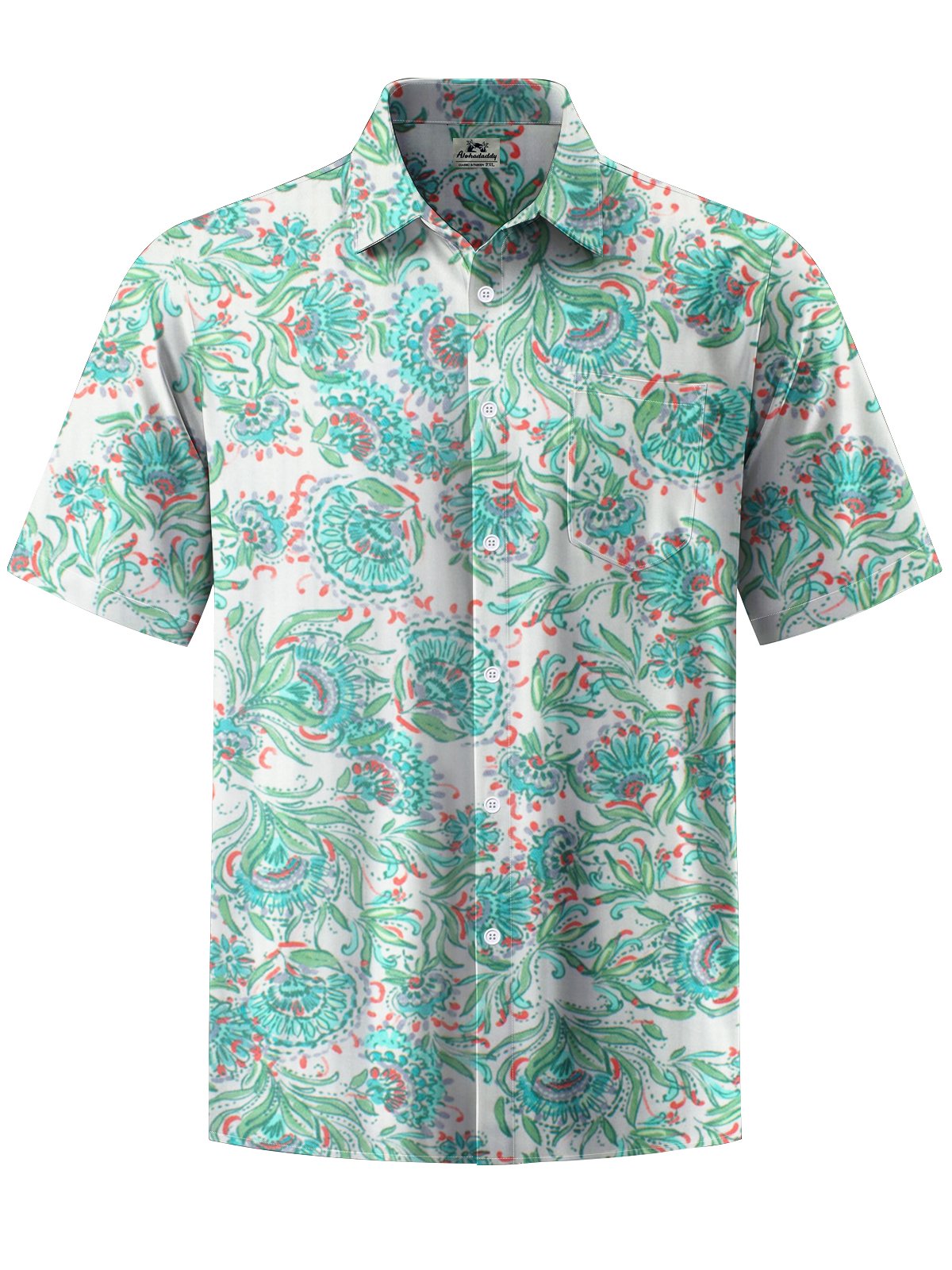 Alohadaddy® Hawaiian Flowers Art Print Chest Pocket Mens Short Sleeve Shirt Big & Tall